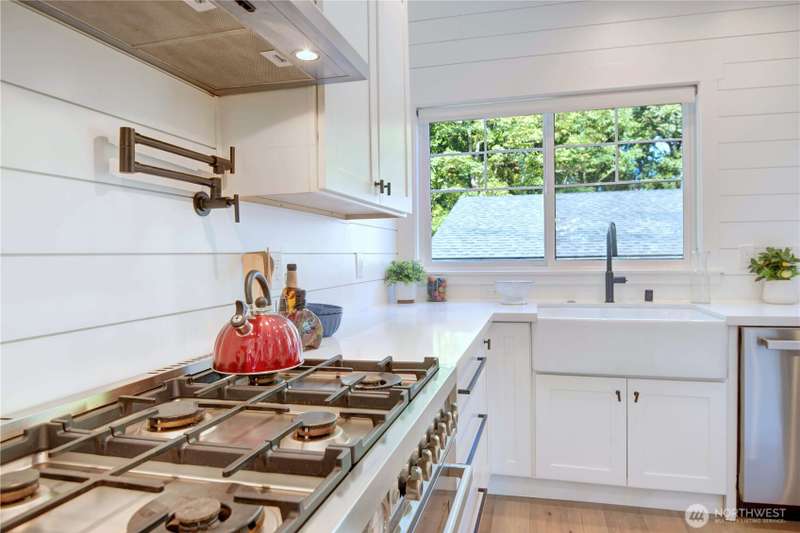 Breathtaking restoration of this farmhouse-style craftsman on quiet street in Broadview w HUGE private lot overlooking Carkeek Park. New upgrades include kitchen, 4 bathrooms, plumbing, electrical, roof, walls, windows and more - home lives like new! Open floor plan w tons of natural light perfect for hosting or relax beside the Napoleon fireplace. 24’x24’ insulated, air conditioned two-car garage/shop includes 10,000lb lift! Fully fenced yard. & charming gazebo for outside entertaining Two blocks from Viewlands Elementary, two blocks to Carkeek Park gate– walk to the beach!. Must see!