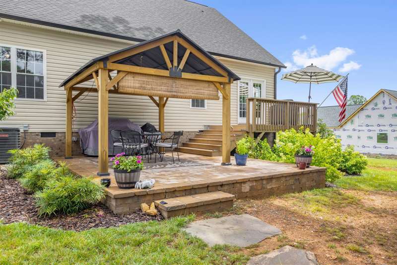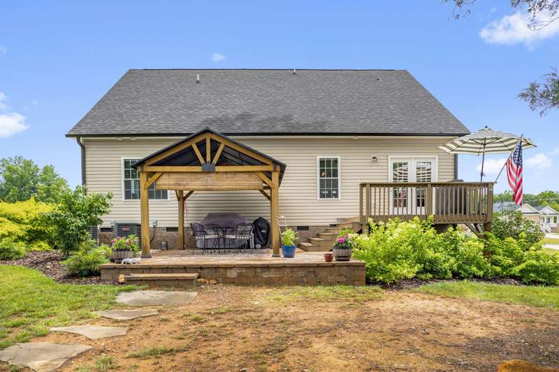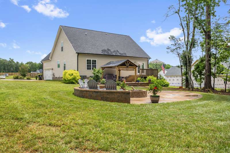 $3,000 SELLER CREDIT to use for a rate buy down or closing cost. A home with comfort, style, and the ideal location?just a short drive to the Toyota Plant, Burlington, and Greensboro, yet rural enough to feel peacefully tucked away. This well-maintained home features a rocking chair front porch and landscaped outdoor spaces perfect for relaxing or entertaining. Off the back deck is a covered patio with hand-laid pavers, plus a 600 sq ft paver patio with fire pit. There's also a garden space ready for your green thumb. Inside, the open-concept kitchen and living area offers generous countertop space, an eat-at bar, and a converted butler's pantry now serving as a dry bar with custom wood countertop. The primary suite includes tray ceilings, a large bathroom with double vanity, garden tub, and updated paint that hides water stains. Upstairs has a versatile landing for office, study, or play. Bedrooms fit full suites, and the bonus room is ideal for a gym or home theater.