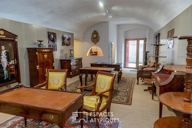This showroom has a double glazed entrance door with disabled access. At the entrance on the right, the reception desk opens onto the first vaulted room, separated by a load-bearing wall to the second blind vaulted room. A toilet and water point is located after the office.