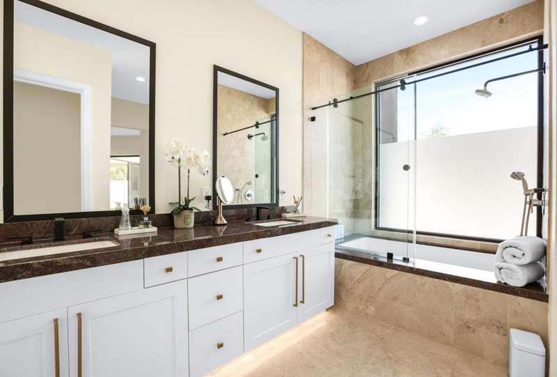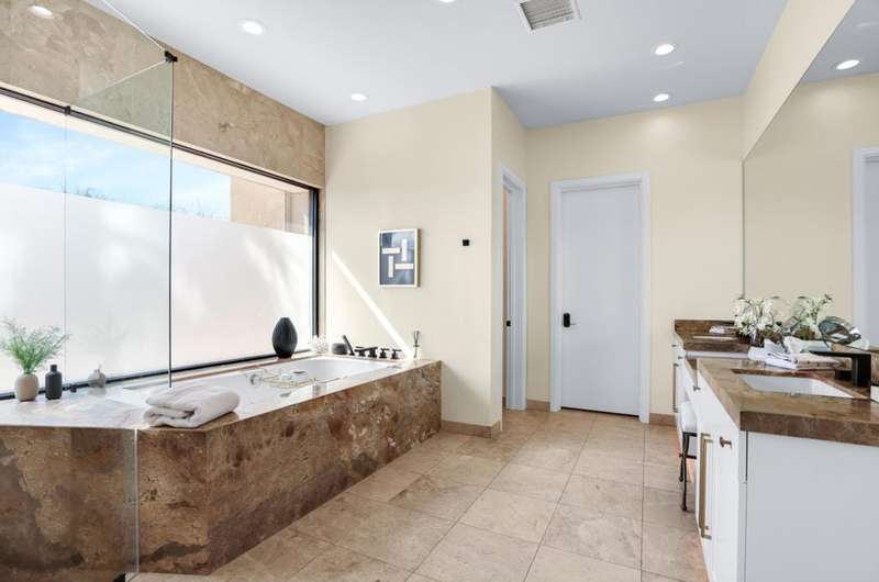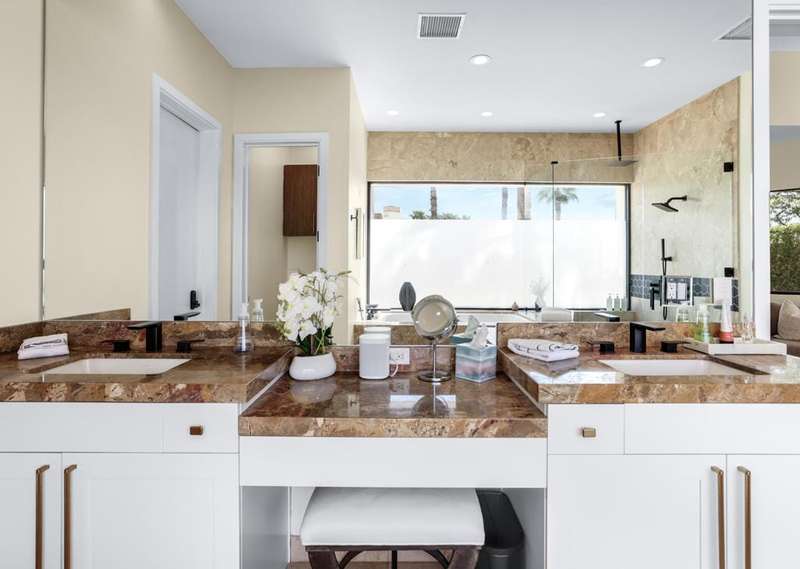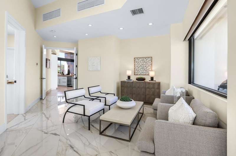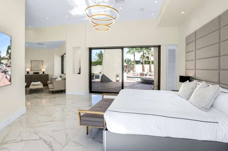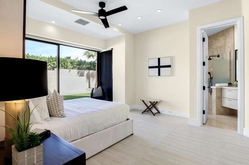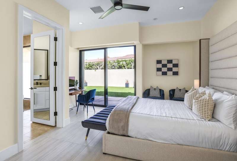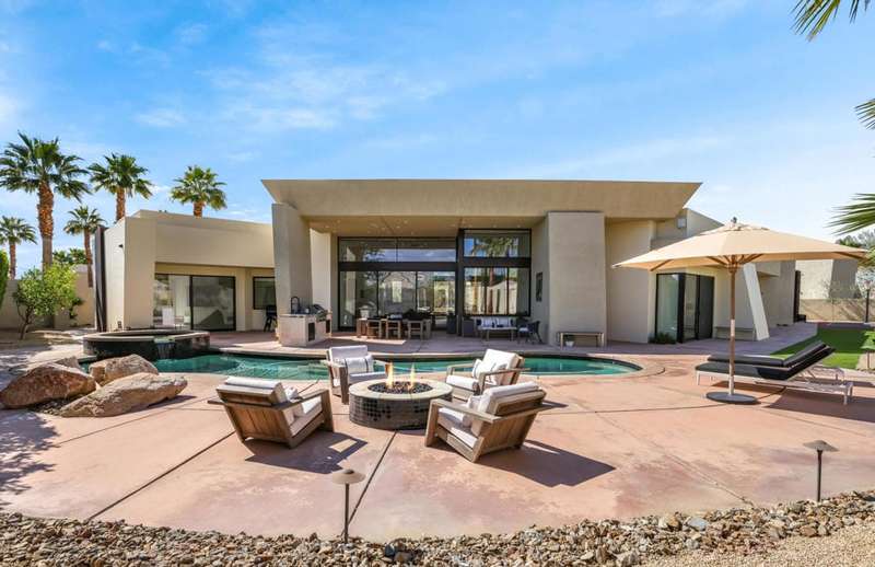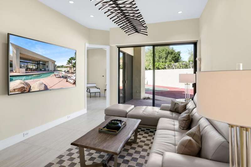 Luxury Contemporary Rancho Mirage RetreatExperience the ultimate in desert luxury at this custom-built estate in the heart of Rancho Mirage: neighbor to the famed Annenberg Estate and Disney's highly anticipated Cotino community. Just minutes from world-class dining and shopping at The River, this private residence is designed for discerning travelers who expect the very best and you can even bring man's best friend!Indulge in a true resort lifestyle with a free-form pool and spa, outdoor shower, fire pit, and multiple patios seamlessly blending indoor and outdoor living. Walls of panoramic glass flood the home with desert light, framing serene views and creating a dramatic backdrop for relaxation or entertaining.Every detail is thoughtfully curated: Sonos surround sound throughout, electronic blackout shades, one-touch lighting, multi-zoned climate control, sport court, and a choice of premium grills (Gas BBQ and Traeger Smoker). Inside, a full wet bar with ice maker, media room with smart TVs, and a chef's kitchen elevate every gathering. Hundreds of prepaid Prime movies are included for your enjoyment.Four private suites each feature en-suite baths for ultimate comfort. The king primary suite boasts a lounge area and spa-inspired bath. Two queen suites and a private-entry Casita with its own sitting area offer flexibility and privacy for guests.Additional amenities include a two-car garage plus driveway parking, a private laundry room, bi monthly housekeeping and the seamless convenience of a smart home.This is not just a vacation home, it's a sanctuary of modern elegance, designed for travelers who want to experience Rancho Mirage in uncompromising style.Rental Details:Available now!$834/night + $50/night utility fee.$595 move-out cleaning fee, $400/mo bi-monthly housekeeping service, $188 admin fee.$5000 refundable security deposit.One dog welcome up to 50 lbs @$45/day plus a refundable $500 deposit.Sorry, no pit bull breeds permitted.30-day minimum stay required. BookedMarch 2026.No Smoking.