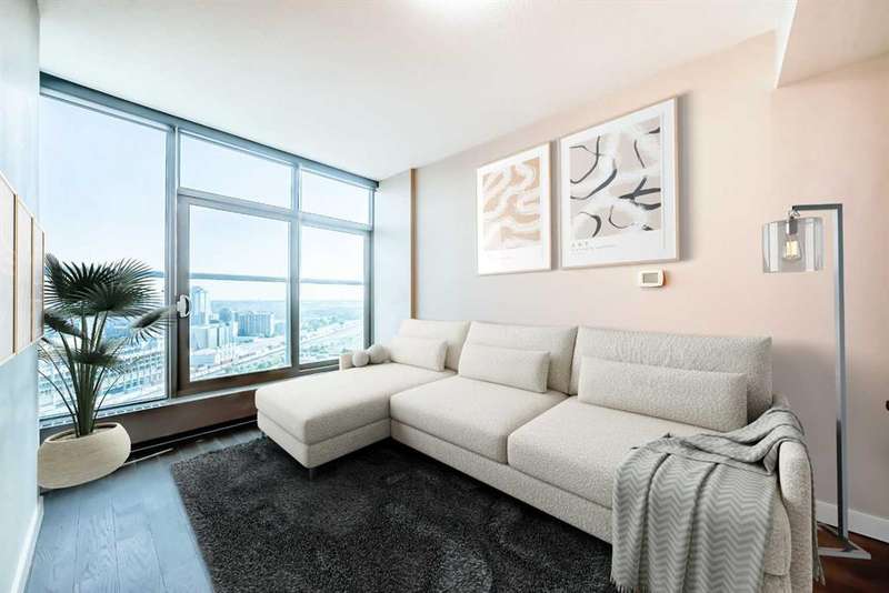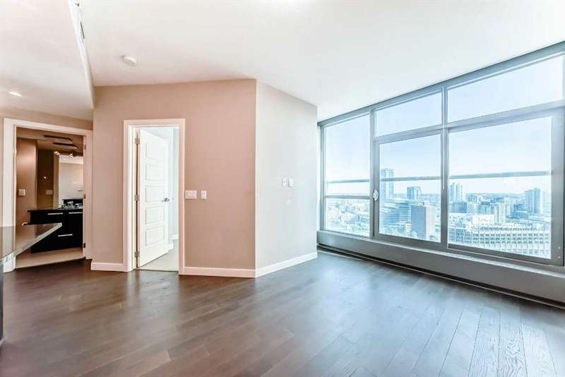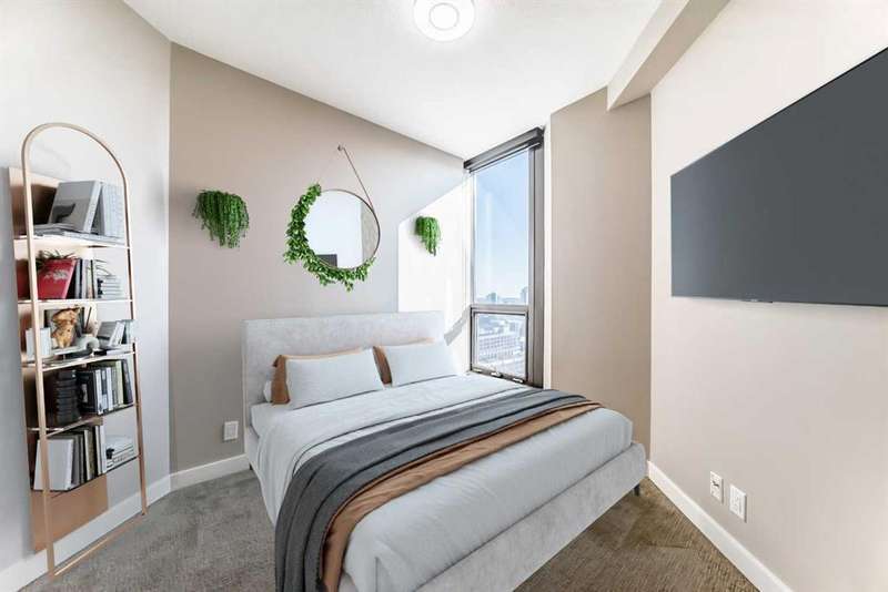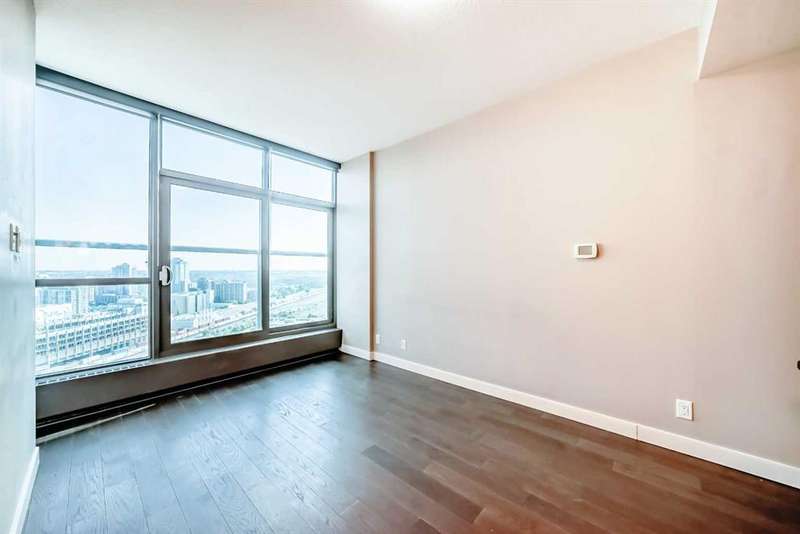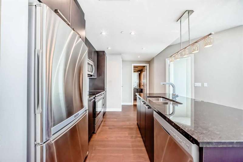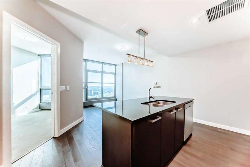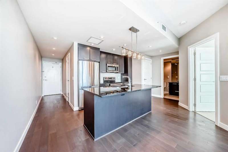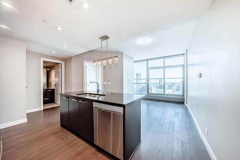 Experience elevated urban living in this stunning one bedroom, one bathroom residence perched high on the 23rd floor. From the moment you enter, you’re greeted by soaring 9-foot ceilings and expansive floor-to-ceiling windows that frame sweeping, unobstructed views. Enjoy bright morning light and expansive east-facing views that showcase the city as it comes to life each day. From sunrise to skyline, take in the energy of downtown from the comfort of your own home. The thoughtfully designed open concept layout pairs contemporary finishes with everyday functionality, featuring central air conditioning, in-suite laundry, and a sleek modern kitchen with stainless steel appliances. With an impressive array of amenities, including two fitness centres, guest suites for out of town visitors, and a landscaped rooftop terrance that features picnic areas and barbecues. The exclusive owners’ lounge offers a refined setting with a pool table, flat screen TVs, a partial kitchen, and direct access to the +15 network leading you effortlessly to Sunterra Market and beyond - this pet friendly building is designed for those who value convenience and sophistication. Complete with a titled underground parking stall and perfectly positioned on the east end of downtown, this residence offers effortless access to public transit, parks and an endless array of dining, shopping, and entertainment options. Whether you are seeking a vibrant urban lifestyle or an elegant retreat in the city, this home offers the best of both worlds in one of Calgary’s most desirable high rise communities.