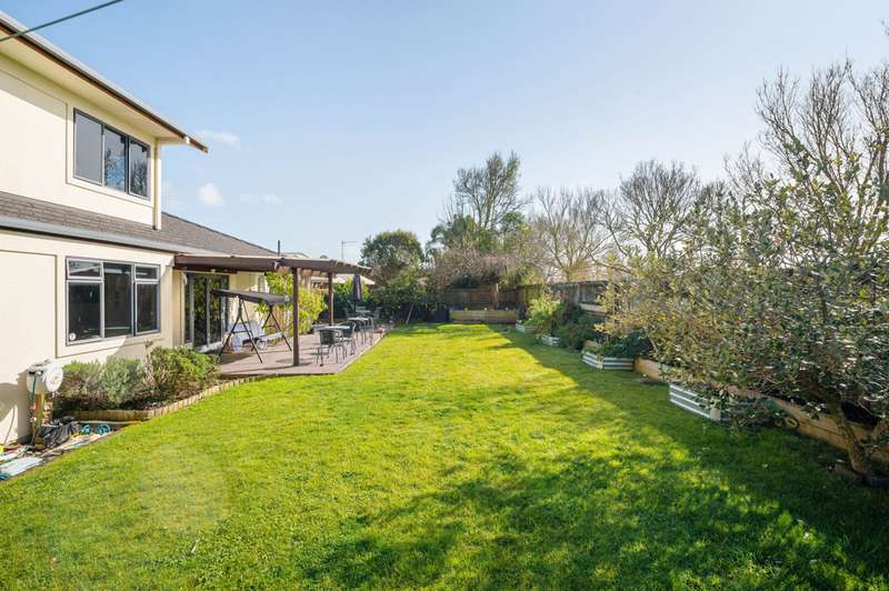 The bedroom configuration has been thoughtfully planned, with bedrooms on both levels offering versatility for families or couples. Bi-fold doors in the downstairs bedrooms provide instant access to the secure back lawn, where kids and pets can play safely. The 766sqm section is surrounded by established, low-maintenance gardens, delivering both privacy and space for backyard fun.