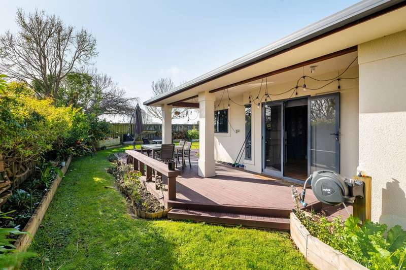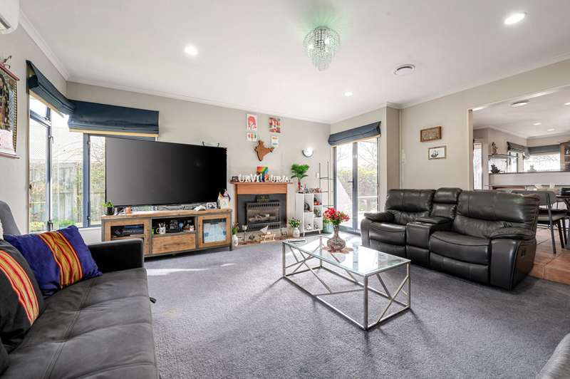 Warm and inviting, the home is fitted with seven panel heaters, a gas fireplace and a heat pump to ensure year-round comfort. Large north-facing windows flood the living areas with natural light, creating a bright and welcoming atmosphere. The open-plan layout features generous living and dining zones that flow seamlessly outdoors, making entertaining easy and enjoyable. The functional kitchen offers ample storage, and the connected dining area opens directly to the wrap-around deck - an ideal spot for hosting guests or enjoying relaxed family meals.