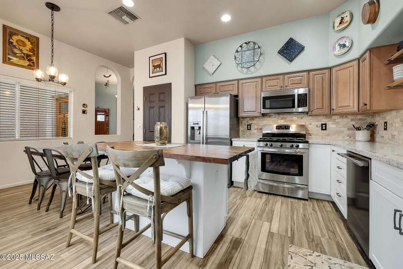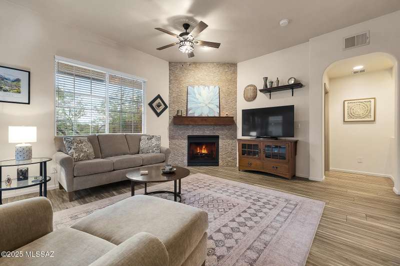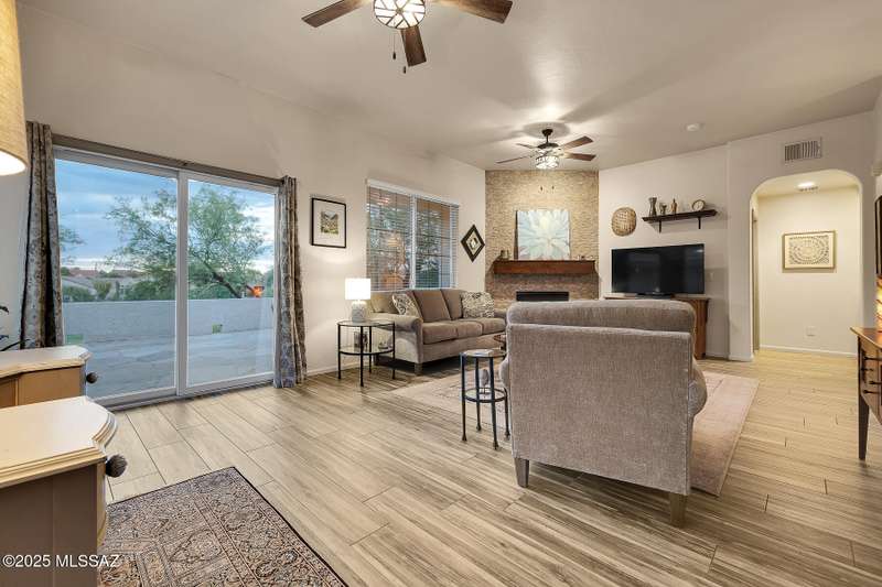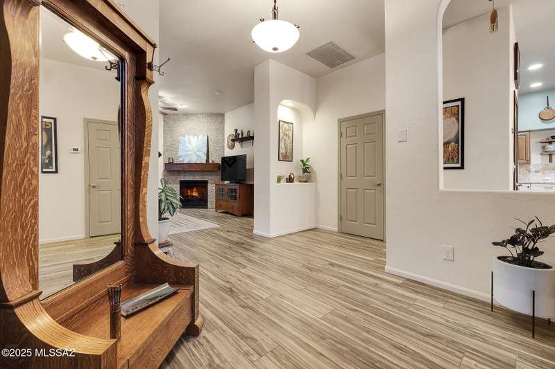 Discover the perfect blend of comfort, style & breathtaking views in this beautifully remodeled 3-bedroom, 2-bath townhome located in a desirable gated community. Situated directly on the 6th fairway of the El Conquistador Golf Course, this home captures Golf Course & Pusch Ridge Mountain VIEWS! Step inside to find a thoughtfully updated interior featuring an open, floor plan with modern finishes throughout. The remodeled kitchen boasts sleek two-tone cabinetry, stainless steel appliances, tile backsplash, quartz & butcher block countertops with breakfast bar & nook. Spacious bedrooms, updated baths & a private primary suite ensure comfort for all. The front courtyard creates a warm welcome, while the rear covered patio with flagstone pavers is perfect for relaxing & soaking up the VIEWS!