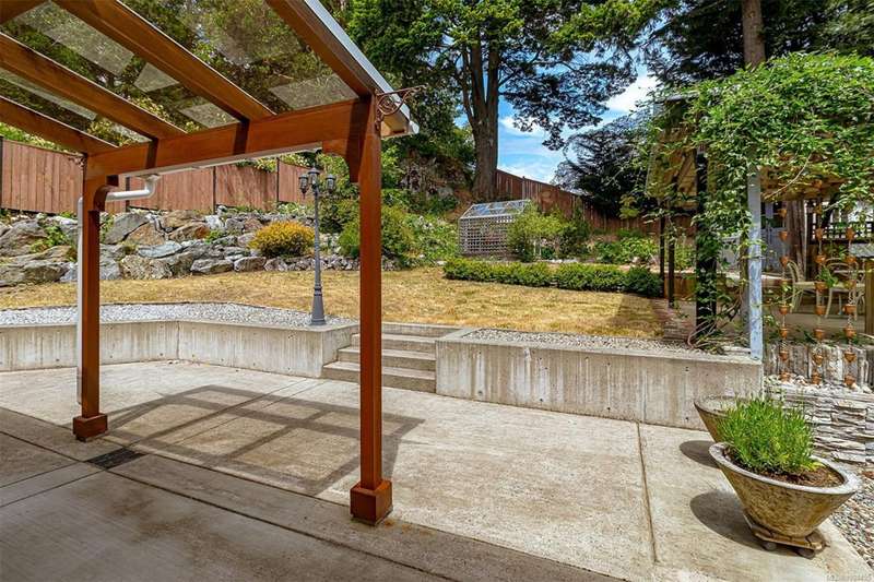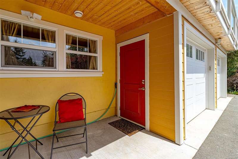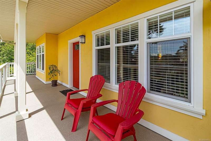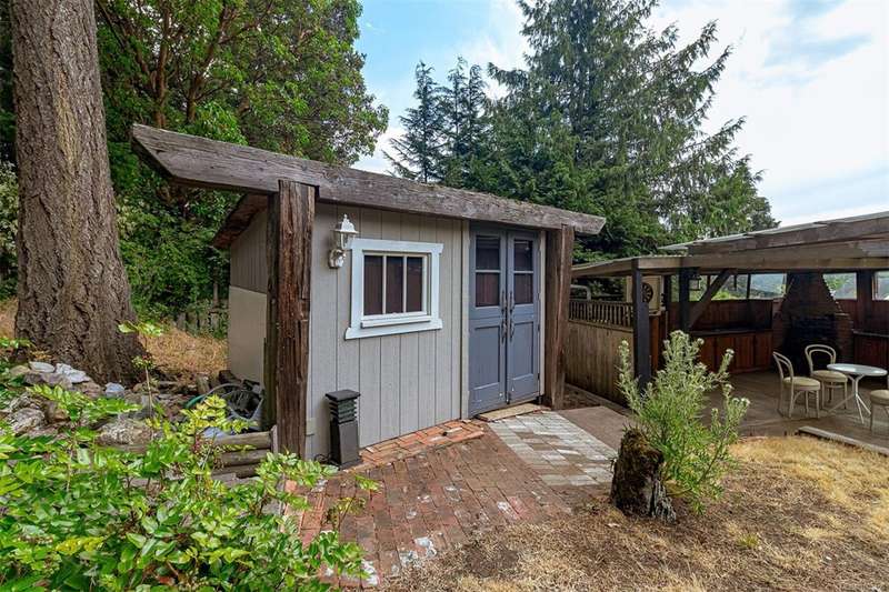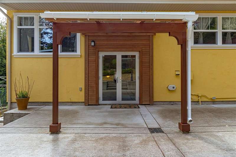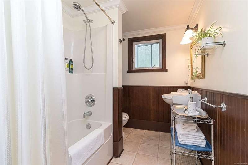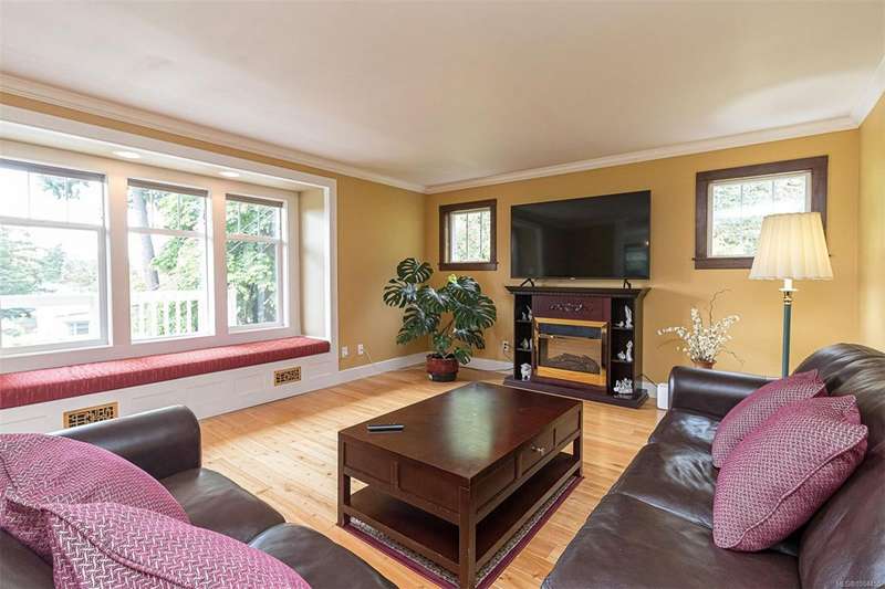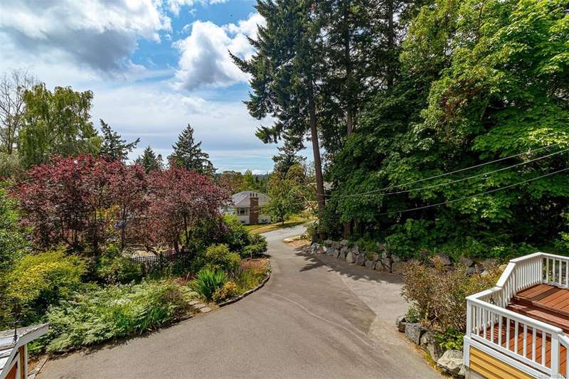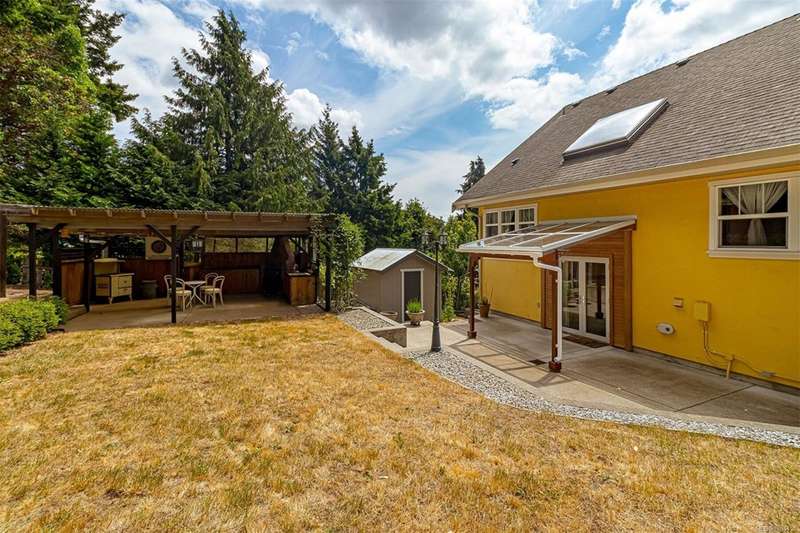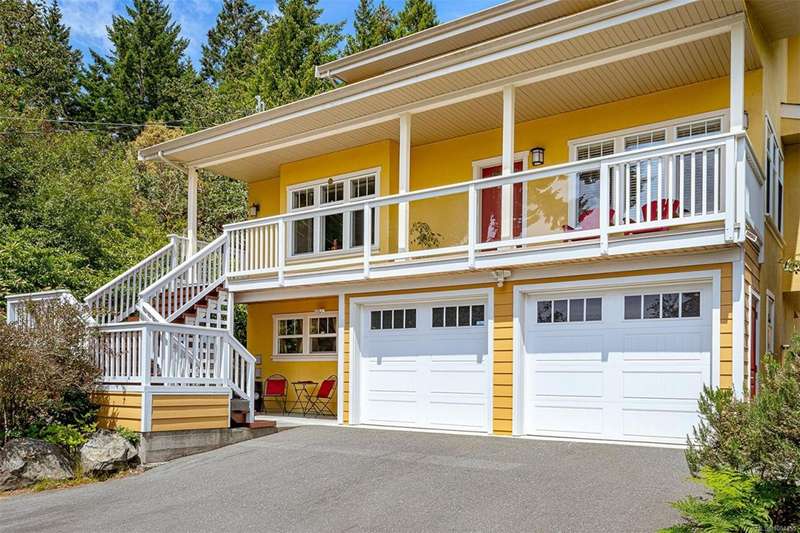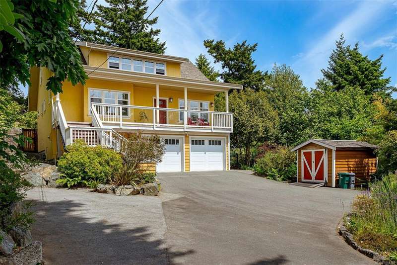 Can you believe it? That stunning yellow-coloured home is actually on the market! Introducing this highly anticipated custom built home in the coveted View Royal Harbour District. Just a short stroll to the beach, this inviting property blends character, comfort and lifestyle. Step onto the beautiful front porch& into a spacious living room featuring a cozy window bench, dinning room, breakfast/sitting area, open kitchen, 1BD/1BA. The entire top floor is dedicated to a luxurious primary retreat, showcasing soaring 12' ceilings, dual walk-in closets, a den area that can covert into another BD&impressive views of the mountains with sea glimpses. Add. accommodation w/kitchenette, living room& 1BD&1BA and separate entry can be found on the lower level. Outdoors is a true oasis: 3 sheds, a greenhouse and a beautiful outdoor kitchen pavilion complete w/a fireplace and stove--ideal for entertaining year-around. This is the home can truly captures the heart as much as the eye.