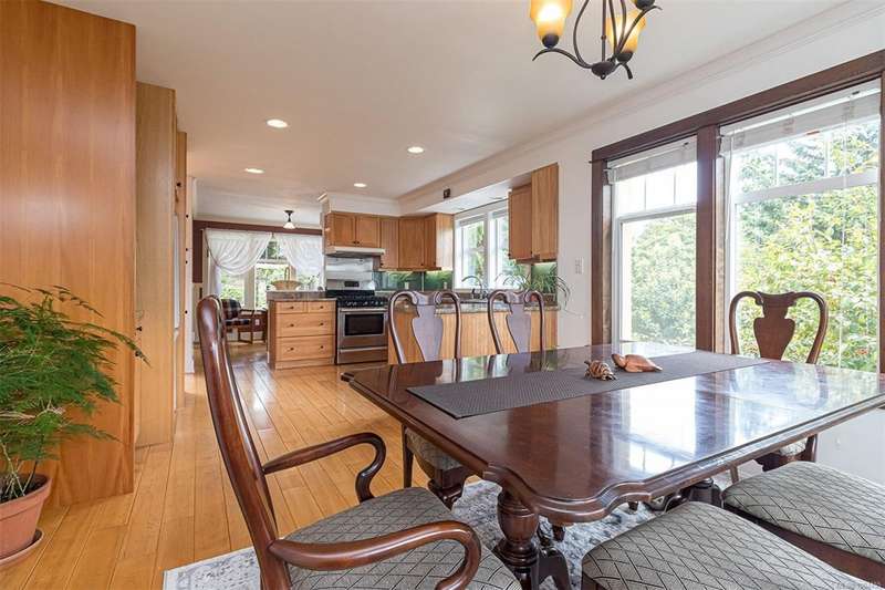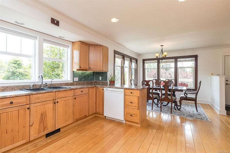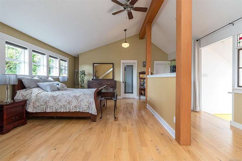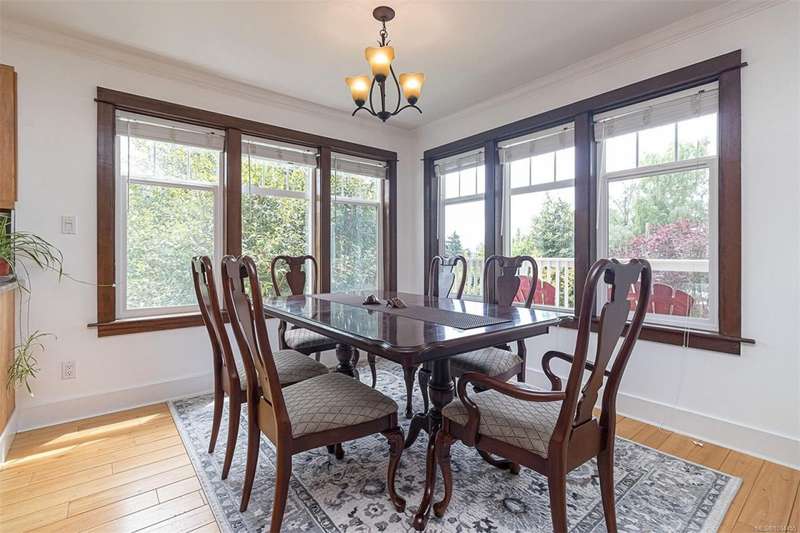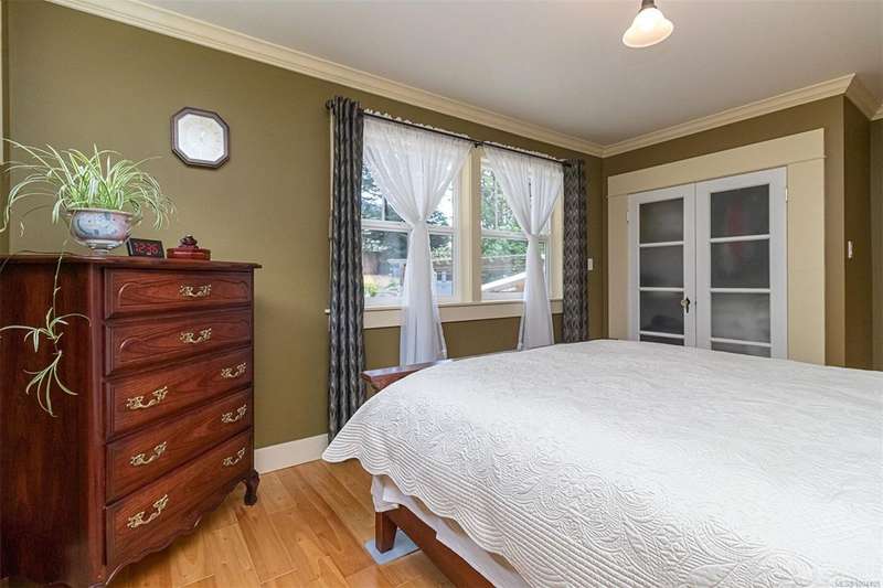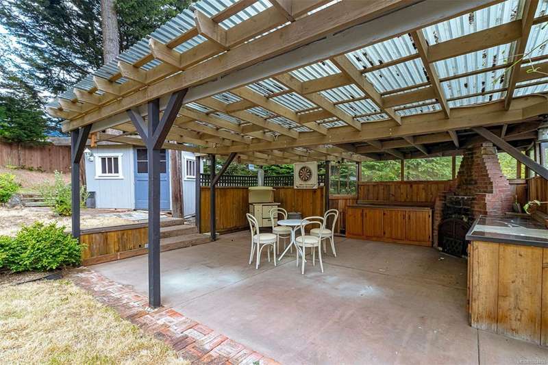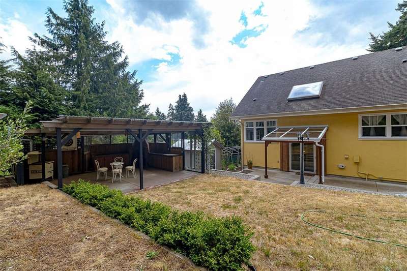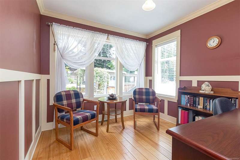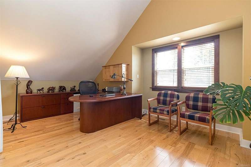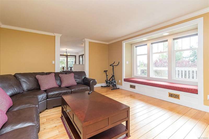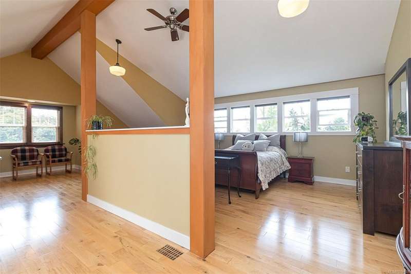Can you believe it? That stunning yellow-coloured home is actually on the market! Introducing this highly anticipated custom built home in the coveted View Royal Harbour District. Just a short stroll to the beach, this inviting property blends character, comfort and lifestyle. Step onto the beautiful front porch& into a spacious living room featuring a cozy window bench, dinning room, breakfast/sitting area, open kitchen, 1BD/1BA. The entire top floor is dedicated to a luxurious primary retreat, showcasing soaring 12' ceilings, dual walk-in closets, a den area that can covert into another BD&impressive views of the mountains with sea glimpses. Add. accommodation w/kitchenette, living room& 1BD&1BA and separate entry can be found on the lower level. Outdoors is a true oasis: 3 sheds, a greenhouse and a beautiful outdoor kitchen pavilion complete w/a fireplace and stove--ideal for entertaining year-around. This is the home can truly captures the heart as much as the eye.