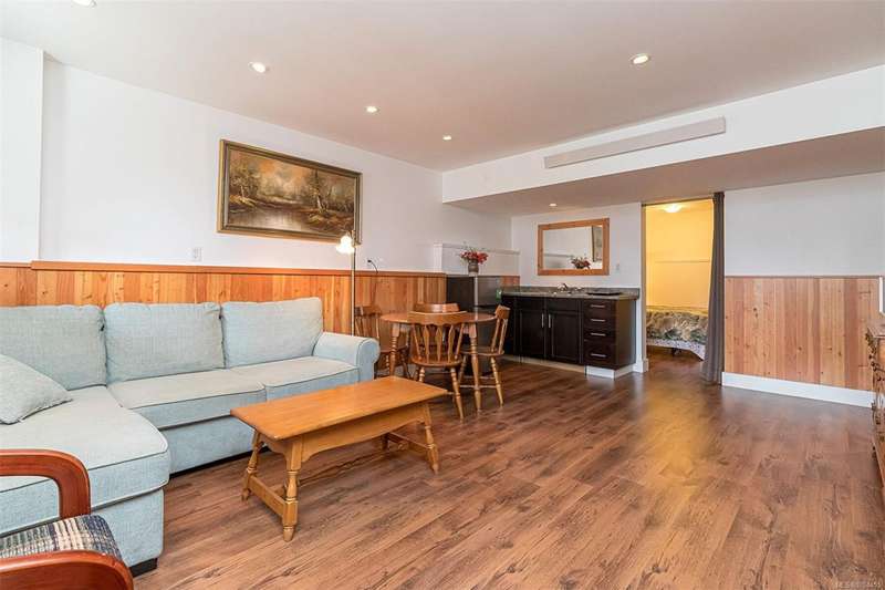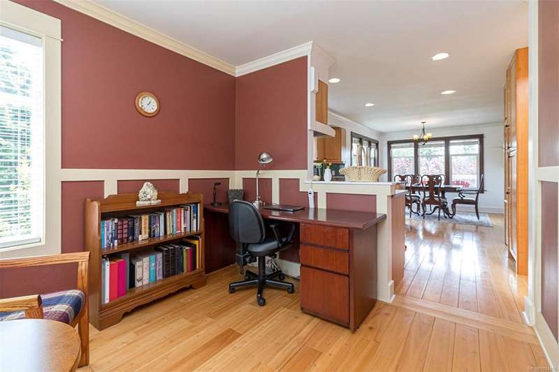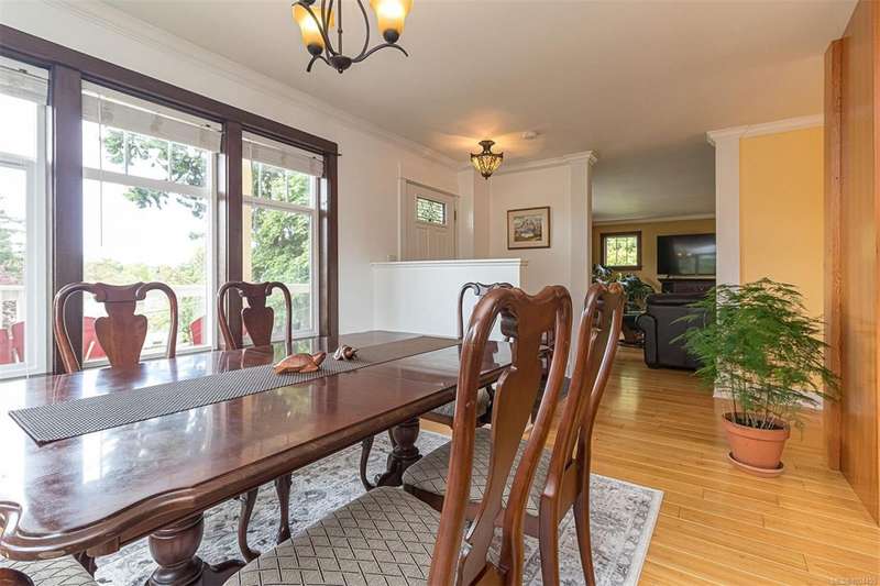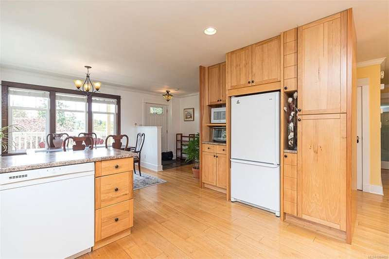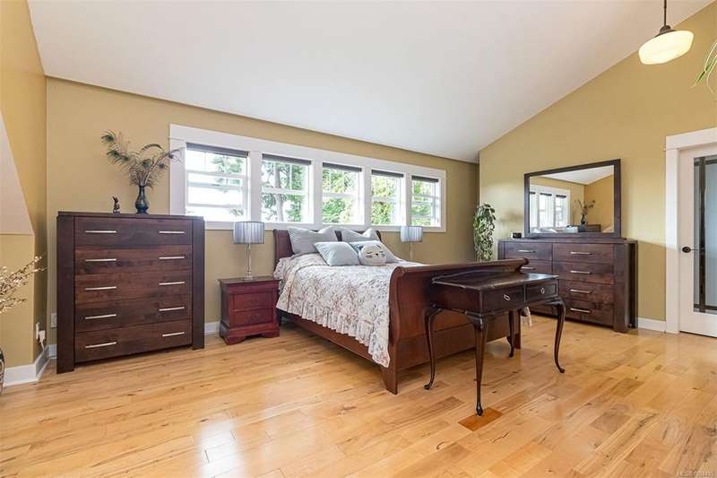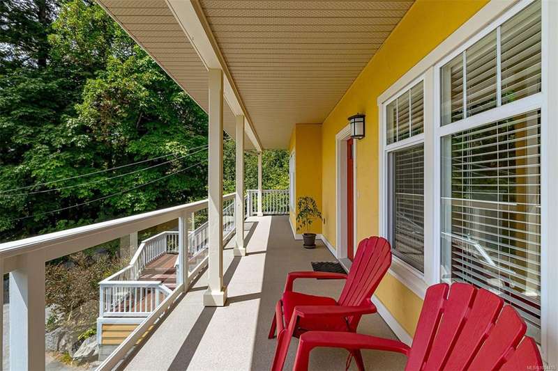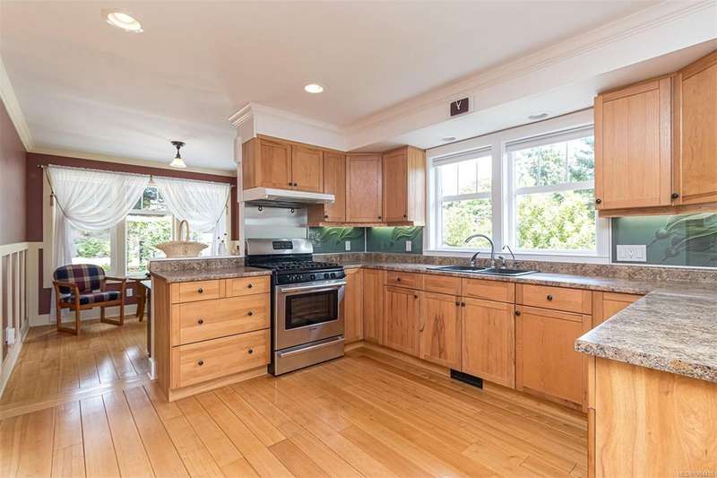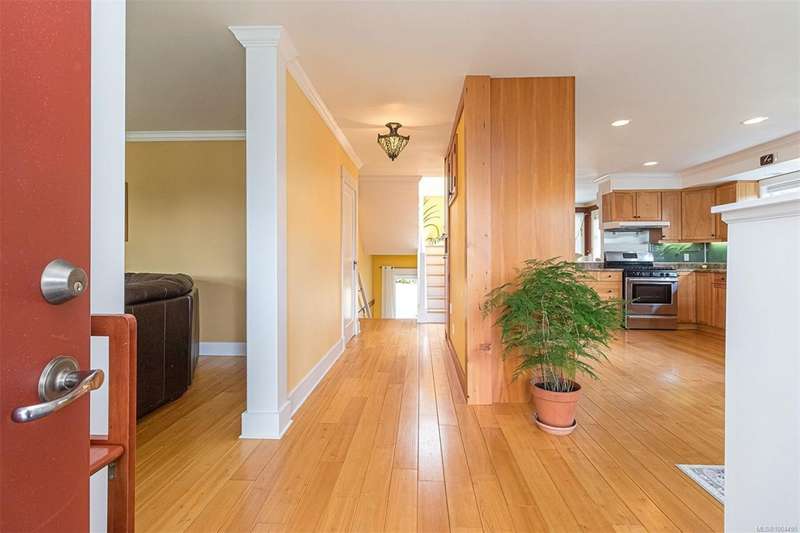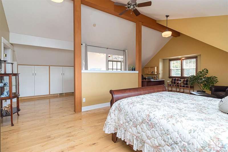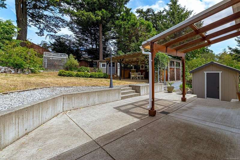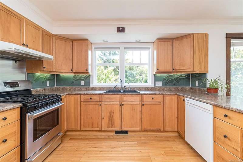 Can you believe it? That stunning yellow-coloured home is actually on the market! Introducing this highly anticipated custom built home in the coveted View Royal Harbour District. Just a short stroll to the beach, this inviting property blends character, comfort and lifestyle. Step onto the beautiful front porch& into a spacious living room featuring a cozy window bench, dinning room, breakfast/sitting area, open kitchen, 1BD/1BA. The entire top floor is dedicated to a luxurious primary retreat, showcasing soaring 12' ceilings, dual walk-in closets, a den area that can covert into another BD&impressive views of the mountains with sea glimpses. Add. accommodation w/kitchenette, living room& 1BD&1BA and separate entry can be found on the lower level. Outdoors is a true oasis: 3 sheds, a greenhouse and a beautiful outdoor kitchen pavilion complete w/a fireplace and stove--ideal for entertaining year-around. This is the home can truly captures the heart as much as the eye.
