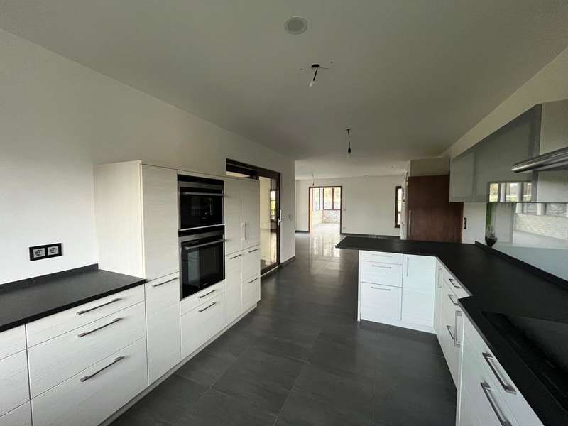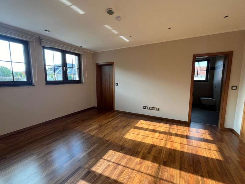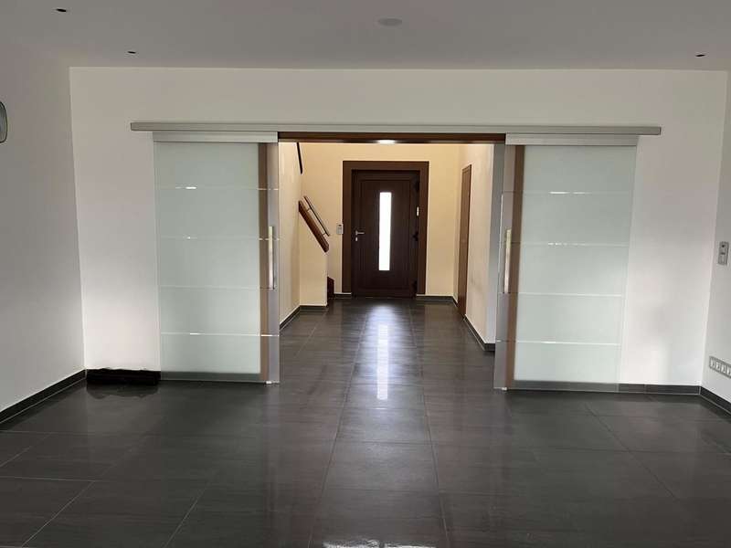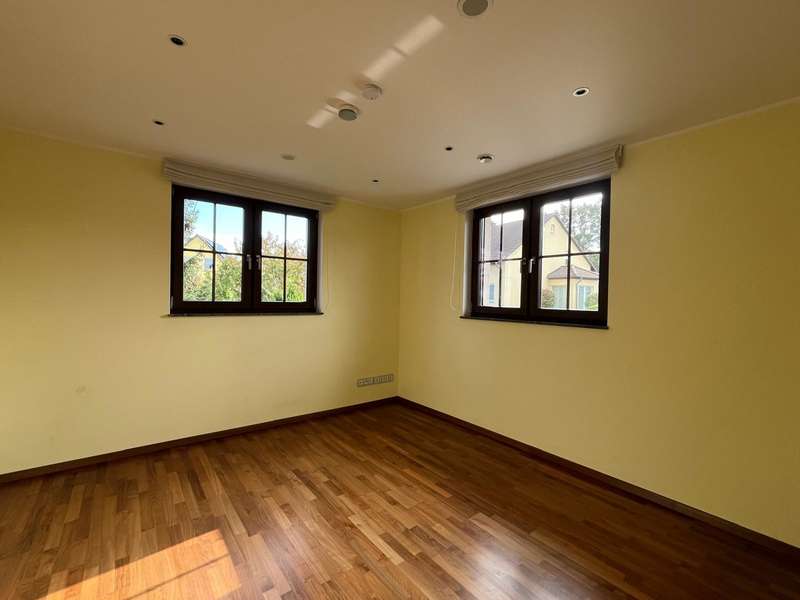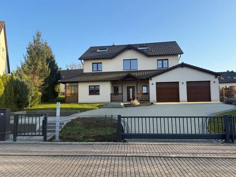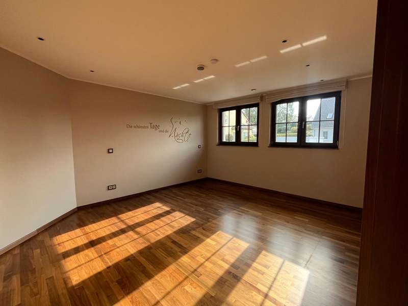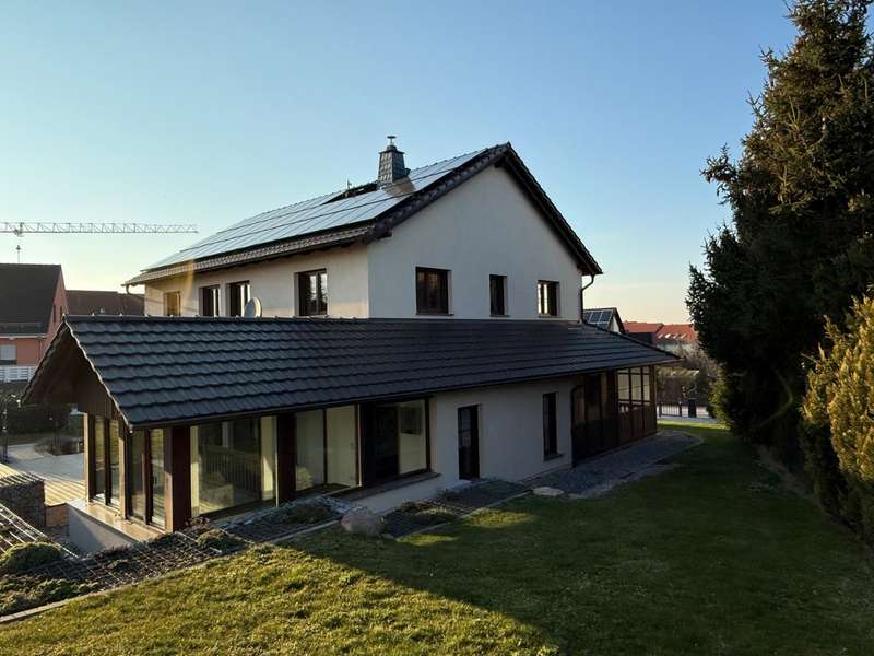 For sale is a modern detached house built in 2012, which impresses with its spacious layout and high-quality fittings. With a living space of approx. 199 m² and a plot area of approx. 1024 m², this property offers numerous opportunities for individual development. On the first floor are the kitchen with high-quality fitted kitchen, the dining room, the utility room, the WC, the office and the spacious approx. 50 m² living room. The bathroom, the study, the bedroom with dressing room and the guest room with bathroom are located on the upper floor. The master bathroom is equipped with a Jacuzzi, a shower and an integrated TV. Modern smart home technology networks the entire house and enables the lighting, speakers, heating systems and security devices, such as the surveillance cameras, to be controlled via a simple user interface. Both floors are barrier-free. A special eye-catcher is the conservatory, which is equipped with air conditioning and can be used in all seasons. The approx. 25 m² terrace extends the living area outside and offers space for sociable evenings or relaxing hours in the fresh air. It is partially covered and equipped with an awning, and the flooring is weatherproof. The property also has an efficient photovoltaic and solar system, which contributes to sustainable energy use. A heat pump, which was installed in April 2024, completes the home's energy concept. The windows are fitted with fly screens to ensure undisturbed living comfort. Ceiling speakers are installed throughout the house to enhance the ambience acoustically. The approx. 41 m² double garage offers space for two vehicles and additional storage space. The garage is directly connected to the house and thus offers a convenient way to keep shopping or traveling dry in any weather. The loft has already been prepared for further development and is equipped with electricity and high-quality laminate flooring. All in all, this detached house offers many attractive features and innovative technologies that make life pleasant. Potential buyers can expect a property that impresses with its well thought-out room layout as well as its extensive fixtures and fittings. A viewing appointment will give you vivid impressions of this unique home, which is ideal for families or couples who appreciate modern living in a spacious atmosphere.