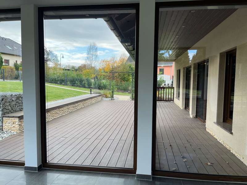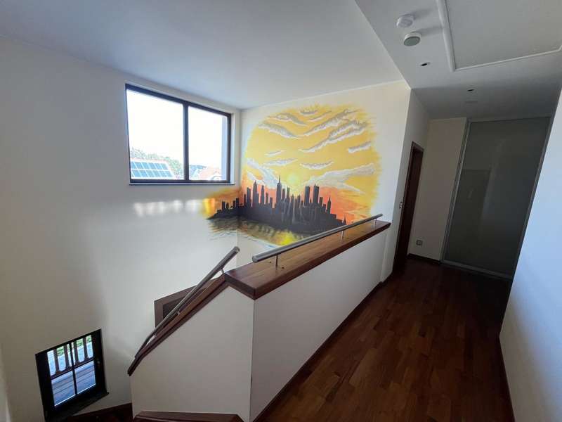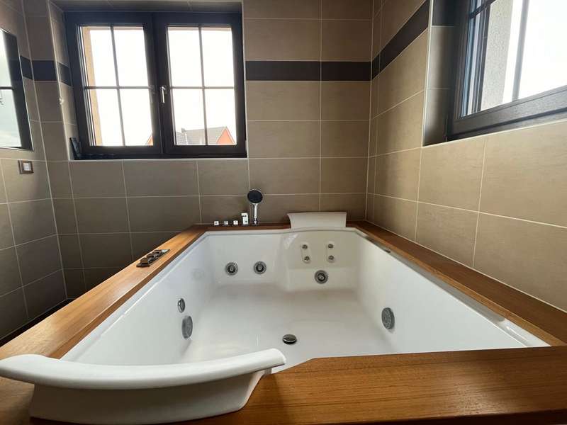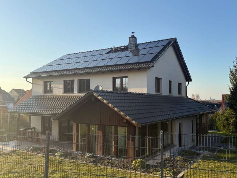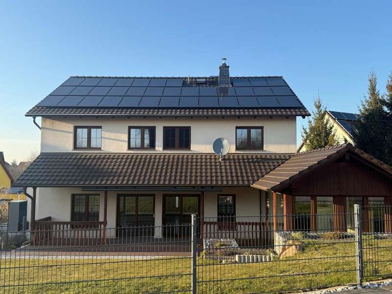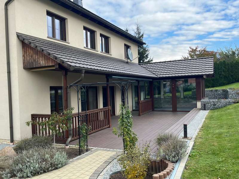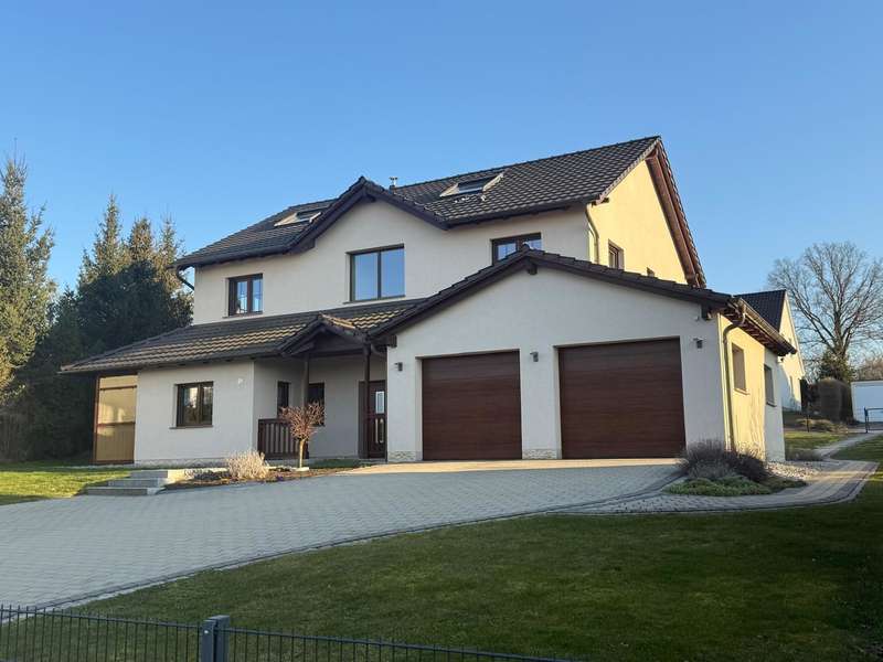 For sale is a modern detached house built in 2012, which impresses with its spacious layout and high-quality fittings. With a living space of approx. 199 m² and a plot area of approx. 1024 m², this property offers numerous opportunities for individual development. On the first floor are the kitchen with high-quality fitted kitchen, the dining room, the utility room, the WC, the office and the spacious approx. 50 m² living room. The bathroom, the study, the bedroom with dressing room and the guest room with bathroom are located on the upper floor. The master bathroom is equipped with a Jacuzzi, a shower and an integrated TV. Modern smart home technology networks the entire house and enables the lighting, speakers, heating systems and security devices, such as the surveillance cameras, to be controlled via a simple user interface. Both floors are barrier-free. A special eye-catcher is the conservatory, which is equipped with air conditioning and can be used in all seasons. The approx. 25 m² terrace extends the living area outside and offers space for sociable evenings or relaxing hours in the fresh air. It is partially covered and equipped with an awning, and the flooring is weatherproof. The property also has an efficient photovoltaic and solar system, which contributes to sustainable energy use. A heat pump, which was installed in April 2024, completes the home's energy concept. The windows are fitted with fly screens to ensure undisturbed living comfort. Ceiling speakers are installed throughout the house to enhance the ambience acoustically. The approx. 41 m² double garage offers space for two vehicles and additional storage space. The garage is directly connected to the house and thus offers a convenient way to keep shopping or traveling dry in any weather. The loft has already been prepared for further development and is equipped with electricity and high-quality laminate flooring. All in all, this detached house offers many attractive features and innovative technologies that make life pleasant. Potential buyers can expect a property that impresses with its well thought-out room layout as well as its extensive fixtures and fittings. A viewing appointment will give you vivid impressions of this unique home, which is ideal for families or couples who appreciate modern living in a spacious atmosphere.