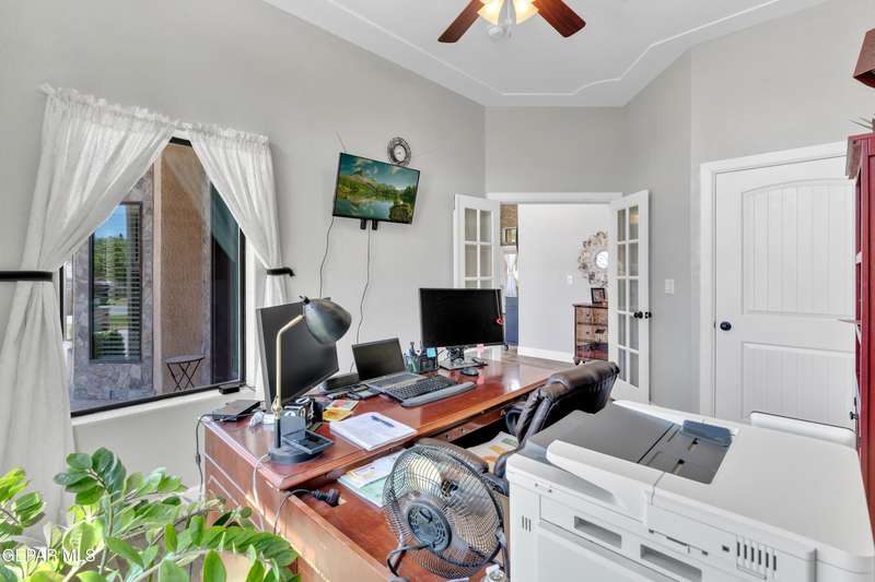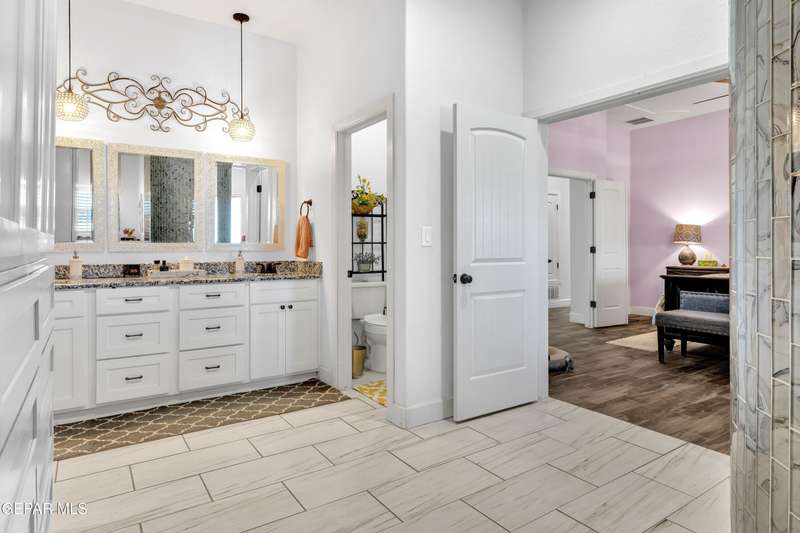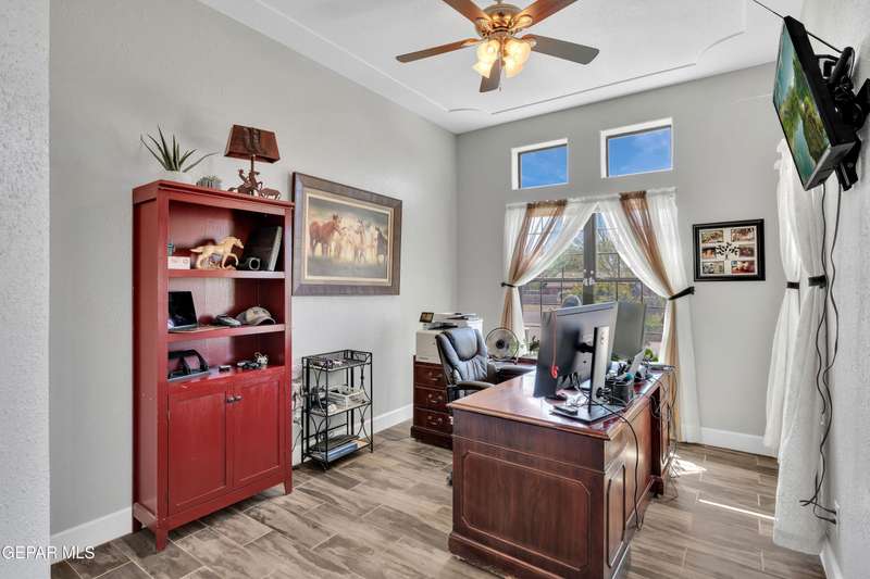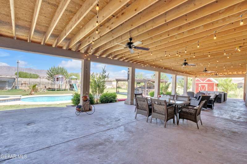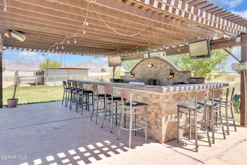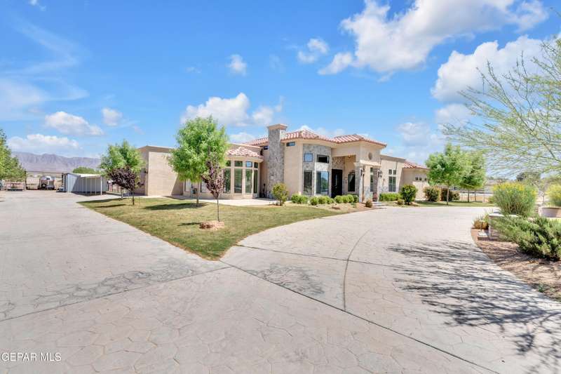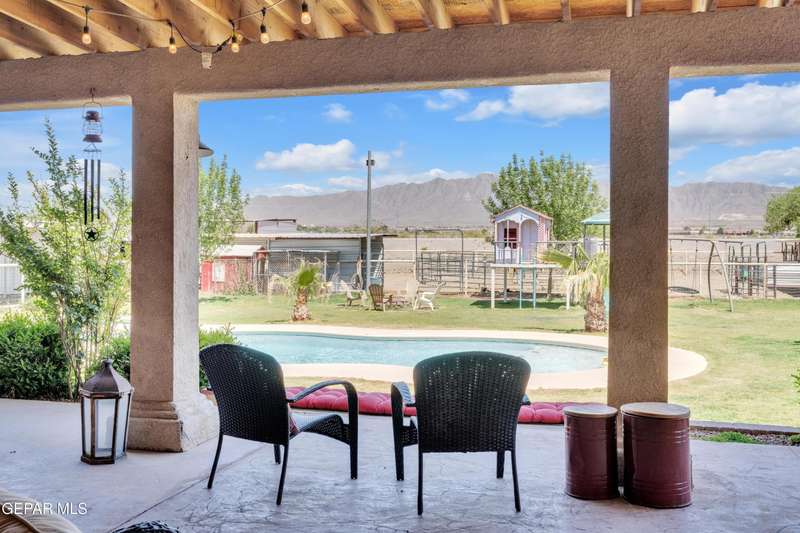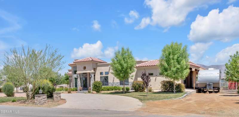 Welcome to 7692 River View Drive in Canutillo, TX - a stunning estate nestled on a sprawling 0.90-acre lot with direct access to the scenic Rio Grande levee. This unique property offers the perfect blend of country charm and modern comfort, featuring 4 bedrooms (one currently used as a home office), a beautifully appointed country-style kitchen, and expansive living areas ideal for entertaining. Step outside and experience true Texas outdoor living. The oversized patio and outdoor kitchen create an inviting space for gatherings, while the sparkling swimming pool provides a refreshing escape. Equestrian enthusiasts will appreciate the horse stalls, corral, and dedicated tack room-all surrounded by sweeping views of the majestic Franklin Mountains. Weather you're riding along the levee, relaxing poolside, or hosting unforgettable evenings under the stars, this property offers an unmatched lifestyle. Schedule your private showing today and make this remarkable estate your own.