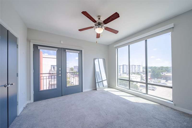 Welcome to this prime top-floor corner residence at The Shelby, ideally located near SMUs East Campus! Offering the largest floor plan in the building, this home features a bright generous sized open living room and kitchen that maximizes usable space with expansive window views to the Southwest. The split layout places both bedrooms located on one side of the home and the main living areas on the other, creating a balance of privacy and personal time. The primary suite features a Juliette balcony, dual sink vanity, a large walk-in closet and a second closet in the bedroom for ample storage. The second bedroom also enjoys its own Juliette balcony and easy access to the adjacent second full bathroom. At the end of the day, unwind on the covered south-facing balcony and take in stunning sunsets. Conveniently located .4 miles from Mockingbird station, The George W. Bush Presidential Center, and adjacent to the SMU campus, you will find yourself at the heart of it all. Residents enjoy 2 reserved garage parking spaces along with access to an onsite fitness center, a spacious outdoor patio with grills and an indoor inviting lounge for entertaining or socializing. Note: The bedroom and living room photos feature virtual staging.