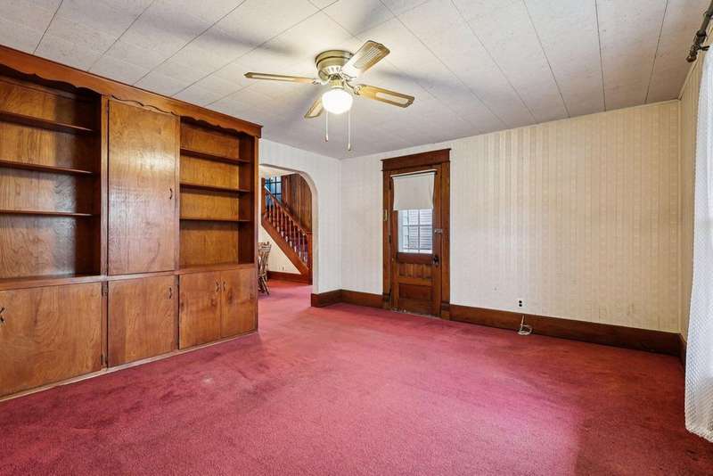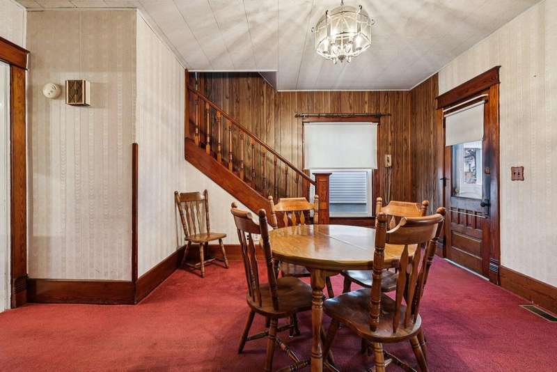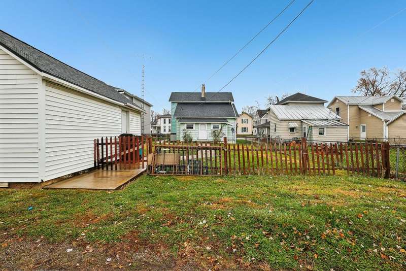 Some homes carry an old soul. Soft echoes of past decades, the warmth of the woodwork & the way the light falls. This 4 bed/1 bath home has that comforting energy that makes you want to stay awhile. There are thoughtful updates where it counts, including a BRAND NEW ROOF, vinyl replacement windows on the main level, while leaving plenty of room to personalize, reimagine, and build equity.From the moment you step onto the deep wraparound porch, you can feel it. Inside, the layout unfolds with that classic flow: a large front living room w/ tall windows, an arched doorway that gives you a little swoon moment, & a formal dining room anchored by the home's original staircase--a character piece all on its own. Imagine holiday dinners, long conversations, & everyday footsteps drifting up the steps. And yes... hardwood floors are waiting under the carpet to shine again. The kitchen is surprisingly generous--truly the heart of the home--w/ plenty of cabinetry, space to redesign to your taste, & a bonus rear-entry laundry/mudroom. It's the perfect drop-zone for muddy boots, grocery hauls, pet routines, or a future pantry wall. One of the unexpected perks? A full bathroom on the first floor, tucked right where you need it, next to a main-floor bedroom! Whether you're looking for single-level living, a guest suite, or a future office, this setup gives you options. Upstairs, three more bright bedrooms stretch out w/ natural light & classic trims. Out back, the fenced yard is perfect for pets/play, & the detached 1-car garage offers storage or workshop potential. The partial unfinished basement is straightforward & functional--ideal for tools, totes, or tinkering. Room to personalize, reimagine, & build equity. Whether you're dreaming of a renovation, a slow-and-steady refresh, or simply a place w/ character that you can make your own, this home is ready for its next keeper!