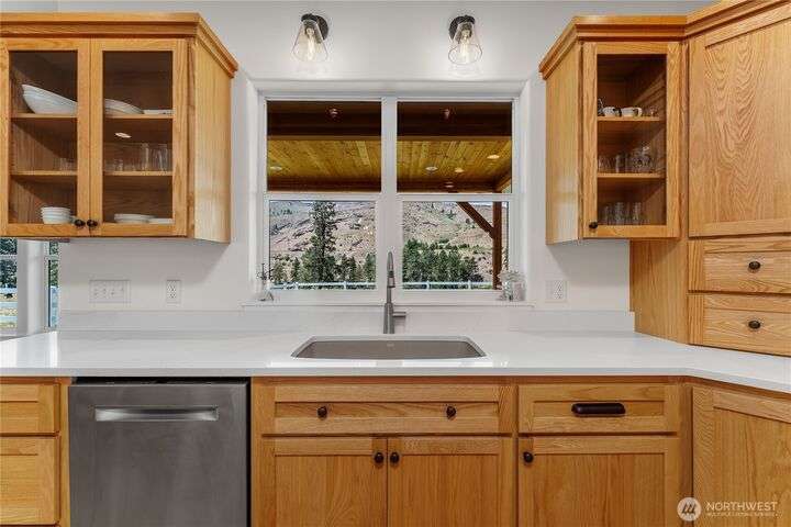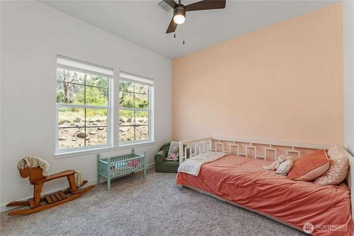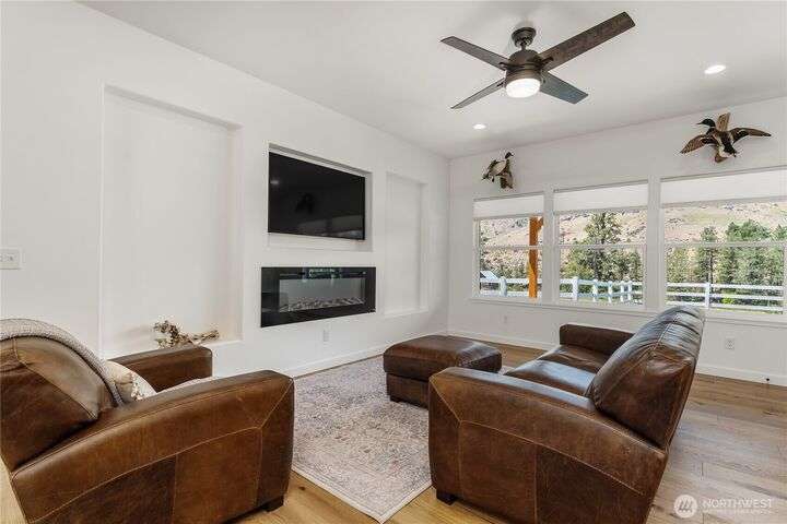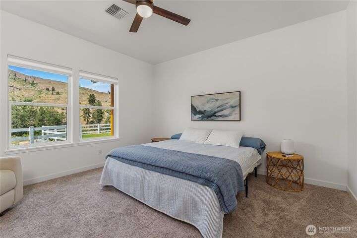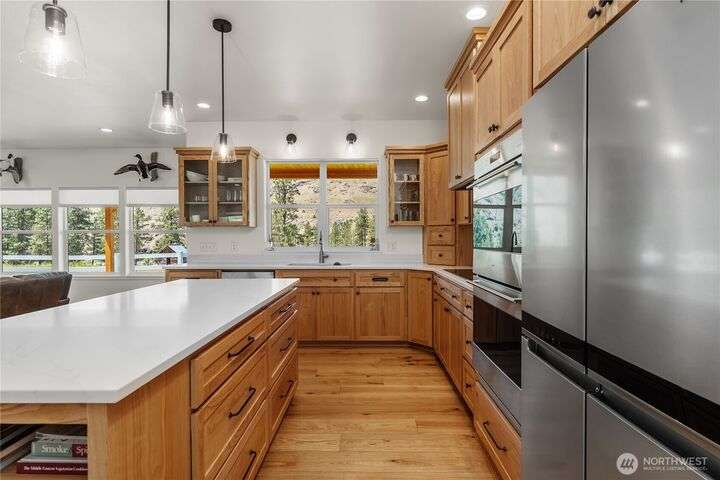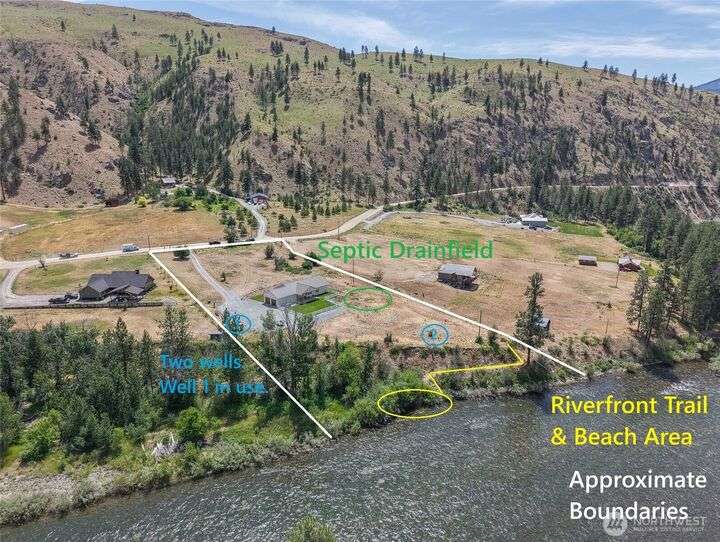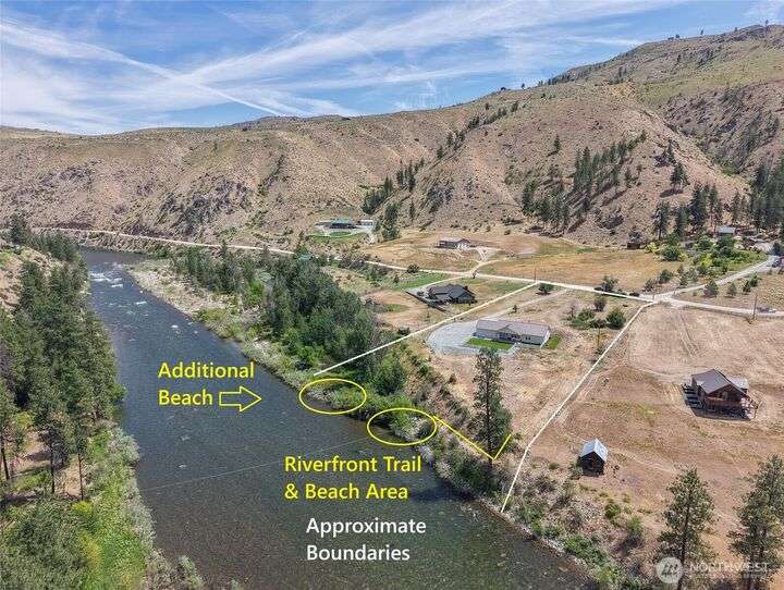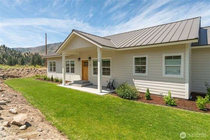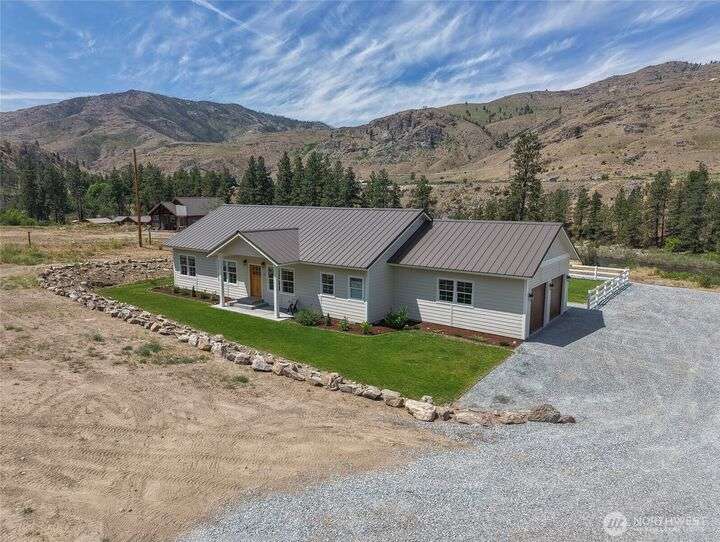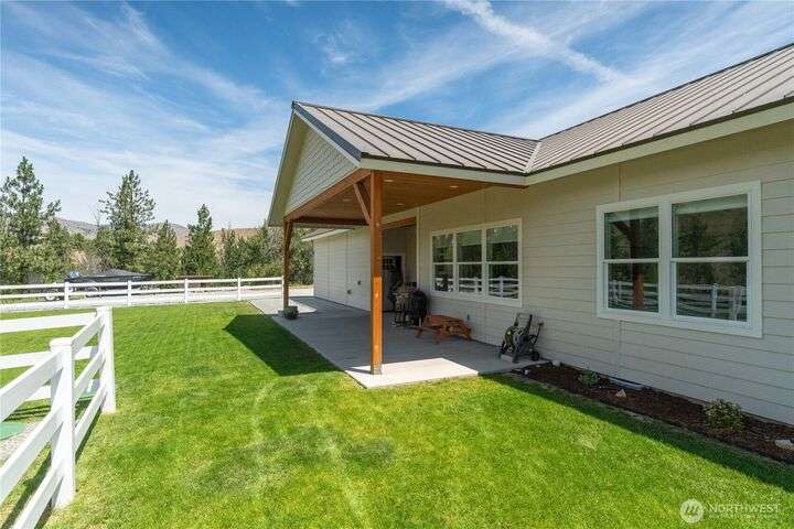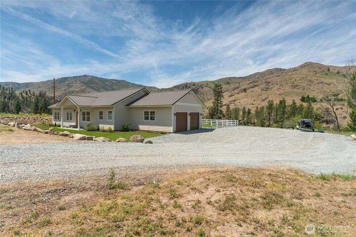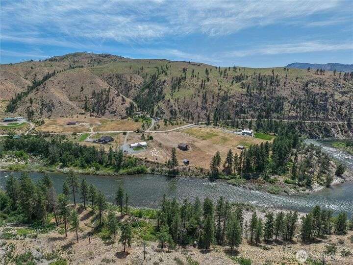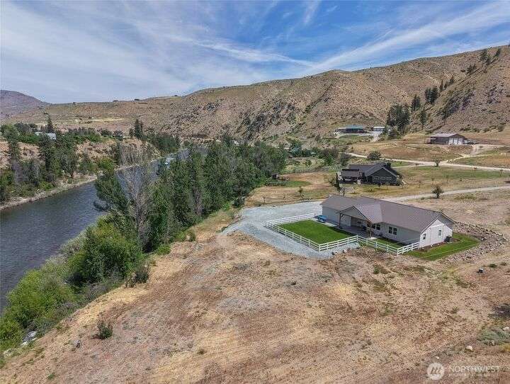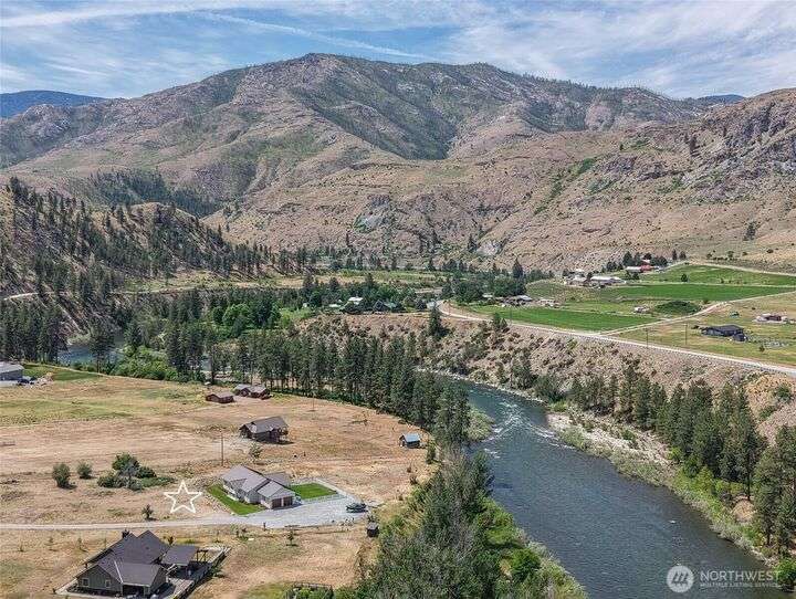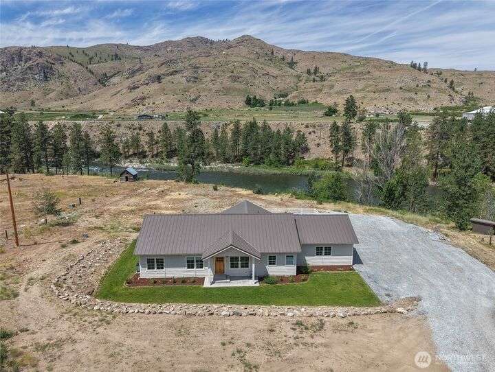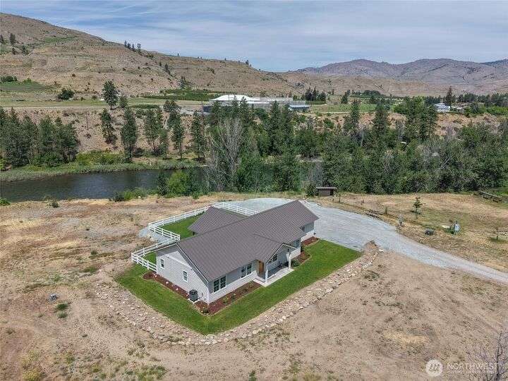 Stunning like-new custom rambler on 3 acres w/ 273' of Methow River frontage! Enjoy panoramic Mtn views from every window & full river views from the back of the home. Private trail leads to a sandy beach & an excellent trout fishery! Endless riverside adventures & relaxation by the water. This 3 bed, 2.5 bath home features 9' ceilings, white oak engineered hardwood floors, slate tile, quartz counters, & chef’s kitchen w/ Wolf double oven, Wolf induction cooktop, & custom walk-in pantry. Nicely landscaped w/ sprinkler system, white vinyl fencing, fruit trees & mature pine. Spacious covered patio, insulated 2-car garage w/ loft storage, & 2 high-producing wells(one used). A move in ready home nestled in a peaceful, serene, & private setting!