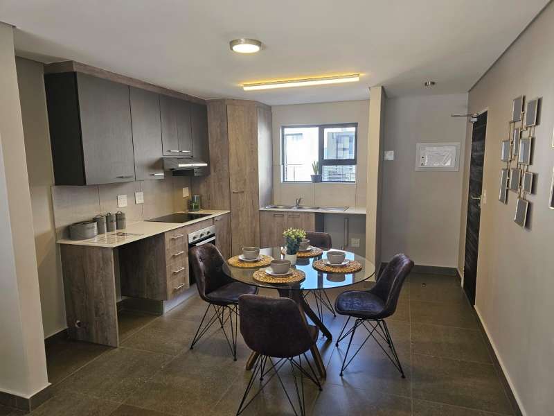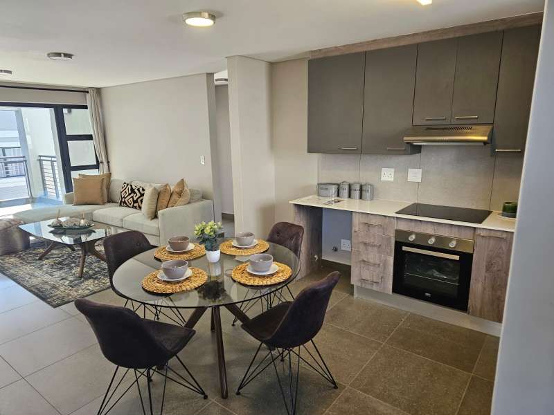 Step into a world of refined luxury with our brand new, meticulously designed 2-bedroom, 1.5-bathroom first-floor apartment. Nestled in an exclusive community, this residence harmoniously combines sophistication, comfort, and security to offer you a lifestyle of unparalleled elegance. Immerse yourself in the epitome of luxury with high-end finishes and extra high ceilings that exude opulence in every corner of your new home. The attention to detail creates an environment of unparalleled refinement. Indulge in the seamless harmony of style and functionality in your open-plan lounge and kitchen. Caesar stone tops and an under-counter oven add a touch of modernity to your culinary haven, transforming it into a space where memories are not just made but celebrated. Relish breathtaking views and fresh air on your private balcony, complete with a built-in braai. Whether you're hosting guests or enjoying a quiet evening, this space is thoughtfully designed for both relaxation and entertainment. Enhance your lifestyle with access to a communal pool, play areas for kids, and a clubhouse with braai facilities. It's the perfect setting for creating cherished memories with friends and family, right at your doorstep. Your safety is our priority. The property boasts a 2-meter electric perimeter fence, ensuring privacy and security. Security cameras in public areas, biometric access control, and the added benefit of a first-floor unit design contribute to a secure and peaceful living environment. Seize the opportunity to own a piece of modern luxury on the first floor. This apartment is a perfect blend of comfort, style, and security. Schedule a viewing now and make this sophisticated residence your new home! Elevate your living experience to new heights.
