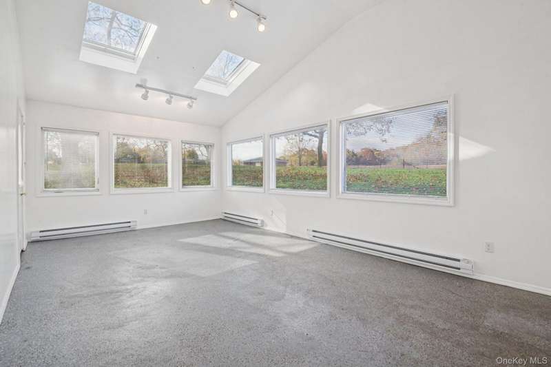 Move-in ready for the Holidays! Welcome to the desirable Strathmore Court community! This beautifully maintained 3 bedrooms, 1.5 bath end unit Levitt ranch ( in a cul-de-cac) offers comfort, style, and plenty of updates. The beautifully eat-in kitchen features, granite countertops, a center island, water filtration system, pull-out cabinet draw pantry and ceramic tile flooring. Enjoy the open-concept living and dining area. The highlight of the home is the 13x25 Sun Room (built in 2012) a true bonus space with vaulted ceilings, skylights, large picture windows overlooking park-like views, epoxy flooring, outside entrance, large storage room and its own heating and A/C zone, perfect for year-round enjoyment. The home offers 2 bedrooms with brand new carpeting, while the primary bedroom features laminate flooring and a walk-in closet with staircase access to a full attic with plywood flooring. The full bath (jack and Jill) has been tastefully updated and the GE dryer and Bosch washer are included. Whole house has been freshly painted. Updates also includes: Heat pump (2019), Roof (2013), Hot water heater (2012), Electric panel (2012). 2 assigned parking spaces. Enjoy resort-style living in this vibrant community of 440 townhomes, offering an Olympic size pool, basketball court (2024), tennis, pickleball, and handball courts, bicycle lane plus a newly renovated clubhouse (hours 5am-11pm) with fireplace, pool table, full kitchen, Ethan Allen furnished lounge and dining area, saunas and fitness center. Children playground. Vacation at home just minutes from the charming Village of Port Jefferson, with its shops, dining and harbor views!