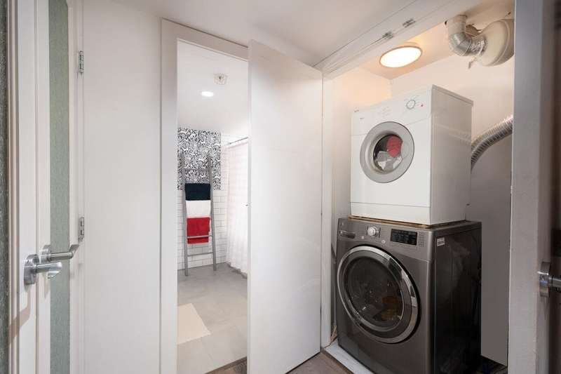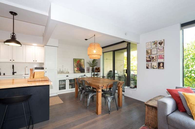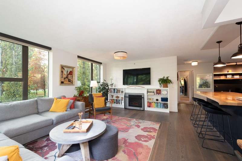 This beautifully renovated 1,214 sq.ft. corner residence showcases floor-to-ceiling windows, sophisticated finishes, and an exceptional open layout. The 2-bedroom, 2-bathroom plus office design offers seamless flow between the chef-inspired kitchen—featuring a solid wood island and gas range—and the bright living area that opens to a private balcony. The primary suite impresses with generous closets and a spa-like 5-piece ensuite. Two secure parking stalls (one oversized) and a storage locker add convenience. Enjoy concierge service, fitness and meeting rooms in this boutique concrete building. Perfectly positioned beside Victoria Park and moments from Lower Lonsdale’s fine dining and waterfront amenities. Pet and rental friendly. Open house Saturday Nov 29, 2:30-4pm.