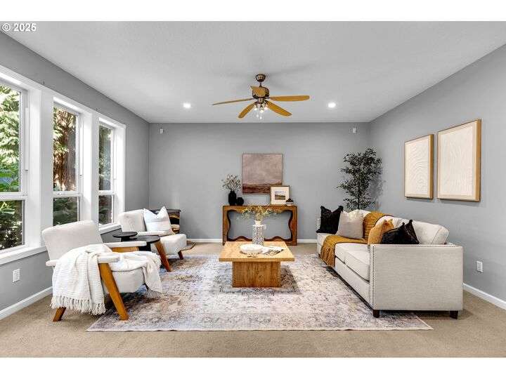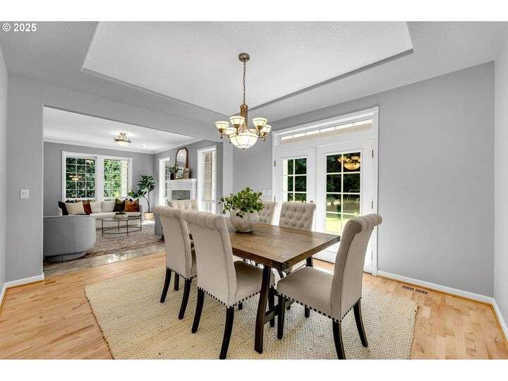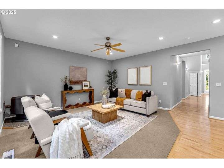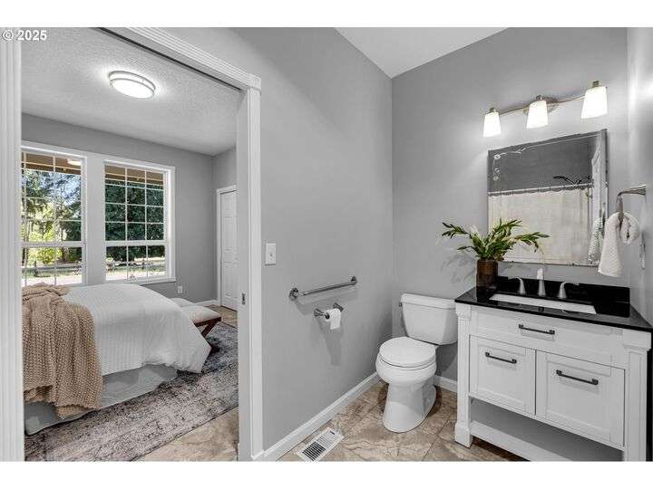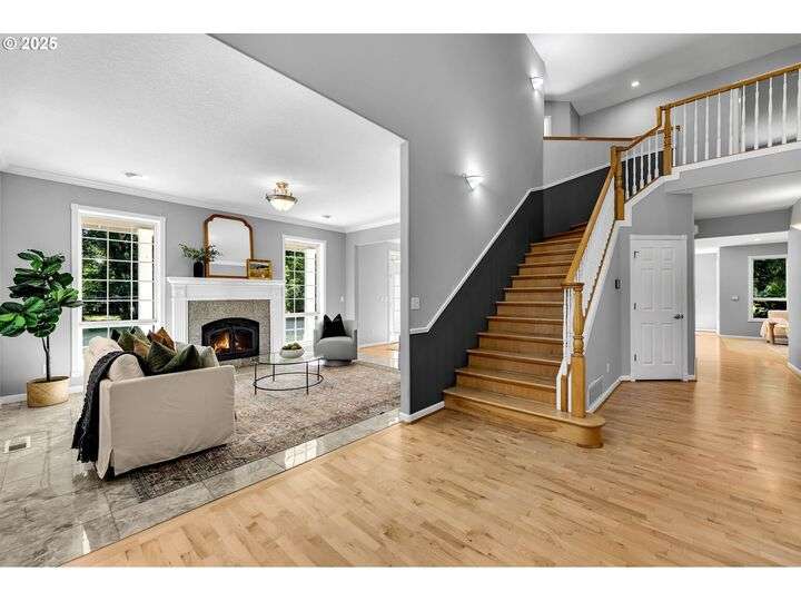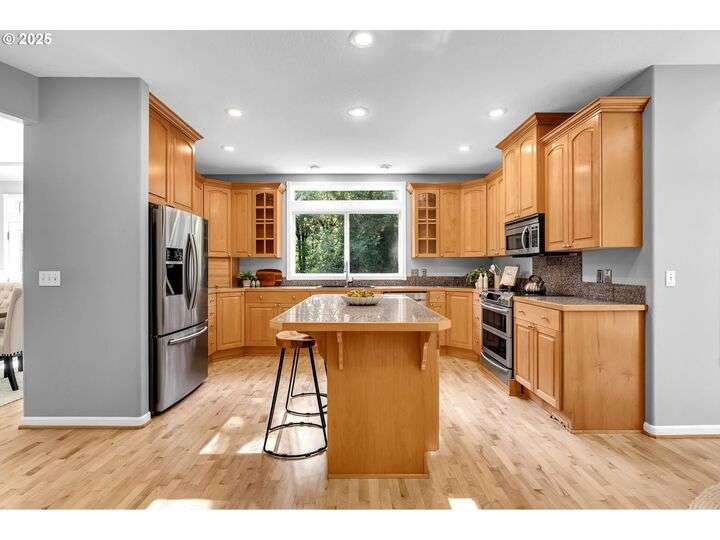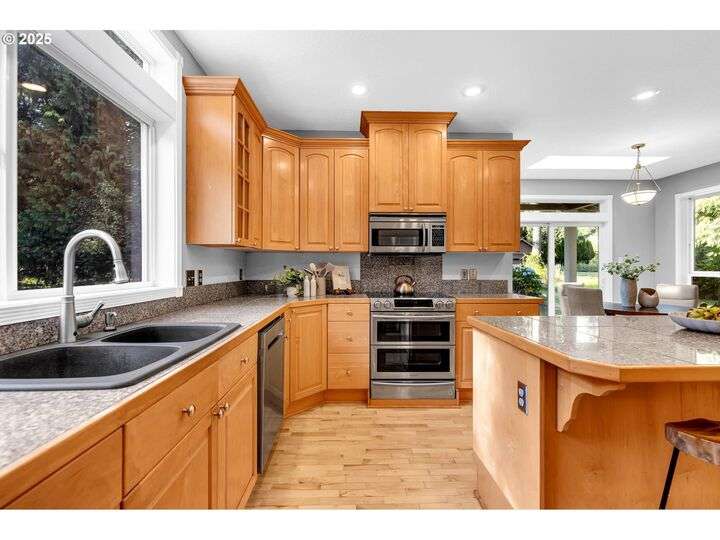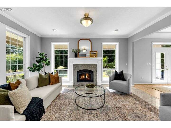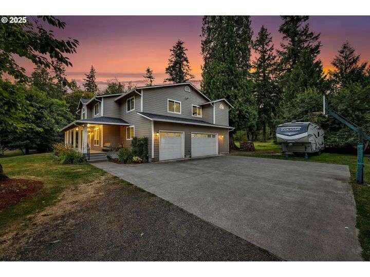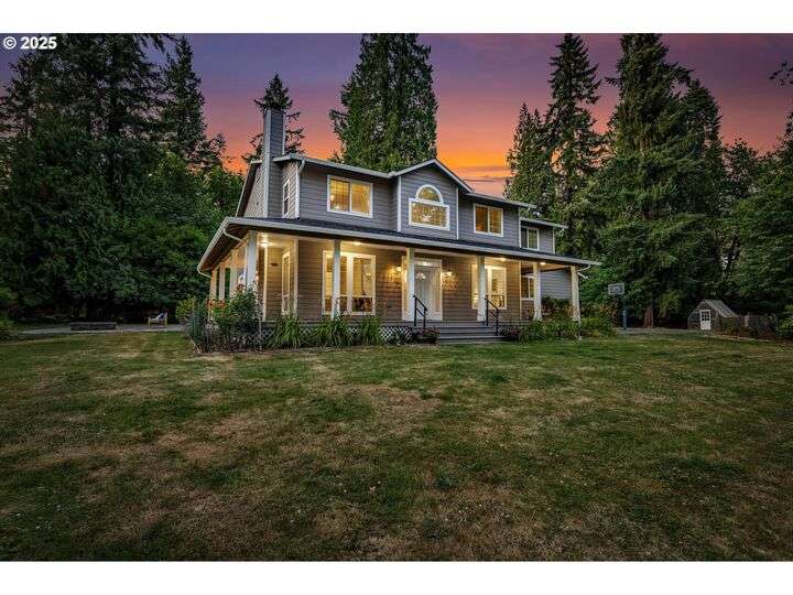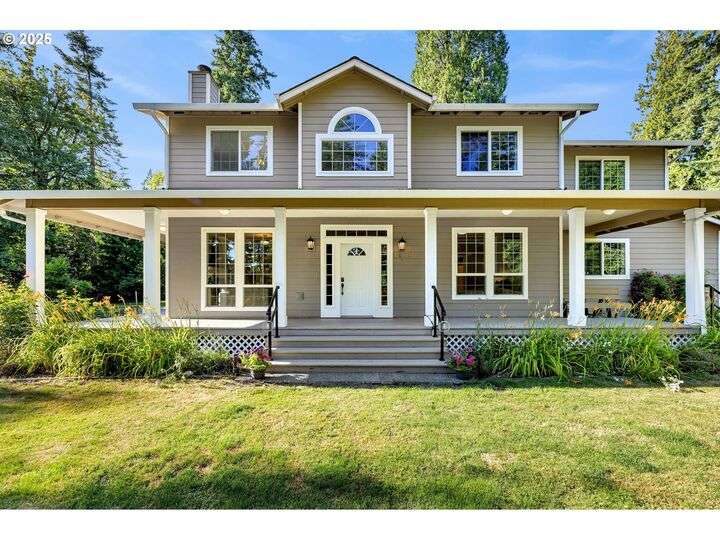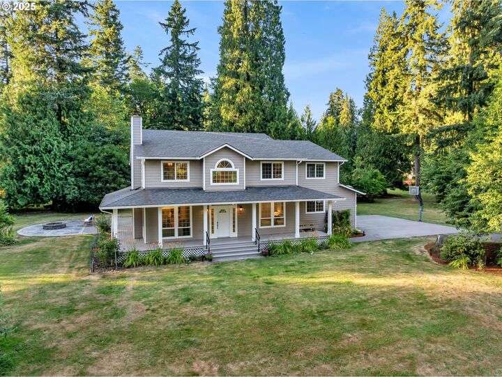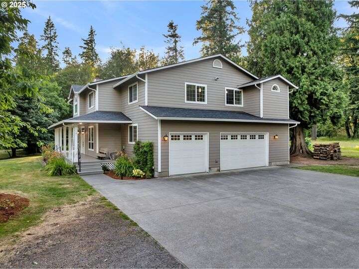 Rare find! Discover tranquility on this private, beautiful, 2.53-acre Salmon Creek estate. This custom 3947 sf, 6-bedroom, 4 bath home invites you to country living with a wrap-around porch. Step inside to vaulted ceilings, maple hardwood floors, maple cabinets and tasteful updates throughout. The main level offers formal living w/wood burning fireplace + dining room w/walk out to back yard porch and patio. Guest room/office w/attached bath on main level. Chef’s kitchen with island/eat bar, granite counters, stainless steel appliances, double oven, walk-in pantry – opens to family room w/pellet stove. Spacious laundry room with built-ins for lots of storage, folding and crafting + laundry chute and sink. Upstairs boasts a primary suite with spa-like bath complete w/jetted tub + walk-in tiled shower. Additional living quarters w/separate entrance + separate water heater, ideal for rental income ($1200/mo) or extended family, features LVP flooring, stainless steel appliances, granite counters, convection oven/microwave, portable induction 2 burner plate, barn door and walk in tile shower. Oversize-3 car garage, RV parking, garden + greenhouse, fruit trees covered patio, firepit area. New interior paint, new water softener 2025, furnace/heat pump 2022, 50 yr roof 2017, 3 40-gallon water heaters. Private road with cul-de-sac. Walk to Whipple Creek trail system, close to shopping, hospital + easy access to I-5/205 – PDX 30 minutes away. Don’t miss this extraordinary opportunity to call this estate HOME!