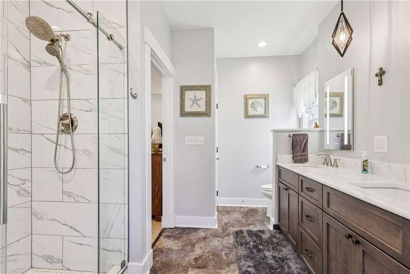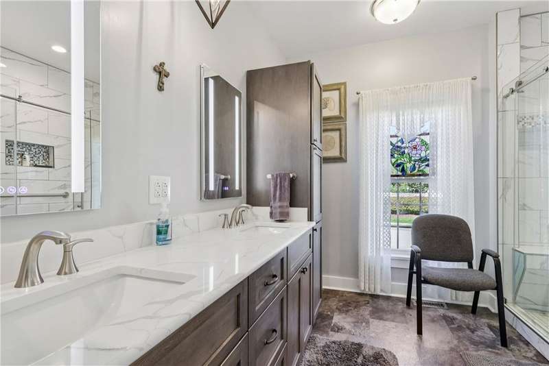 Well-maintained home w/exceptional recent updates throughout. The ML boasts an open flr plan w/a GR featuring a gas FP, Cathedral ceilings & a wall of windows providing natural lighting & bright ambiance. Freshly painted throughout w/neutral color palette. Retreat to 1st flr Master BR suite w/newly remodeled spa-like bathroom & lrg walk-in closet. Fully equipped kit w/newer appliances, an abundance of cabinet & counter space, granite counters & brk bar seating. Formal dining area has plenty of space to have holiday gatherings. Formal LR/seating area can be made into an addtl 1st flr BR. 1st flr laundry rm has added extra features incl built-in clothesline, wall hangers & granite counters. The UL has an open view of the Great Rm, 2 addtl spacious BRs and 3 more addtl rms that can be used for storage, addtl BRs/ exercise rm, office, etc. Covered front porch, backyard oasis, comm clubhouse, 2 heated comm pools, playground, BB courts. Stellar location w/in the Village at Sarver's Mill!