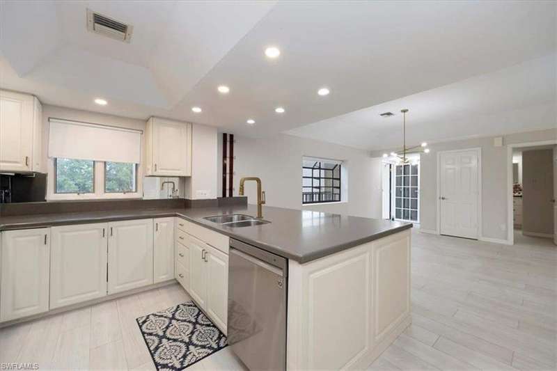 Top-Floor Condo with Stunning Lake Views !!Enjoy serene sunrises in this beautifully updated 2-bedroom, 2-bath condominium with coveted eastern exposure located in an elevator building. Soaring 9-foot ceilings and an open-concept layout create a bright, tranquil living space. The remodeled kitchen boasts new cabinetry and stainless-steel appliances, including a fryer oven and an oversized island ideal for entertaining or casual dining. It also features stunning light tile, while the expansive screened lanai offers the perfect spot for morning coffee overlooking the lake. Experience a community pedestrian gate that provides easy access to shopping, dining, and even an EV charging station. All this is only four miles from the sugar-white sands of the Gulf of Mexico. Living in Naples Bath and Tennis Club feels like residing in a lush tropical park, with mature landscaping and a highly sought-after central Naples location. Residents enjoy pet-friendly living, an extra storage unit, and a peaceful community setting surrounded by natural beauty.