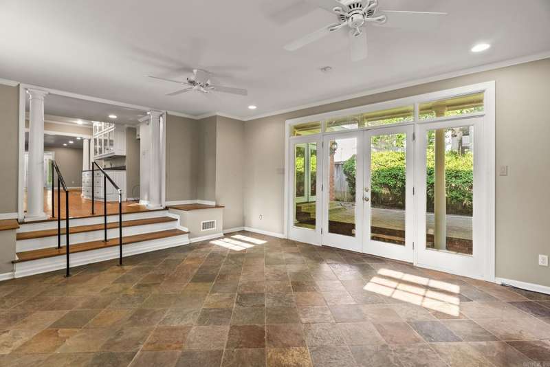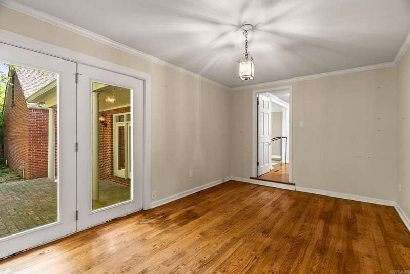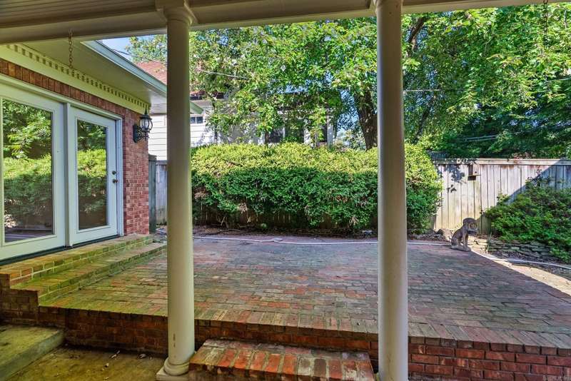 One level Heights home with a two car garage on the corner of Country Club Blvd and Van Buren Street. This home has two bedrooms with the primary bedroom having a large walk in closet that holds the laundry which is super convenient. Oversized primary bath with double vanity and marble floors. There is a nice sized office with french glass doors overlooking the backyard. Formal living room as you walk in the front door with a gas log fireplace. The kitchen flows nicely into the large family room in the back of the house. This family room has tall ceilings and a fireplace and a wall of windows and doors overlooking the backyard. Cute backyard with a beautiful pond. Oversized garage with ample storage above. This lot can become 65 feet buildable across if a 15 foot section on the east side is purchased from the city.