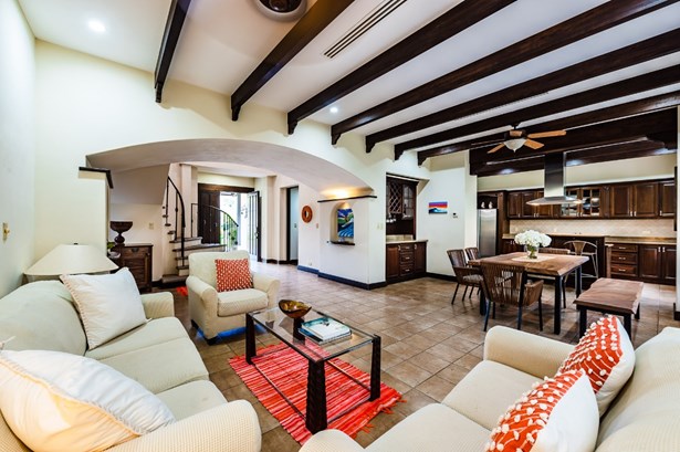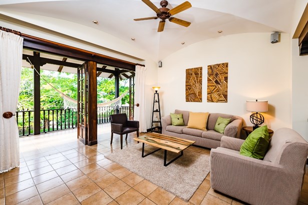 Welcome to The Dream Villa - Villa #221, a luxurious 2-bedroom, 2.5-bath condominium located within the prestigious Jardines de Palma Real, an exclusive beachfront community within Hacienda Pinilla. Boasting an expansive 3139 square feet of indoor space, this meticulously maintained home offers two spacious living rooms, one on each level, and ample room for entertaining on two levels of covered verandas.The lower level greets you with an inviting entry hall, a convenient half bath, and a guest bedroom with an ensuite, seamlessly flowing into the open-concept living, dining, and kitchen area. The kitchen is adorned with stainless steel appliances, an island with seating for two, and an adjacent pantry and laundry room. Recently updated furnishings include a stunning locally crafted native hardwood dining table with seating for 6 or 7, and a built-in bar. The living room, complete with plenty of comfortable seating, seamlessly extends to the veranda, providing additional outdoor living space. The first-floor bedroom offers versatility with two double beds, one featuring a single bunk above, and full-size doors opening onto the covered veranda.Upstairs, the second living room boasts updated furniture, built-in cabinetry, and storage, and opens onto the upstairs covered veranda. Relax in the hammock with a good book, while gentle tropical breezes lull you into serenity. The principal bedroom features an ensuite with a shower and a spacious soaking tub, complemented by two sets of French doors that lead to the veranda.Proximity to the ocean is guaranteed at Villa #221, offering access to the pristine beaches of Hacienda Pinilla. Surround yourself with over 50 kilometers of hiking and biking trails, world-class surfing, tennis, pickleball, and a beachfront club with a pool, restaurant, and fitness center. Enjoy the security and serenity of living in a large gated community while indulging in the array of amenities provided for homeowners in this unique coastal sanctuary. This property would make a wonderful full-time residence or vacation rental. Reach out today to find out more and to schedule a private viewing!