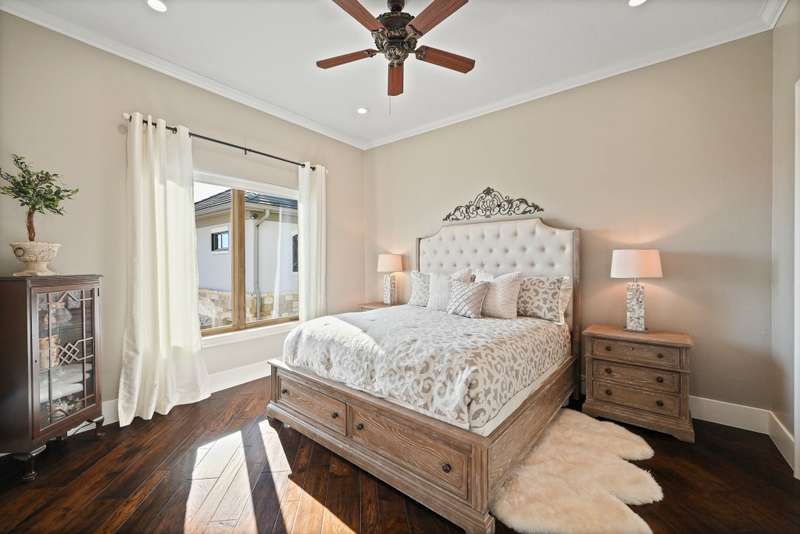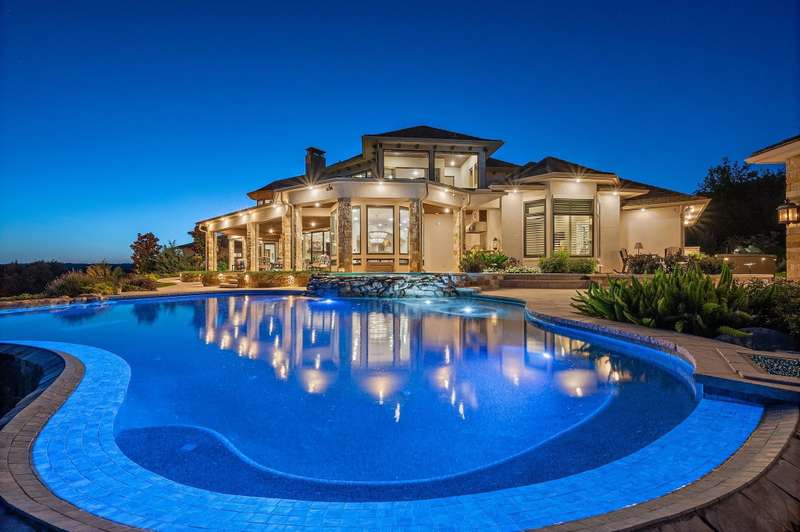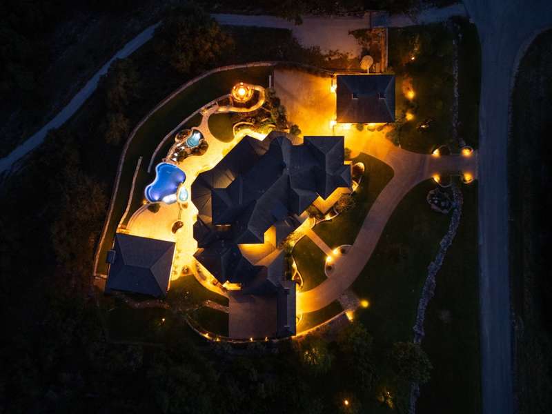 Stunning custom-built luxury home by G. Morris Homes in the heart of the Texas Hill Country. This one-of-a-kind property offers panoramic views of the Guadalupe River & surrounding hills, the perfect setting for quiet, luxury, Hill Country living. Located in the prestigious Mystic Shores community, this home combines privacy, elegance, & convenience, with easy access to San Antonio, Austin, New Braunfels, & Houston, making it ideal for both a full-time residence or a Hill Country getaway. This thoughtfully designed estate offers privacy, comfort, and elegance, with multiple gathering areas, and stunning views from every room. Enjoy a glass from your 400-bottle climate-controlled wine room as you dine overlooking the river. The outdoor living spaces are equally impressive, featuring a covered patio with electric shades, a pavilion with heated floors, fireplace, air conditioning, and an infinity-edge pool, hot tub, and waterfall for year-round relaxation. For car enthusiasts, theres room for up to 8 vehicles across multiple garages. Smart home features include security cameras throughout, all controlled from your phone or tablet. Designed with ADA accessibility, the home includes an elevator, ramps, wide hallways, and accessible showers. A private guest house provides a full kitchen, living area, laundry, bedroom, and bath, ideal for guests or in-home care. Built with efficiency and durability in mind, the property features insulated walls and ceilings, Aprilaire systems, a four-step water filtration and UV treatment system, cistern-fed irrigation, and a commercial Kohler generator for backup power. Enjoy the peaceful surroundings, where deer and native birds are part of everyday life, and a private switchback trail leads to your own serene meadow. Conveniently located near San Antonio, Austin, New Braunfels, and Houston, this property offers the best of Hill Country living, luxury, privacy, and views that will take your breath away. These views are worth the visit.