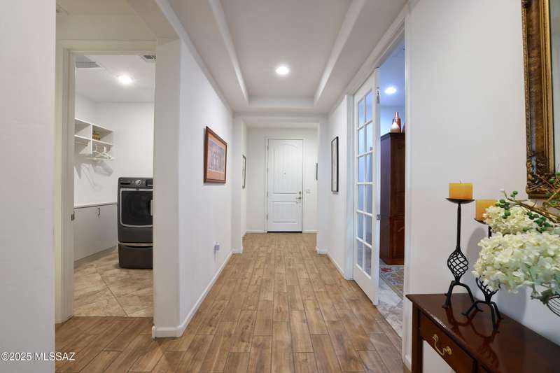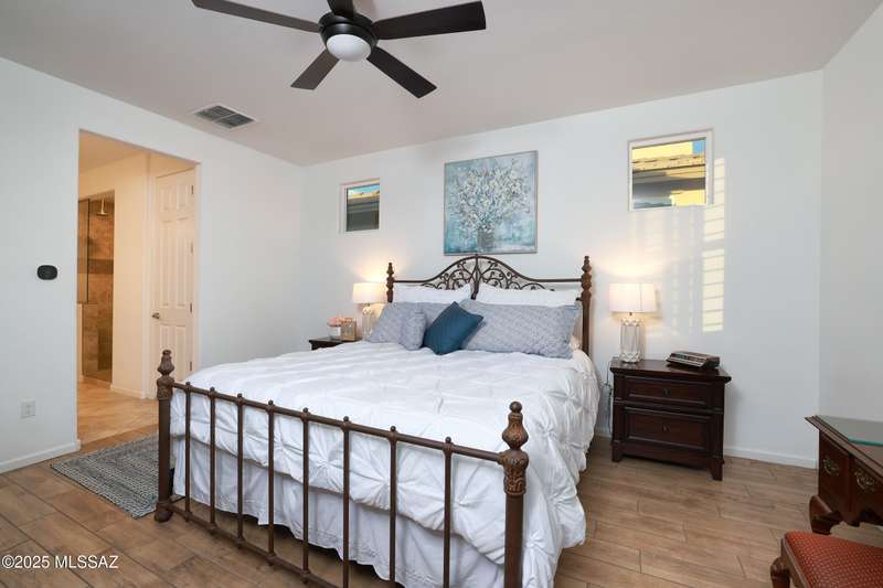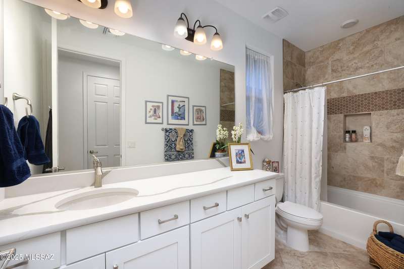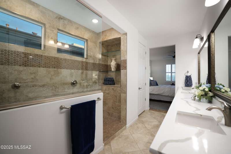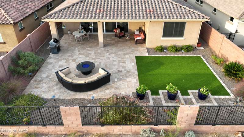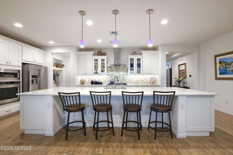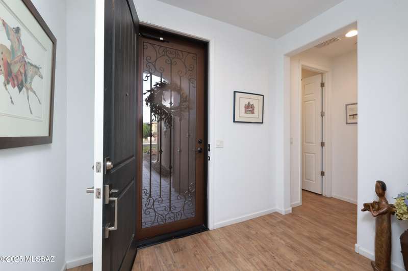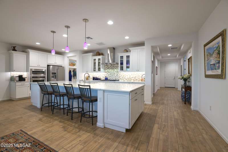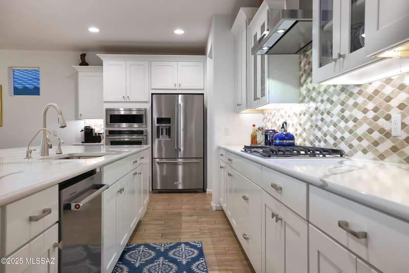 Views Views Views! Perfectly positioned against the open desert of the Tortolita Preserve, this beautifully appointed Dove Mountain residence blends modern sophistication with timeless comfort. Every detail--from the elegant fireplace to the stunning quartz finishes--has been carefully selected for effortless living.The open-concept layout is filled with natural light, anchored by a warm great room with a striking stacked-stone, floor-to-ceiling fireplace, and enhanced by porcelain tile flooring that flows seamlessly through every room. A 16-foot, four-panel sliding glass door opens to the patio, blending indoor and outdoor living while showcasing the beautiful desert and mountain views beyond. The chef's kitchen combines beauty and function with glass-front, upgraded cabinetry,