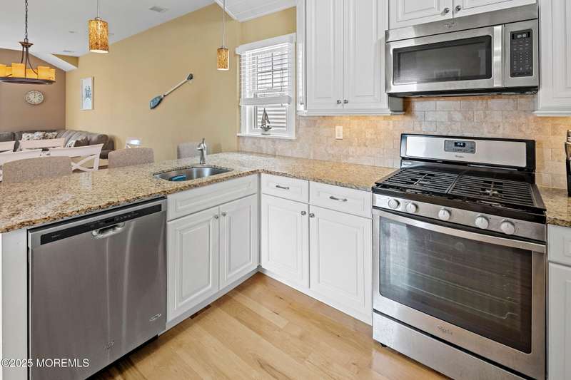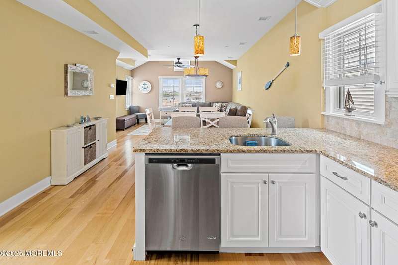 Welcome to your dream coastal retreat! This stunning, fully furnished freestanding condo offers 3 bedrooms, 2 bathrooms, and breathtaking bay views. Built in 2014 with a reverse living design, the open-concept kitchen features stainless steel appliances, granite countertops, and an abundance of natural light. Hardwood floors flow throughout, creating a warm and inviting atmosphere. Enjoy mesmerizing sunsets from the rooftop deck, or unwind in your private backyard with a paver patio perfect for entertaining. With tandem garage parking, an outdoor shower, and a prime Ship Bottom location, this is the ideal place to create unforgettable LBI memories!