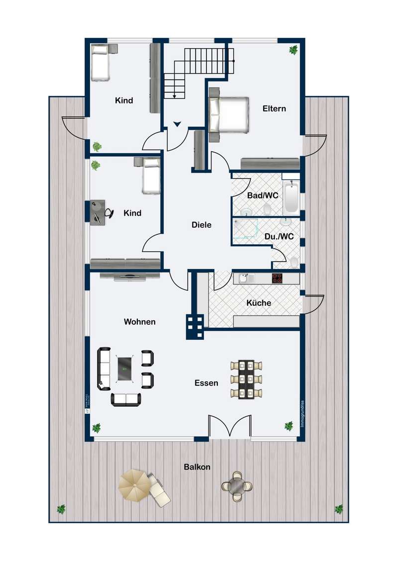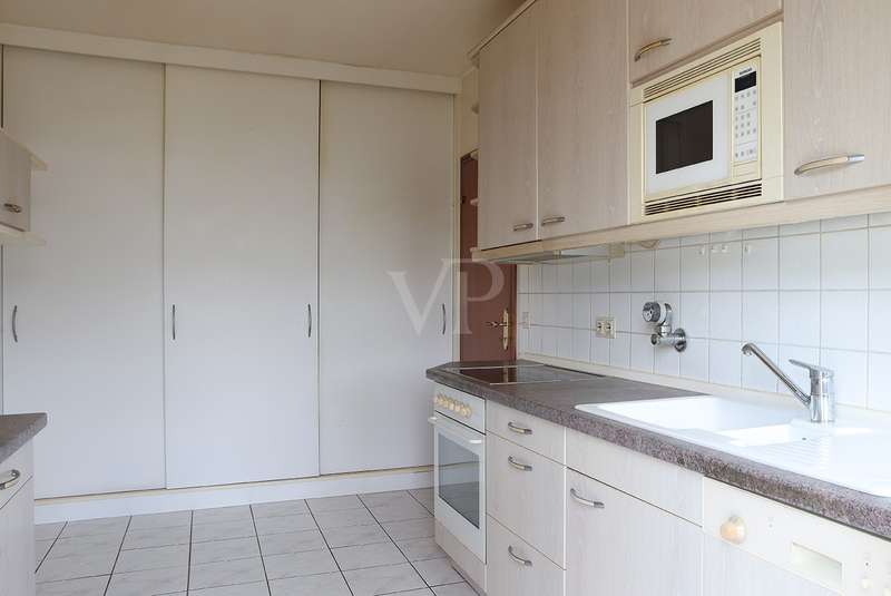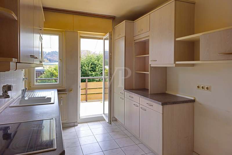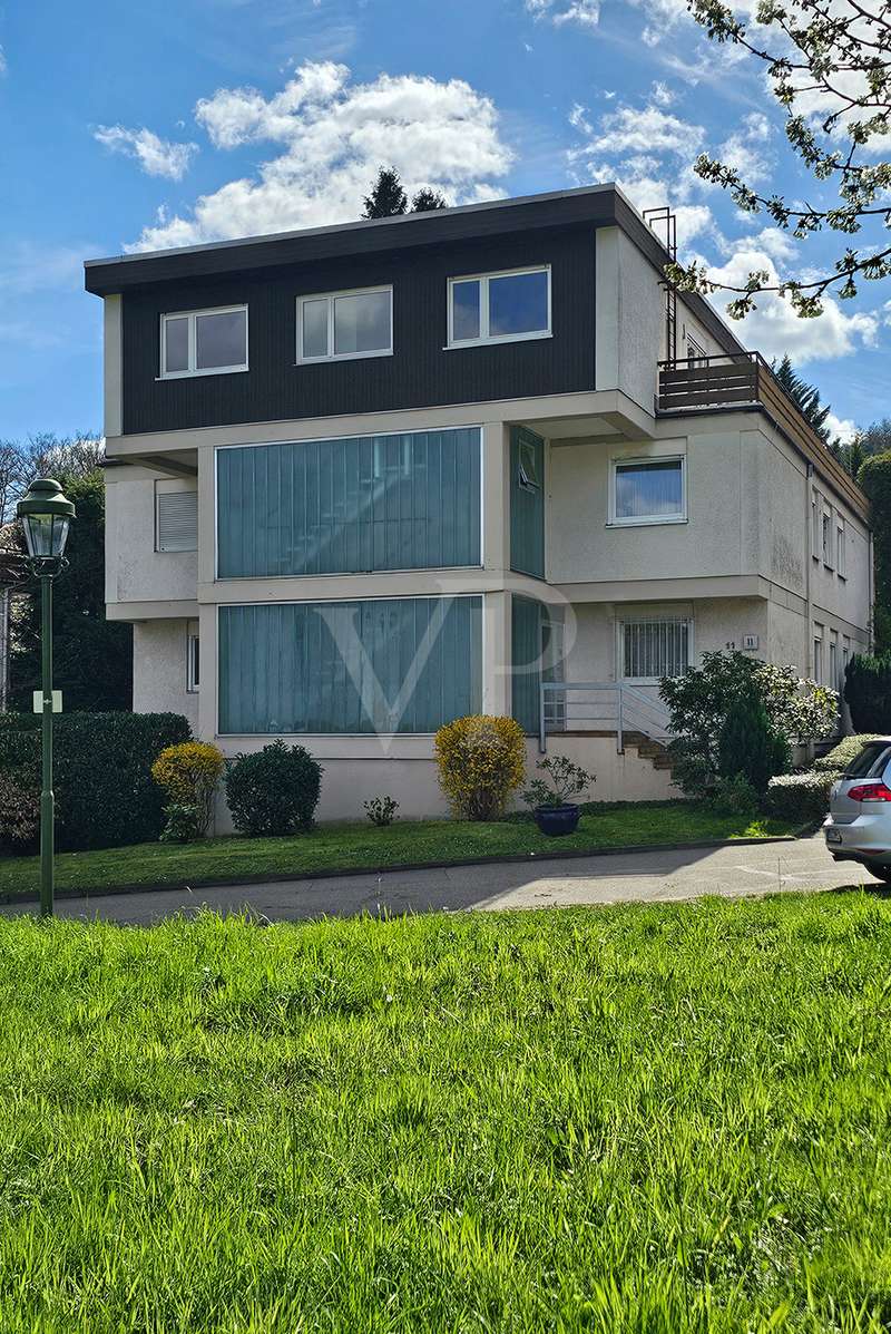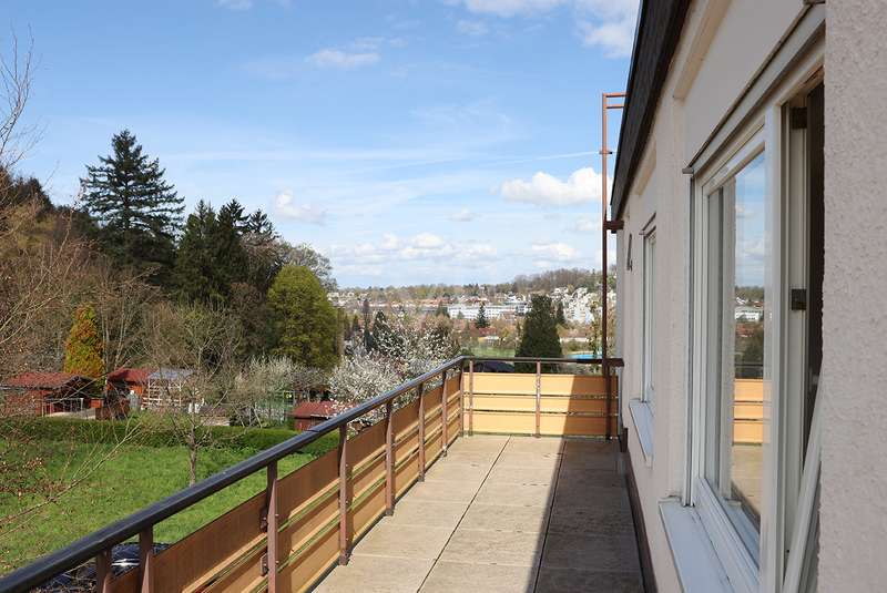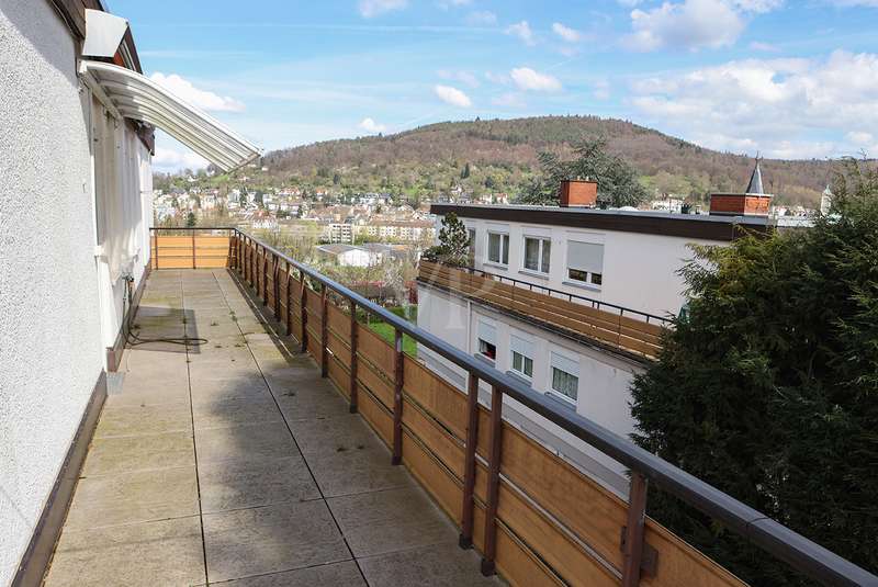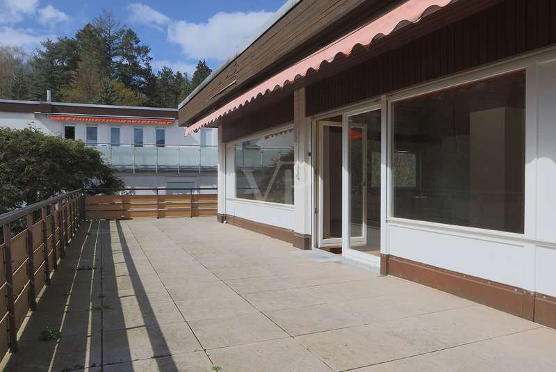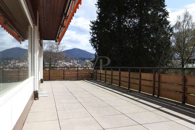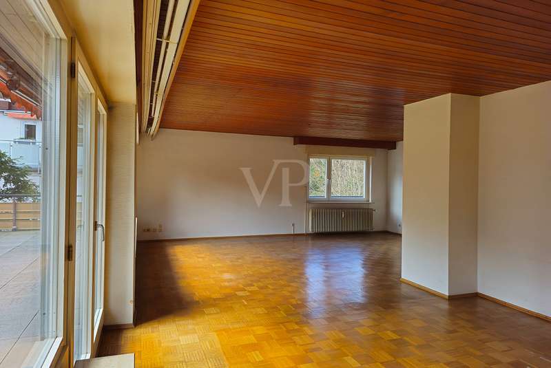 Spacious penthouse with wrap-around roof terrace and fitted kitchen The spacious penthouse apartment with a living space of approx. 165 m² is in a well-kept condition. The property was built in 1972, but has been continuously maintained and is therefore in good condition. The spacious room layout comprises a total of 4 rooms, including a bedroom with access to the roof terrace, another room with access as well as a guest room, the large living and dining area and two bathrooms. The wrap-around roof terrace is particularly impressive, offering breathtaking views on three sides of the penthouse. Here you can enjoy the sun to the full and spend pleasant hours outdoors. In addition, two awnings provide pleasant shade on hot days. The high-quality furnishings of the apartment include parquet flooring in the living rooms and tiles in the bathrooms and entrance area. The daylight bathroom has a bathtub, a bidet, a washbasin and a WC, while the second bathroom is equipped with a shower, a washbasin and a WC. The fitted kitchen offers all the necessary appliances and plenty of storage space for your cooking utensils. A separate laundry room in the house allows you to conveniently wash and dry your laundry. Another plus point is the existing cellar room, which offers additional storage space. The property also includes a garage, which offers you a secure parking space for your vehicle. The central heating provides pleasant warmth in the cold months. The penthouse is located in a quiet residential area, yet offers good connections to public transport and shopping facilities. Thanks to its upscale furnishings and spacious rooms, this property is perfect for discerning buyers looking for a comfortable home with a special flair.