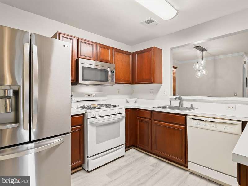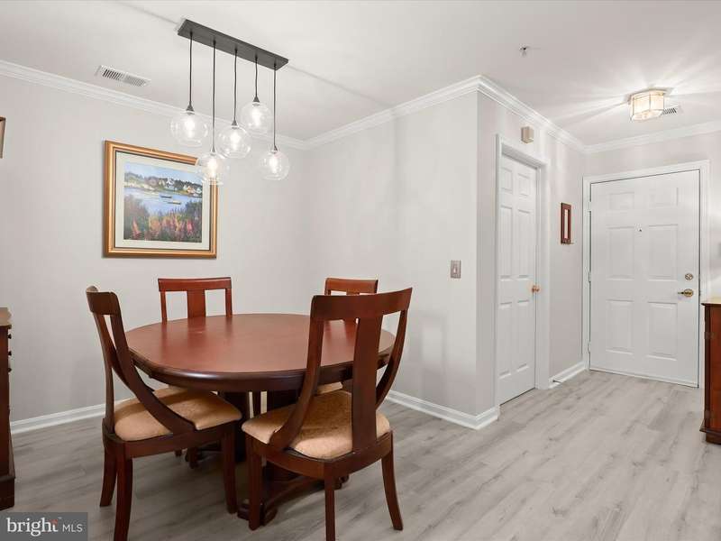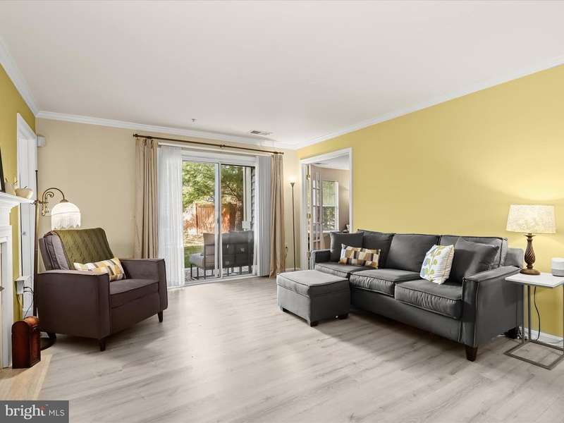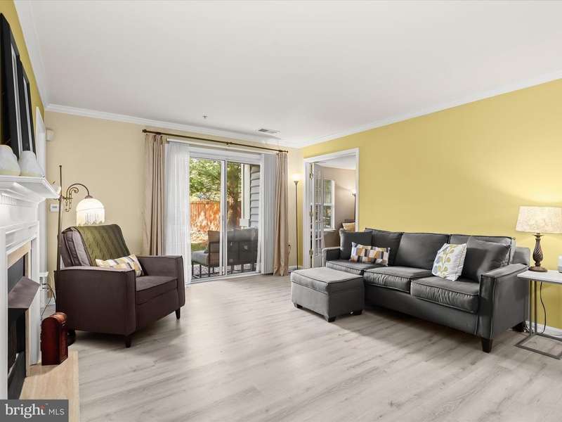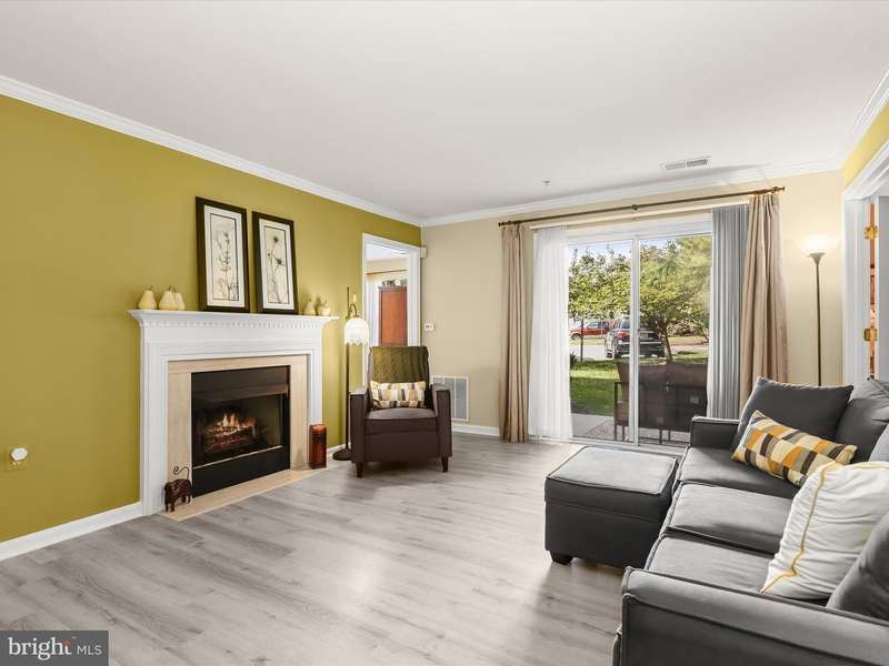 Introducing this three bedroom, two bathroom condo in the sought-after Stone Ridge neighborhood. Situated on the first floor, it offers ranch-style living and a low-maintenance lifestyle. Enjoy easy accessibility through the ground-level patio or the secure building's main entrance with no steps required. With over 1,200 square feet, this move-in ready home features recently replaced modern luxury vinyl plank flooring throughout. The living room invites relaxation with a cozy gas fireplace and sliding glass doors to the patio, blending indoor and outdoor living. Crown molding adds an elegant touch that continues into the dining room, and the kitchen is equipped with an updated stainless steel refrigerator and microwave. The primary bedroom offers two closets, including a walk-in, and an ensuite bathroom with a tiled tub-shower. On the opposite side for privacy, French doors open to a second bedroom, also ideal for an office, and a connecting bathroom with a walk-in shower is shared with the third bedroom, which also features a spacious walk-in closet. Completing the home is a convenient laundry room with extra storage space. Recent updates include HVAC system, washer and dryer, luxury vinyl plank flooring, and more.