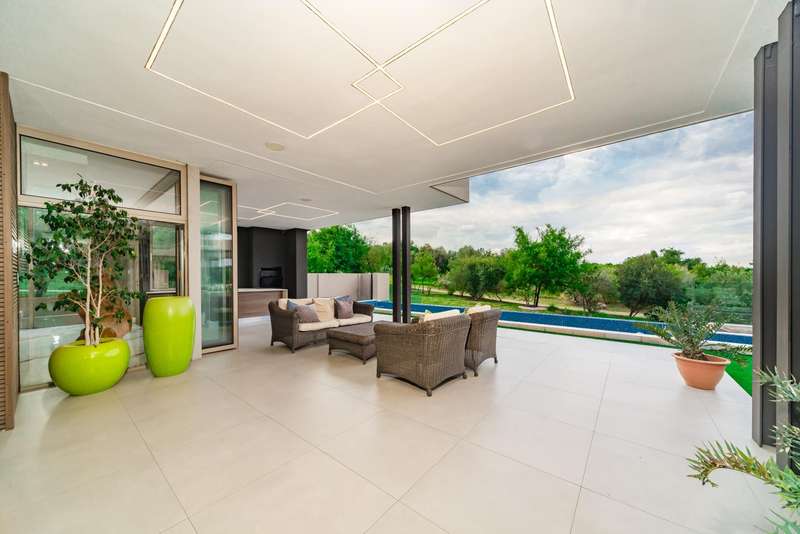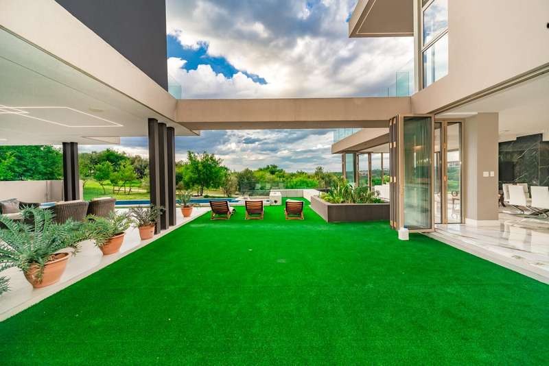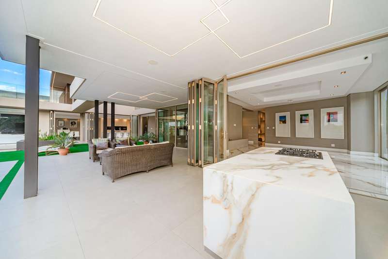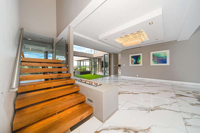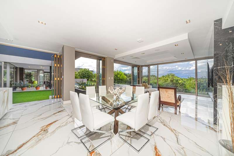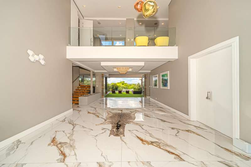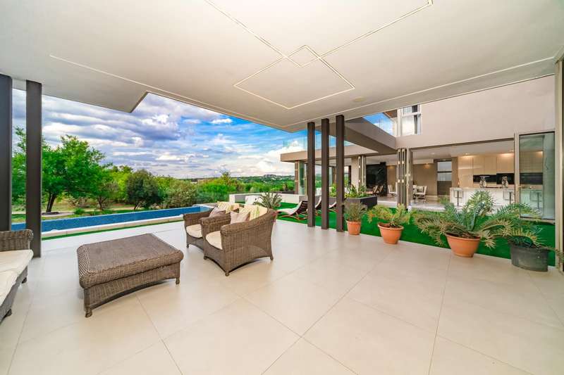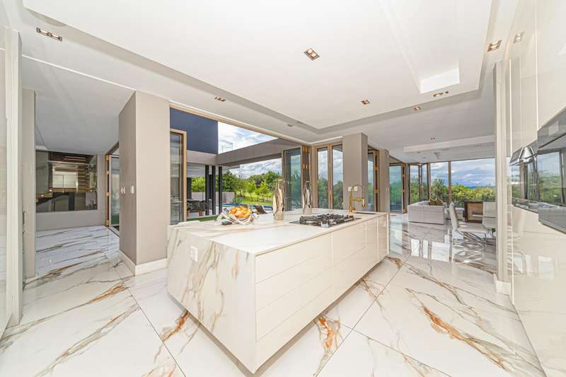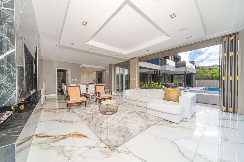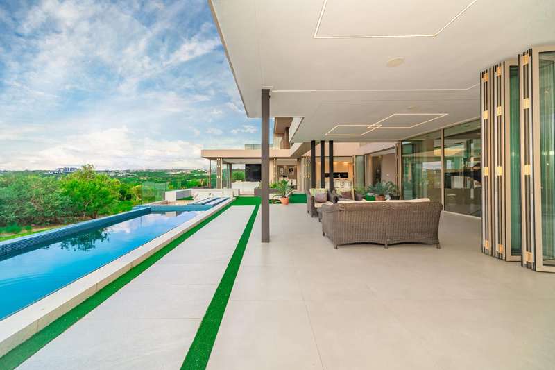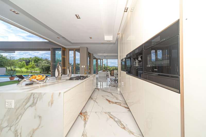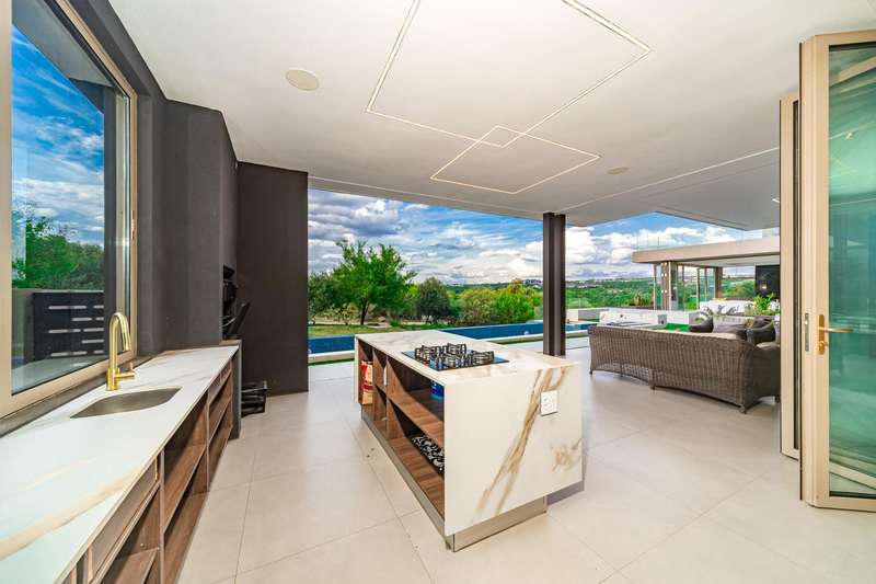 Perched in one of Steyn City?ÇÖs most prestigious positions, this architectural masterpiece embodies world-class luxury and design. Perfectly situated alongside the 4th tee box and framed by tranquil greenbelts, the 1 165sqm residence on a 1 456sqm stand captures uninterrupted views of the golf course and the iconic Palazzo Steyn. A dramatic fa?ºade, cascading water features, and floating stairways set the tone for what lies within ?Çö a world of natural light, soaring ceilings, and seamless glass architecture that blurs the line between indoors and out. At the heart of the home, a state-of-the-art Miele kitchen finished in Calacatta-style marble flows effortlessly to formal and informal lounges, each enhanced by feature fireplaces and panoramic views. The alfresco terrace, firepit lounge, and infinity-edge pool create the ultimate setting for luxury entertaining. Showcasing six opulent en-suite bedrooms, including two ground-floor suites, while the master wing defines indulgence with dual lounges, a couture-style dressing suite, and a spa-inspired bathroom with marble, brass, and a freestanding Jacuzzi bath. The lower level is a celebration of lifestyle living, offering a ten-car showroom garage, private gym with underwater pool views, soundproof cinema, and space for a designer bar ?Çö all serviced by a future glass elevator. Complete with smart-home automation, solar power, and staff accommodation, this home stands as a true statement of prestige and perfection within South Africa?ÇÖs most exclusive estate.