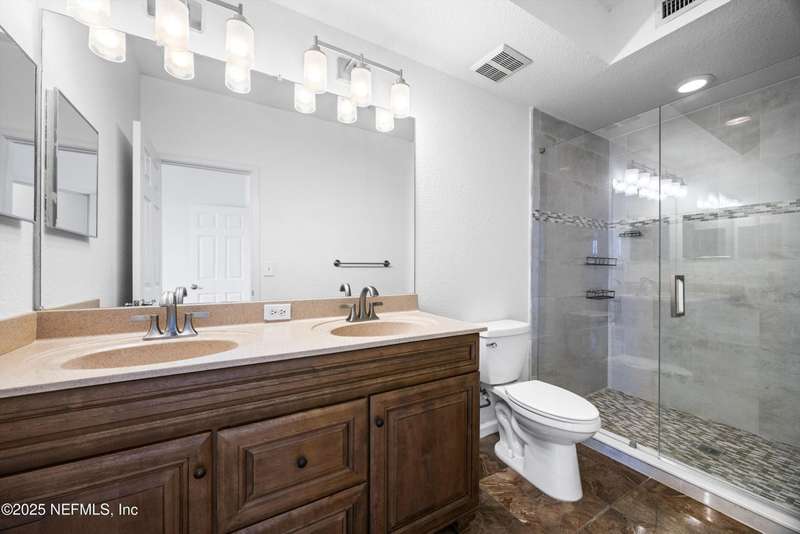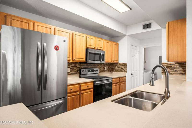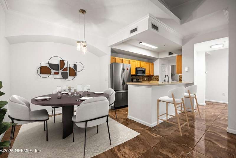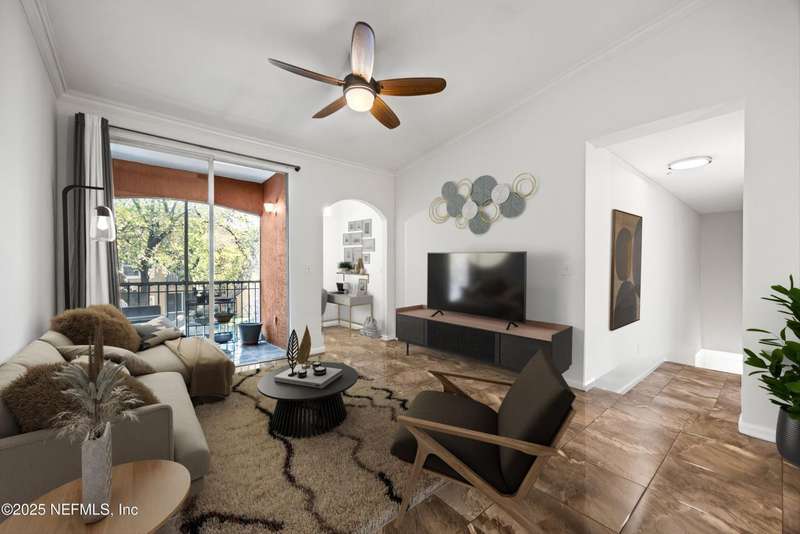 Welcome to Mirabella, where comfort meets convenience in Jacksonville's esteemed condo community. This move-in-ready residence offers an open concept plan with three bedrooms, two bathrooms, and a private balcony. The well-equipped kitchen features maple cabinetry, stainless steel appliances, and solid surface countertops. The kitchen seamlessly connects to the dining room and a spacious family room, ideal for entertaining and relaxation. Sliding glass doors provide access to a private screened balcony for an intimate outdoor experience. The serene primary suite is strategically placed for added privacy and includes a walk-in closet, as well as an en-suite bathroom with dual vanities and a luxurious walk-in shower. Two additional bedrooms are equally inviting, offering ample space. Enhancements include modern paint, extended tile flooring throughout, and remodeled bathrooms. Water is included in the HOA fees. Welcome to Mirabella, where comfort meets convenience in Jacksonville's esteemed condo community. This move-in-ready residence offers an open concept plan with three bedrooms, two bathrooms, and a private balcony. The well-equipped kitchen features maple cabinetry, stainless steel appliances, and solid surface countertops. The kitchen seamlessly connects to the dining room and a spacious family room, ideal for entertaining and relaxation. Sliding glass doors provide access to a private screened balcony for an intimate outdoor experience. The serene primary suite is strategically placed for added privacy and includes a walk-in closet, as well as an en-suite bathroom with dual vanities and a luxurious walk-in shower. Two additional bedrooms are equally inviting, offering ample space. Enhancements include modern paint, extended tile flooring throughout, and remodeled bathrooms. Water is included in the HOA fees. Situated just minutes from St. Johns Town Center, UNF, FSCJ, Mayo Clinic, downtown Jacksonville, and the beaches. Residents can enjoy resort-style amenities, including a swimming pool, clubhouse, and fitness center. Don't miss this exceptional opportunity to own a beautiful condo in one of Jacksonville's premier communities; schedule your showing today!