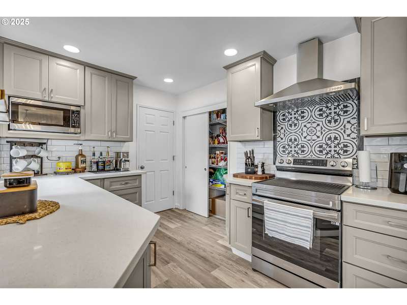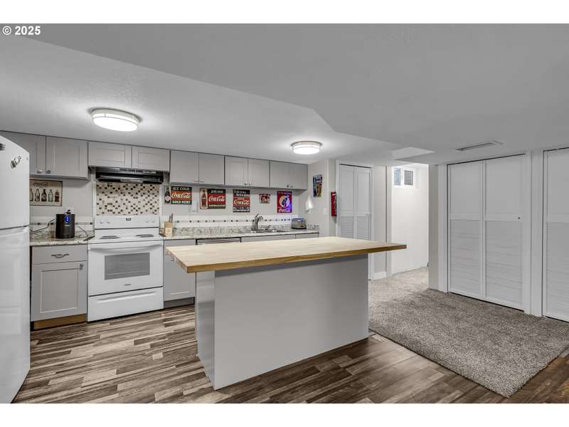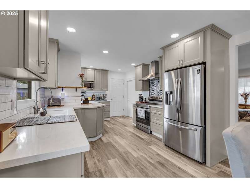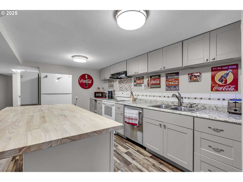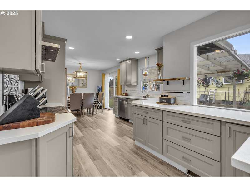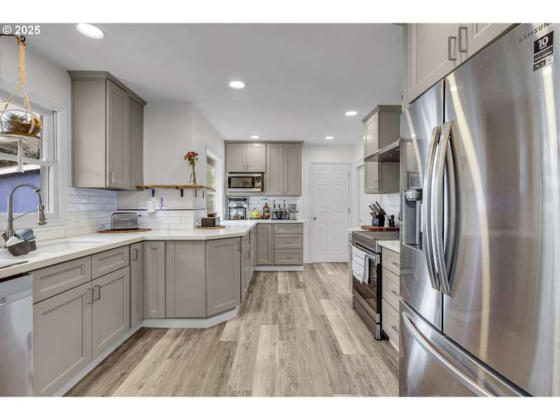 Welcome to this beautifully updated 5-bedroom, 3-bathroom home offering 2,838 sqft of versatile living space on a large, meticulously landscaped corner lot in the heart of Gresham. From the moment you arrive, the lush greenery, mature plantings, and curb appeal set the tone for this exceptional property. Step inside to discover a brand-new kitchen featuring modern cabinetry, sleek countertops, and updated stainless steel appliances — perfect for cooking and entertaining. The primary suite is conveniently located on the main level and includes a private en-suite bathroom with a full shower for your comfort and convenience. The main level also offers 2 additional bedrooms and guest bath along with a generous living room w/a wood burning fireplace perfect for cozy nights. Off of the kitchen you have a large laundry area with plenty of extra storage and utility space. Downstairs, you'll find an impressive fully finished basement; essentially a 2nd home in itself! Complete with its own full kitchen, spacious living room with/wood burning fireplace, full bathroom, and 2 additional bedrooms, this lower level has its own private side entrance, making it ideal for multi-generational living, guest quarters, or potential rental income. Whether you're looking for space, functionality, or income potential, this home has it all. The thoughtful updates, expansive layout, and beautifully maintained grounds make this a truly unique opportunity in a fantastic Gresham neighborhood. Home is conveniently located to Gresham elementary, other schools, shopping, dinning and more. Don’t miss your chance to own this versatile gem!