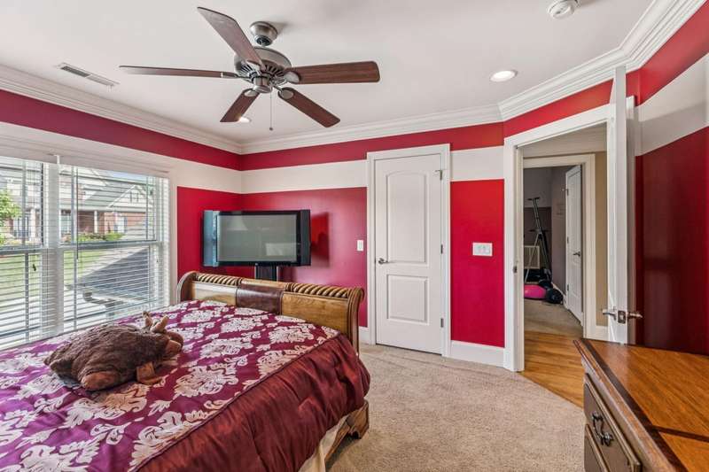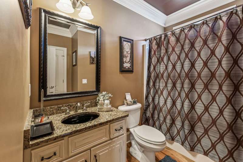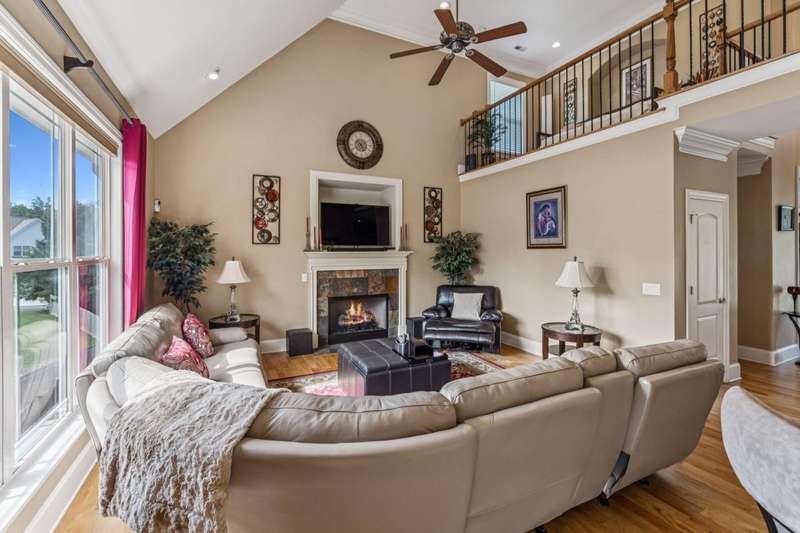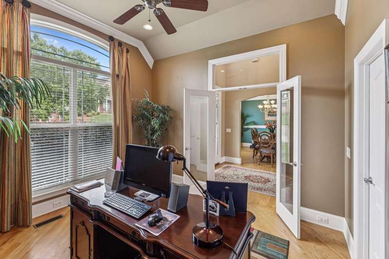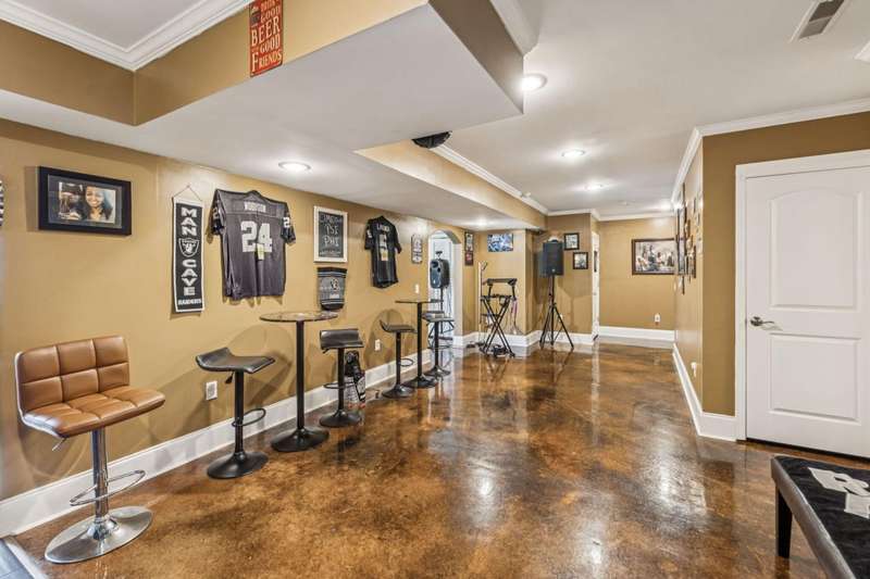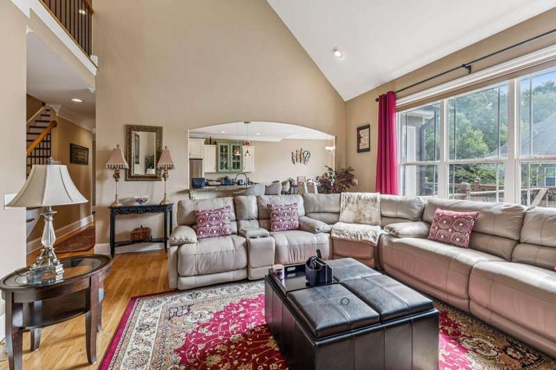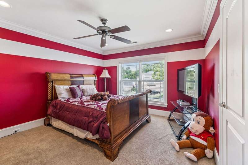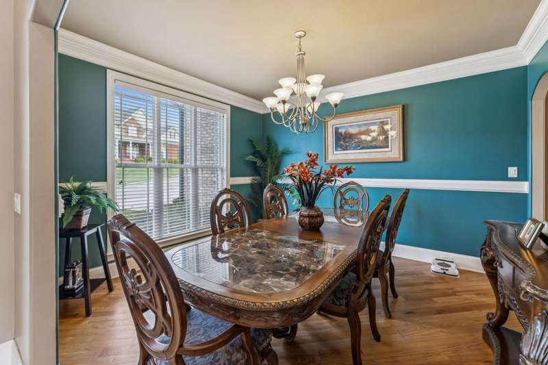 Nestled in a welcoming Bentwood Cove neighborhood with charming sidewalks, this inviting 2-story home is perfect for entertaining and family living, located in the highly desirable Apison Elementary school district. Boasting 5 spacious bedrooms and 4 modern bathrooms, this home offers plenty of space for everyone. The main level features a luxurious primary bedroom suite, a separate dining room, a cozy breakfast area, and a dedicated office for work or study.Gleaming hardwood floors and elegant crown moldings add a touch of sophistication throughout. The expansive great room, filled with natural light from large windows with motorized blinds, creates a warm and open atmosphere. The open floor plan seamlessly connects the living, dining, and kitchen areas, ideal for gatherings. A large deck overlooks the private, fenced backyard, perfect for outdoor entertaining.The fully finished basement is a highlight, featuring a stylish man cave with stained concrete floors, a complete bar, and a dedicated gym space?ideal for hosting or unwinding. This Bentwood Cove gem combines charm, ample space, and a prime location in a vibrant, family-friendly neighborhood.