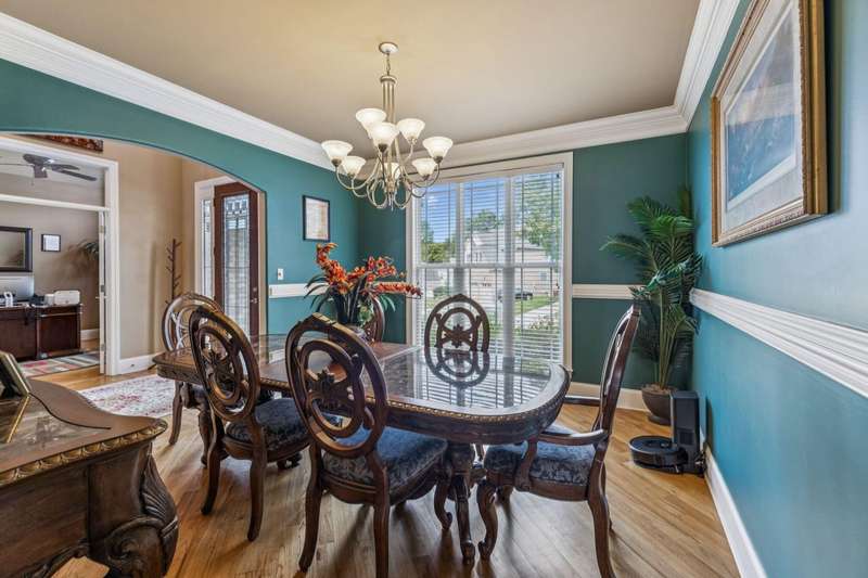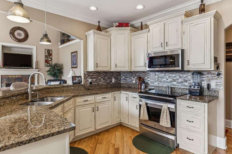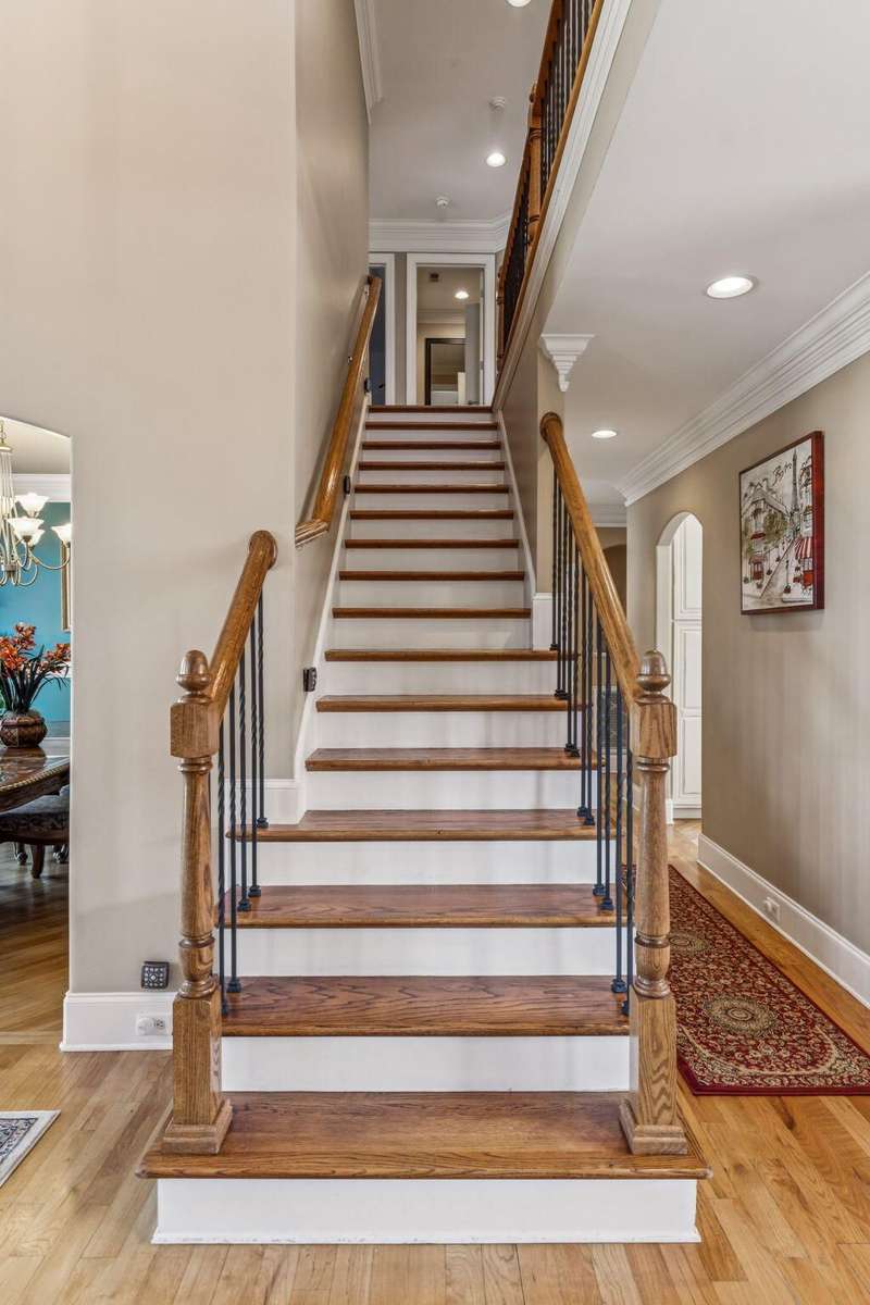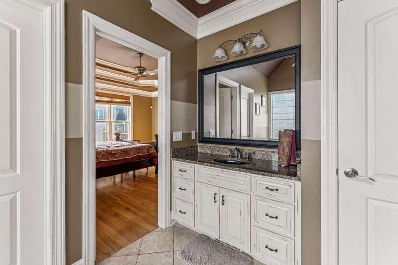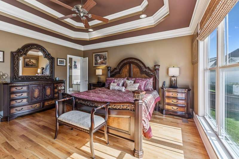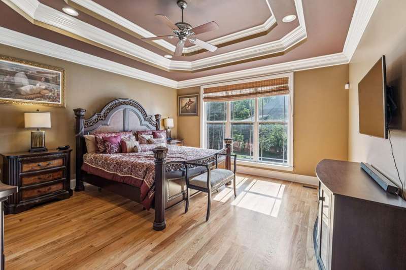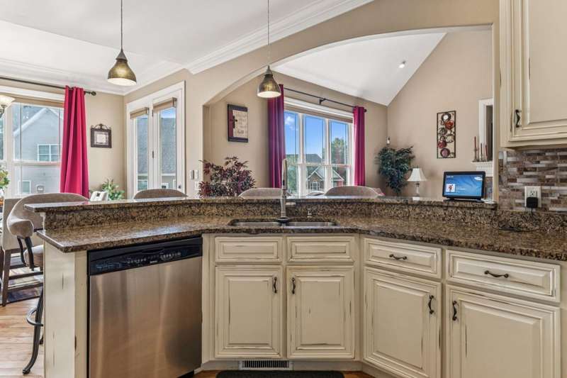 Nestled in a welcoming Bentwood Cove neighborhood with charming sidewalks, this inviting 2-story home is perfect for entertaining and family living, located in the highly desirable Apison Elementary school district. Boasting 5 spacious bedrooms and 4 modern bathrooms, this home offers plenty of space for everyone. The main level features a luxurious primary bedroom suite, a separate dining room, a cozy breakfast area, and a dedicated office for work or study.Gleaming hardwood floors and elegant crown moldings add a touch of sophistication throughout. The expansive great room, filled with natural light from large windows with motorized blinds, creates a warm and open atmosphere. The open floor plan seamlessly connects the living, dining, and kitchen areas, ideal for gatherings. A large deck overlooks the private, fenced backyard, perfect for outdoor entertaining.The fully finished basement is a highlight, featuring a stylish man cave with stained concrete floors, a complete bar, and a dedicated gym space?ideal for hosting or unwinding. This Bentwood Cove gem combines charm, ample space, and a prime location in a vibrant, family-friendly neighborhood.