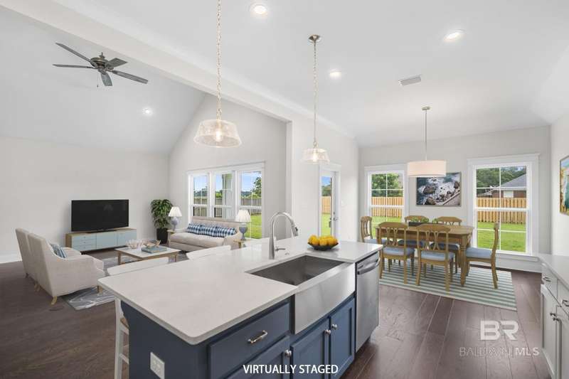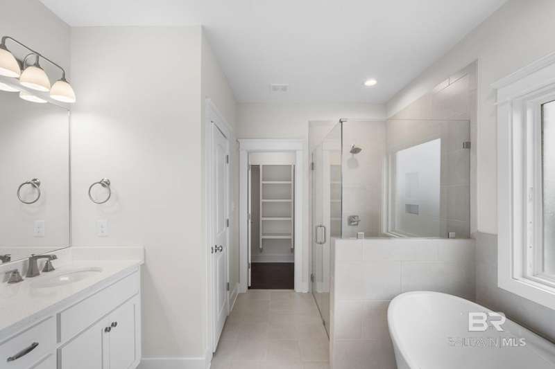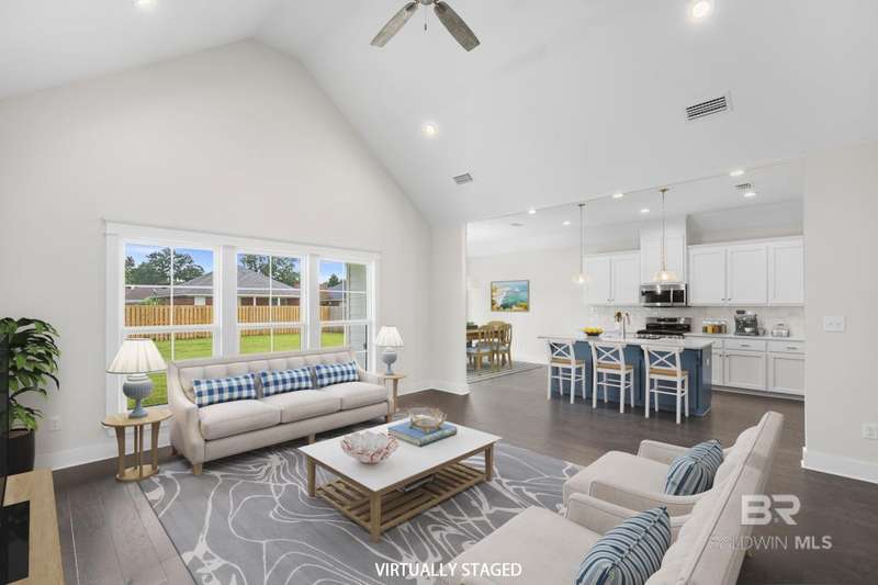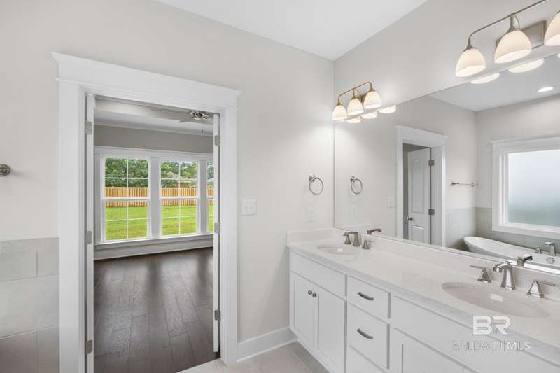 New and Ready for you! *Blinds and Refrigerator move-in package included with accepted contract closing by 12/31/25! Discover the perfect blend of style and functionality in the Pinehurst plan from Tower Homes. This thoughtfully designed home offers 4 bedrooms, 3.5 baths, a private study, and a spacious living area, ideal for work, relaxation, and entertaining. Enter from the covered front porch into a welcoming foyer leading to an open-concept kitchen, dining, and living area with vaulted ceilings and large windows for natural light. The kitchen boasts quartz countertops, stainless steel appliances, a large, flush island with an apron front sink, a walk-in pantry, and custom cabinets. A drop area and a large laundry room add convenience near the two-car garage entry. The 1st floor primary suite features a walk-in closet and a luxurious en suite bath with a soaking tub, double vanity, and a separate, tiled shower. A bonus room/study finishes off the main floor and includes a walk-in closet, making it perfect for an office or guest room. Upstairs, you'll find 3 additional bedrooms and 2 well-appointed bathrooms (one is an en suite bath), including linen storage. Outdoor living is just as inviting, with a rear, covered porch, perfect for enjoying your morning coffee. Located in the Bailey Place subdivision, this home is minutes from Hwy 181, Hwy 98, and I-10, close to schools, shopping, and more. Gold Fortified, the home includes a 1-yr builder warranty, 10-yr PWSC structural warranty, and a 1-yr. termite bond with Formosan coverage. One or more principals of the selling entity are licensed real estate agents and or Brokers in AL. Floor plans are 'for example only. Some rooms are Virtually Staged. Buyer to verify all information during due diligence.