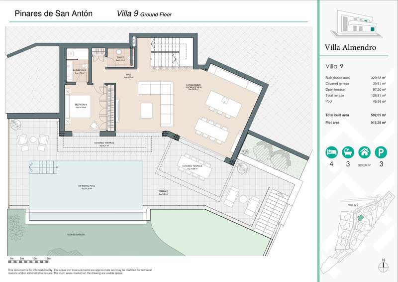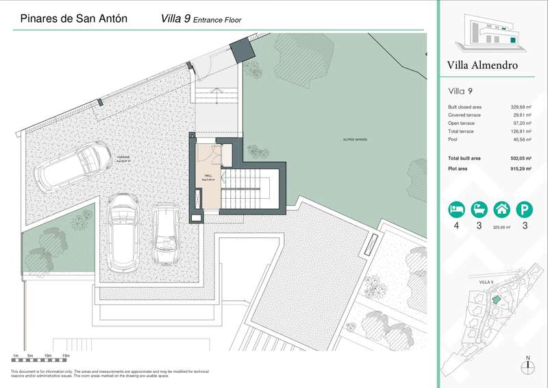 Positioned within the exclusive residential enclave of Pinares de San Antón, Villa Almendro presents a distinguished opportunity to experience contemporary living in one of the most desirable neighborhoods of Málaga Este. Surrounded by rolling pine-covered hills, modern architecture, and sweeping views of both the Mediterranean Sea and nearby mountains, the setting is tranquil yet remarkably connected to the essentials of city and coastal life. Slated for completion in December 2025, this three-level residence spans a total built area of 502 square meters, designed to offer flexibility, comfort, and elegance in equal measure. The interior layout includes five spacious bedrooms, each one carefully designed to maximize privacy and relaxation. Four en-suite bathrooms, two additional full bathrooms, and a guest toilet are strategically distributed to provide efficiency across the home’s vertical flow. Every element contributes to a well-organized and livable space tailored for both family