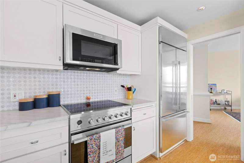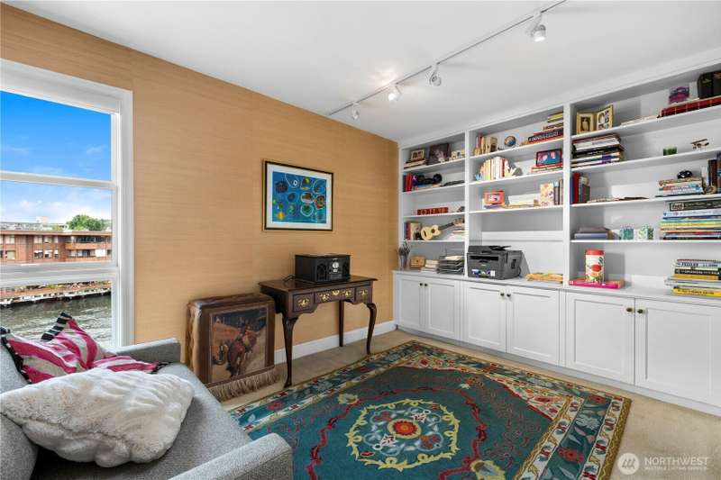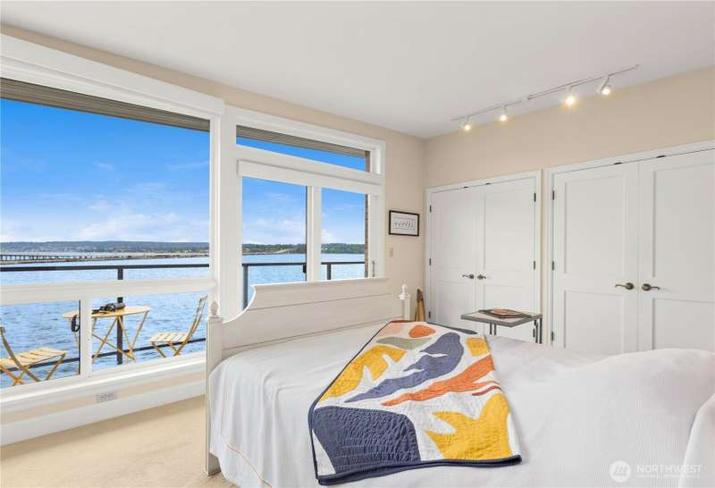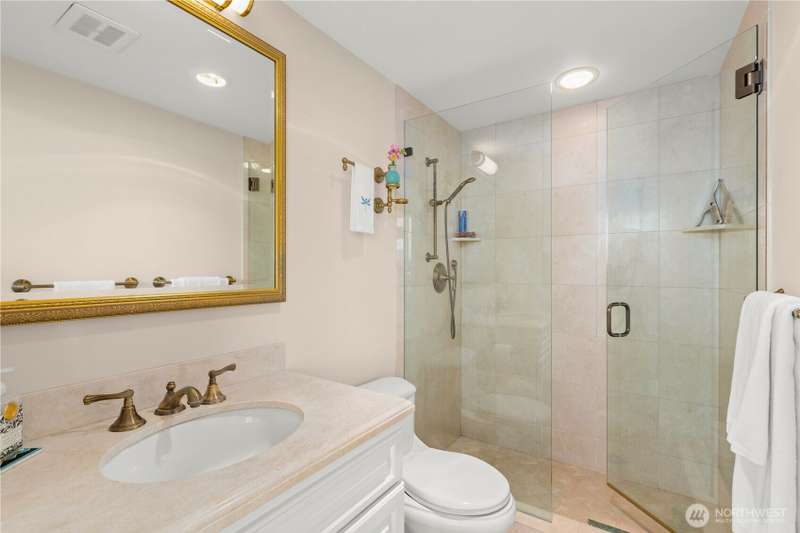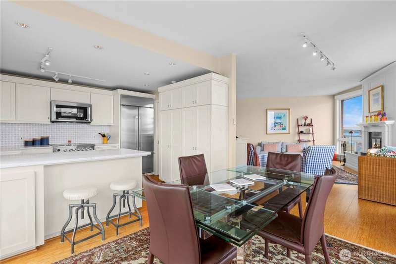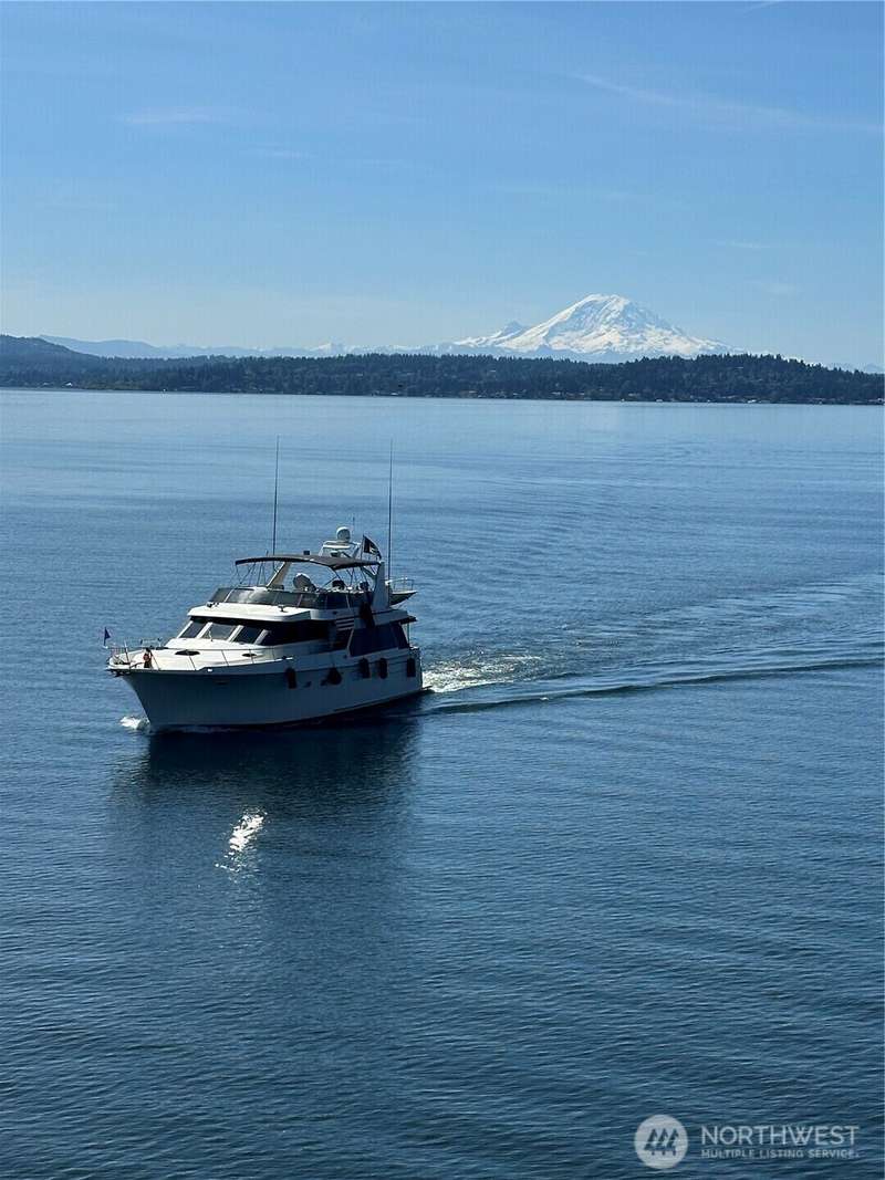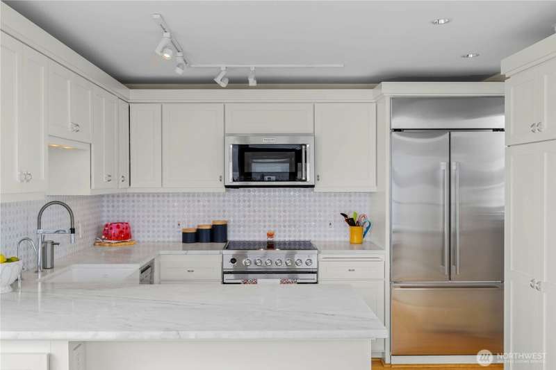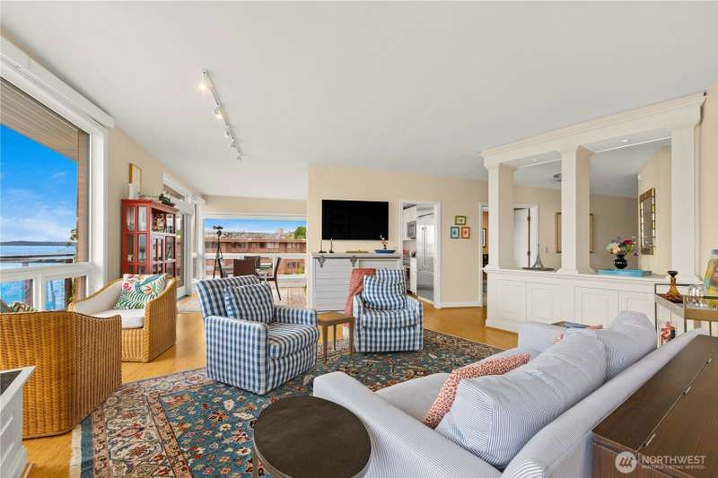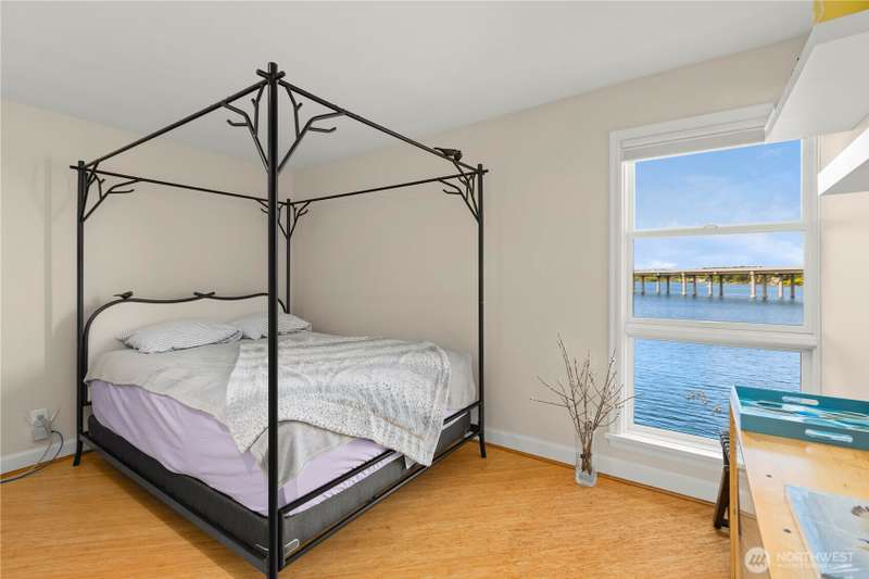 Stunning lakefront living in this exquisite Penthouse, end-unit condo perched above the serene waters of Lake Washington. You will feel as if you're floating over the lake, w/ 180-degree views that stretch from Mt. Rainier, the Cascades and the city of Bellevue. Floor-to-ceiling windows bathe every room in natural light, while the vaulted ceilings enhance the spaciousness of the living areas. The stunningly remodeled kitchen boasts marble countertops & new stainless steel appliances, perfect for the inner chef. Step outside to 2 spacious decks to savor the spectacular views. Enjoy 2 dedicated parking spots in a secure, gated parking lot. Enjoy a Community dock & a gym, making this a true sanctuary in the city. A short stroll to the Village.