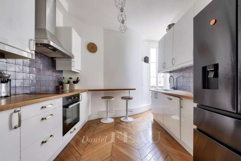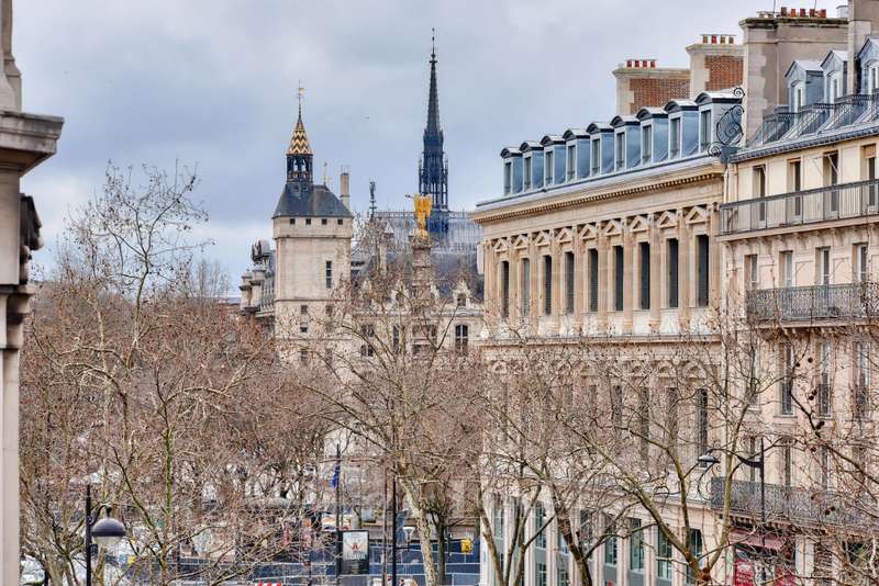Rivoli/Sebastopol neighbourhood. This elegant apartment offering 149.12 sqm of living space as defined by the Carrez Law is on the 3rd floor of a late 19th century corner freestone building with a lift. Benefiting from a typical Haussmannian floor plan, it includes a living/reception room, a kitchen overlooking a courtyard, four bedrooms and two bathrooms. Period features include Herringbone parquet flooring, three marble fireplaces, a magnificent Prussian stove and mouldings. The apartment is bright and enjoys an open view. With two cellars. The building benefits from cycle storage premises. In a prime location a stone’s throw from the Seine, the Town Hall and rue de Rivoli.
