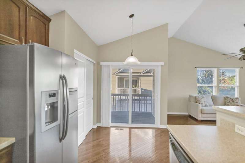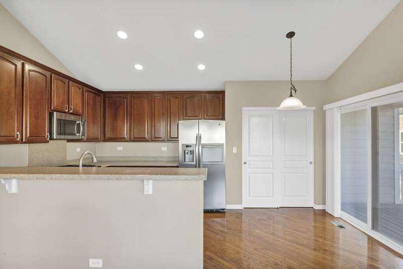 Welcome to 1043 Crane Point - a beautifully maintained end-unit townhome that perfectly balances comfort, style, and function. Sun-filled spaces, hardwood floors throughout most of the main level, and sweeping views of the serene nature reserve set the tone for this thoughtfully designed home. Enjoy your morning coffee on the inviting front porch, or relax on the private back deck for a quiet moment outdoors. The kitchen features 42" cabinetry, stainless steel appliances, generous counter space, and a spacious pantry - ideal for both everyday living and entertaining. It flows effortlessly into the large great-room floor plan, offering versatility in how you live, work, and gather. The first floor also includes the primary suite with a large walk-in closet and private full bath with comfort-height vanities, while a convenient powder room and generous linen closet complete this level. The lower level expands your living options with a second bedroom, full bath, large laundry room, and a flex space area - perfect for an office, gym, or guest retreat. Conveniently located near the Rakow Branch Library, scenic walking paths, and everyday conveniences, this home combines thoughtful upgrades with low-maintenance living in a serene and desirable setting.