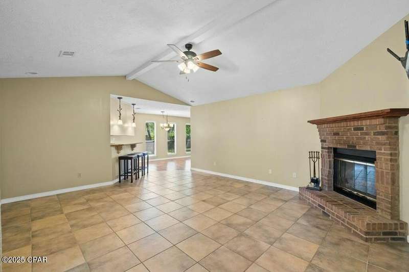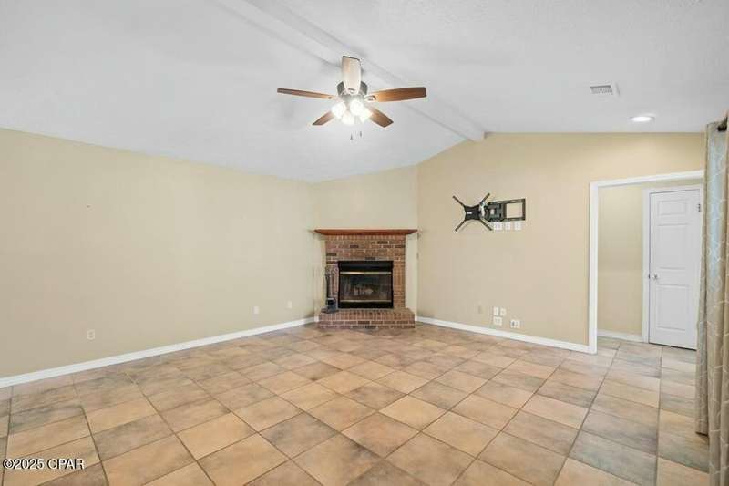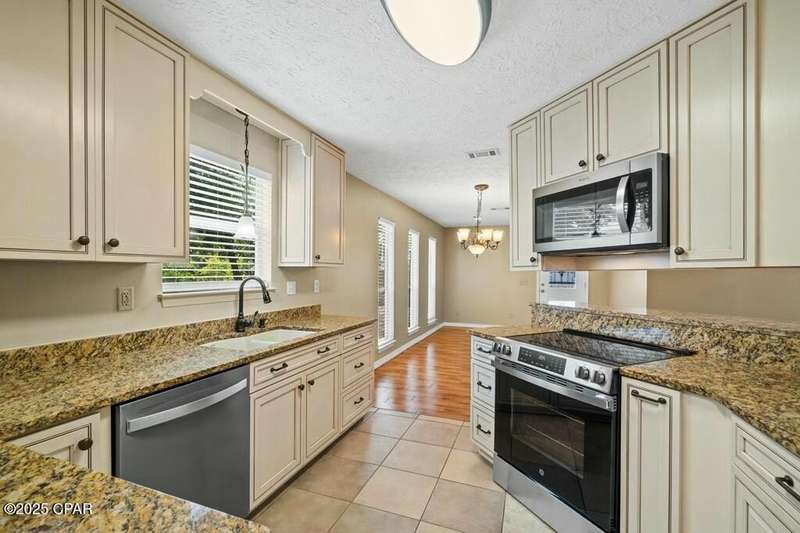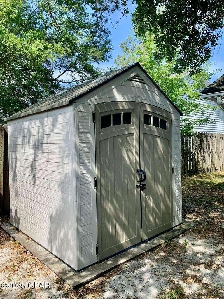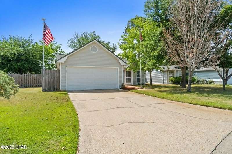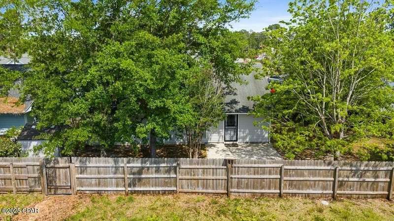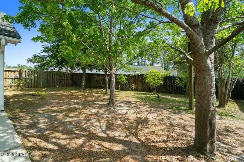 CURRENTLY UNDER CONTRACT, SELLER WILL CONSIDER BACKUP OFFERS. Located in the well-regarded community of Heritage Village, this charming single-level home offers 3 bedrooms, 2 bathrooms, and a layout designed for comfort and functionality. The spacious kitchen is a cook's dream, featuring custom cabinetry with built-ins and pull-outs, granite countertops, stainless steel appliances, and a brand-new stove with manufacturer's warranty. A breakfast bar with seating for four and a large, light-filled dining room with backyard access make it perfect for everyday living and entertaining. The cozy living room includes a woodburning fireplace, while the private primary suite offers an ensuite bath with a tub/shower combo. Two additional guest bedrooms and a full guest bath are located on the opposite side of the home for added privacy. The fully fenced backyard is a nature lover's paradise, with mature shade trees, a storage building, and a variety of fruit trees including pomegranate, lemon, and fig. A shallow well with sprinkler system keeps the yard lush and green. All of this is just 3 miles from the Gulf's sugar-white sands and emerald waters, and minutes from Pier Park's shopping, dining, and entertainment options. Don't miss your chance to make this home yours - schedule your showing today!