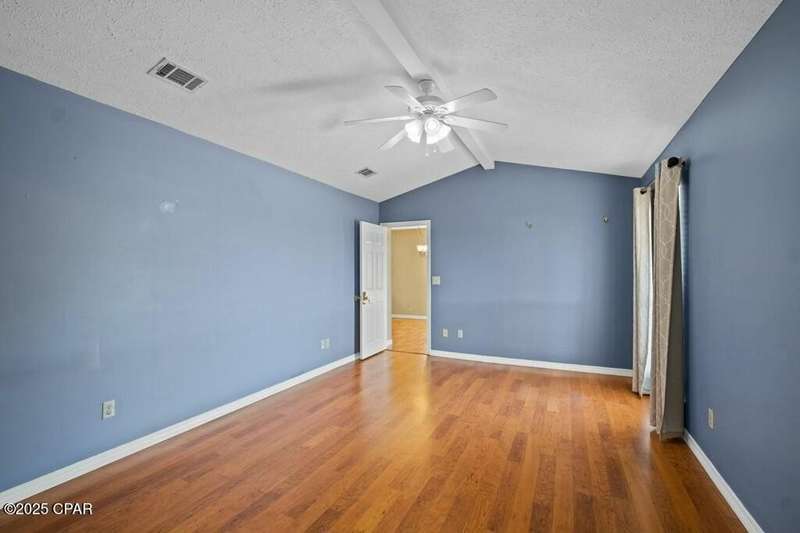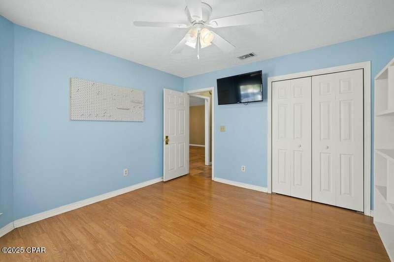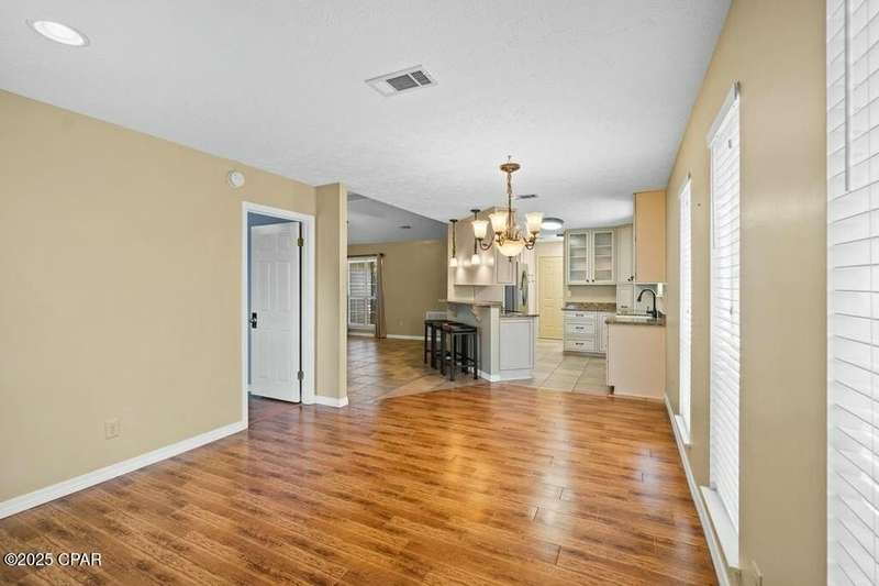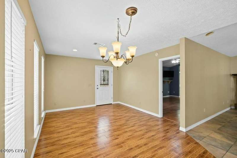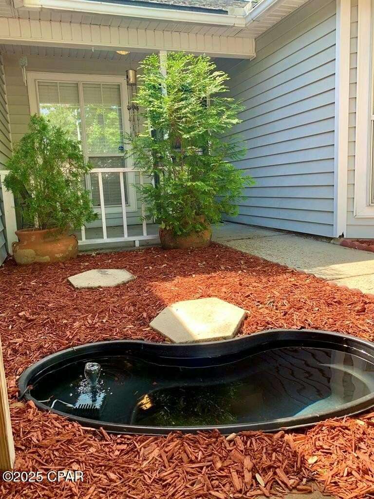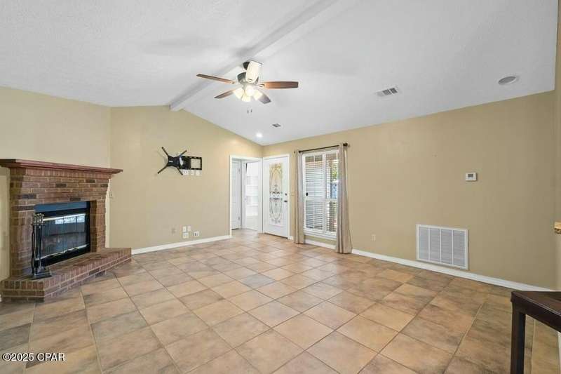 CURRENTLY UNDER CONTRACT, SELLER WILL CONSIDER BACKUP OFFERS. Located in the well-regarded community of Heritage Village, this charming single-level home offers 3 bedrooms, 2 bathrooms, and a layout designed for comfort and functionality. The spacious kitchen is a cook's dream, featuring custom cabinetry with built-ins and pull-outs, granite countertops, stainless steel appliances, and a brand-new stove with manufacturer's warranty. A breakfast bar with seating for four and a large, light-filled dining room with backyard access make it perfect for everyday living and entertaining. The cozy living room includes a woodburning fireplace, while the private primary suite offers an ensuite bath with a tub/shower combo. Two additional guest bedrooms and a full guest bath are located on the opposite side of the home for added privacy. The fully fenced backyard is a nature lover's paradise, with mature shade trees, a storage building, and a variety of fruit trees including pomegranate, lemon, and fig. A shallow well with sprinkler system keeps the yard lush and green. All of this is just 3 miles from the Gulf's sugar-white sands and emerald waters, and minutes from Pier Park's shopping, dining, and entertainment options. Don't miss your chance to make this home yours - schedule your showing today!