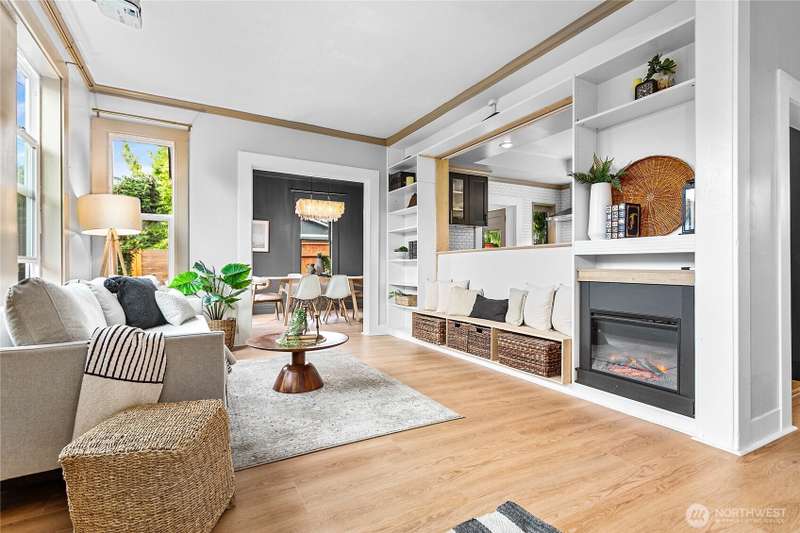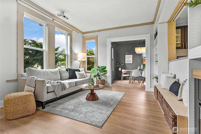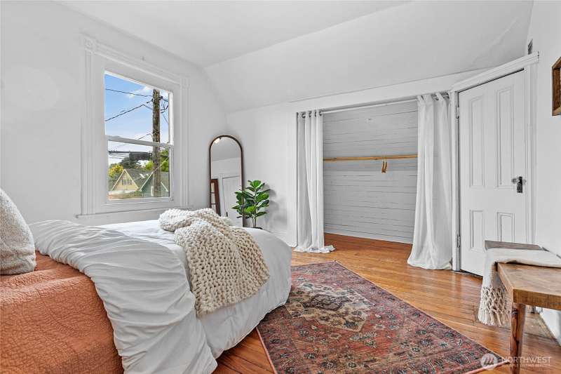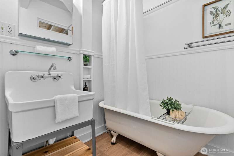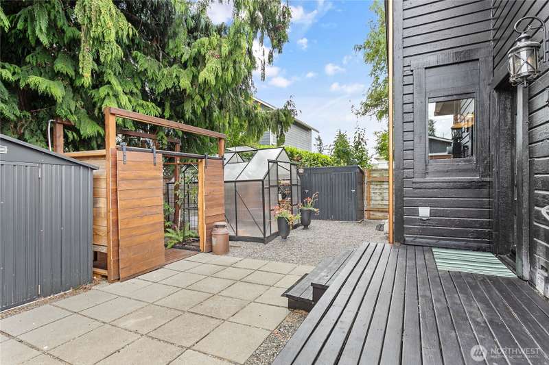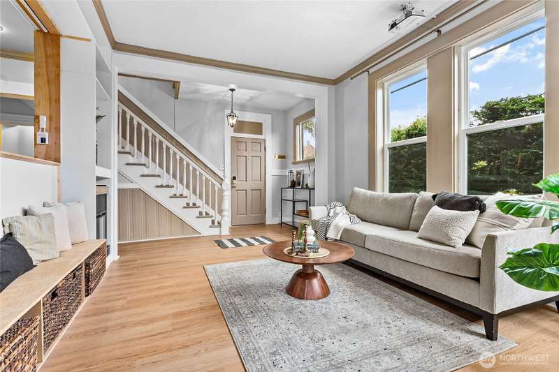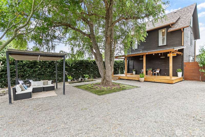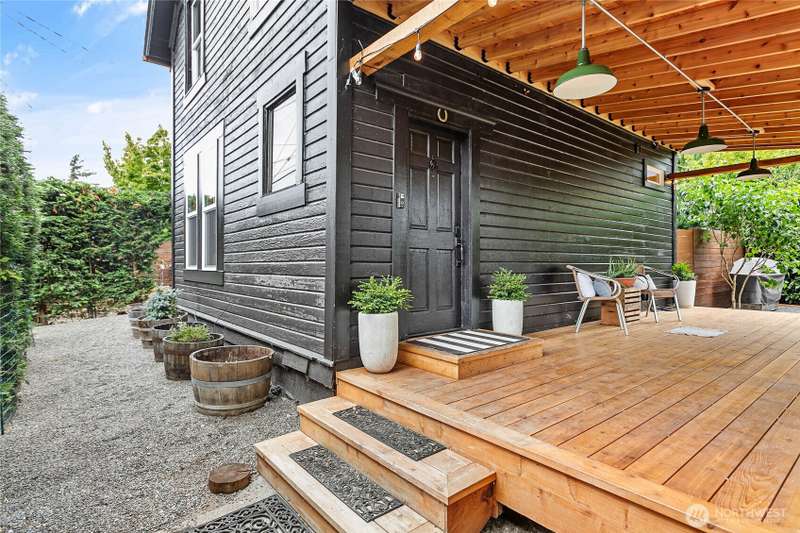 Lender Credit available! Timeless character and modern comfort within this beautiful 3-bedroom, 1-bathroom home. Nestled on a large lot this three-story gem features fresh paint, updated kitchen, new flooring, and custom built-ins. Enjoy outdoor living year-round with a newly constructed covered front deck ideal for entertaining/ unwinding even during in the PNW's rainy seasons. Surrounded by mature landscaping thoughtfully placed for ultimate privacy featuring a magnificent curly willow tree, greenhouse, outdoor shower, and water feature. Located just blocks from downtown Bellingham, parks, and schools, this home offers the perfect blend of historic charm, modern upgrades, and unbeatable location. Potential to build a garage with ADU!