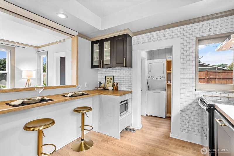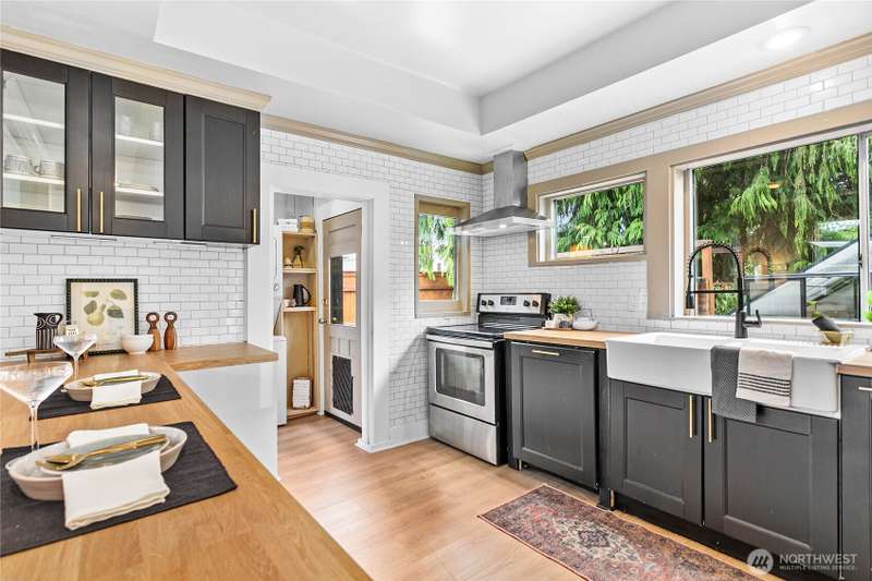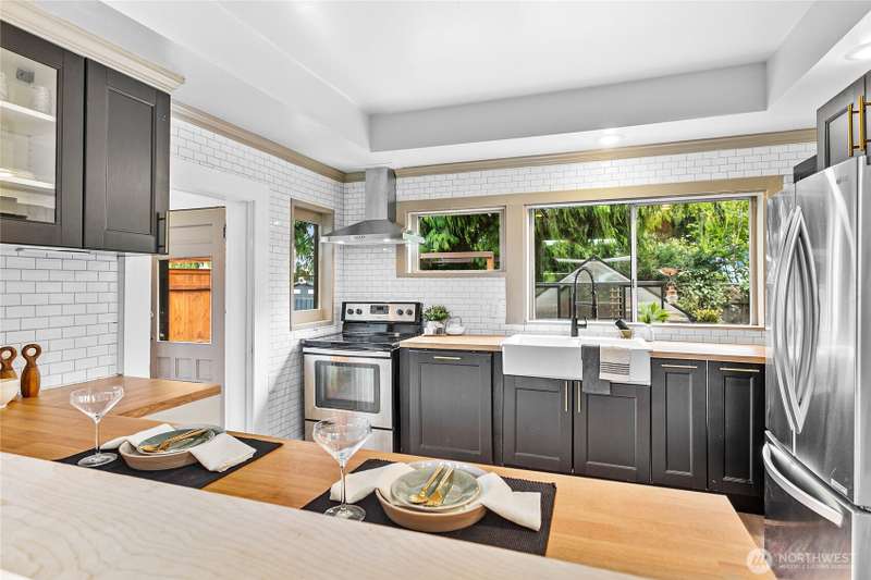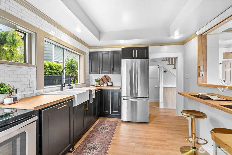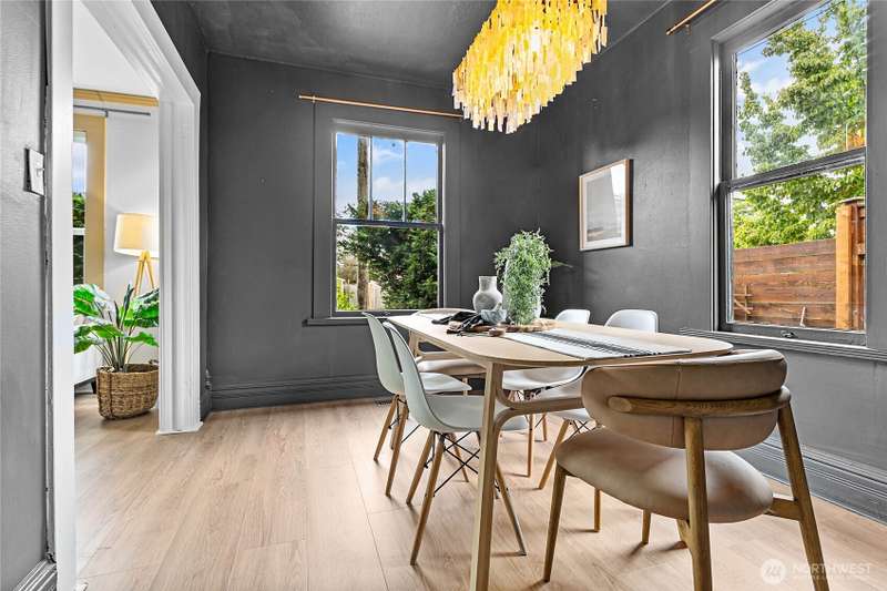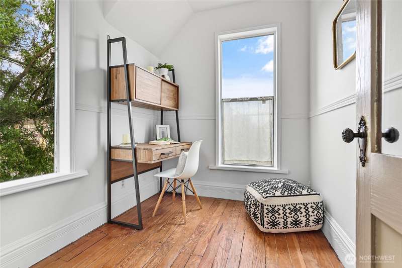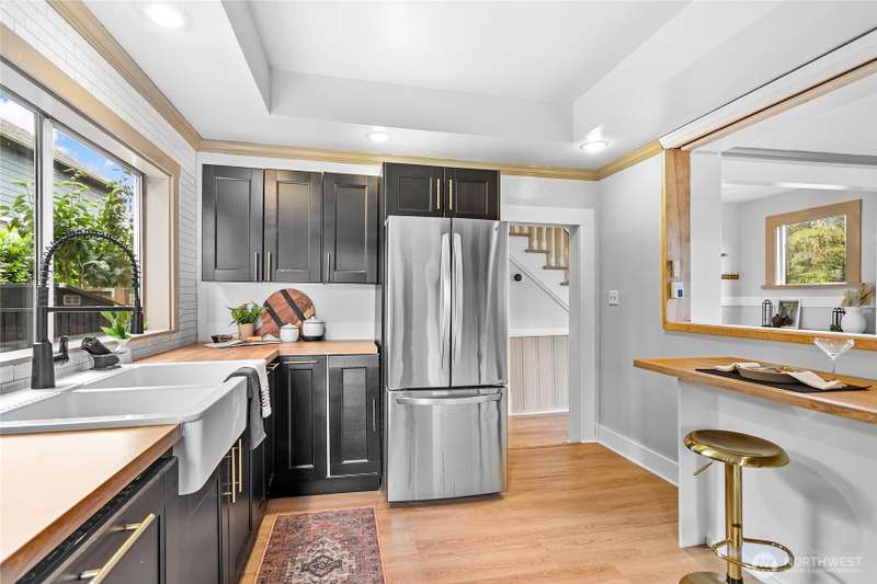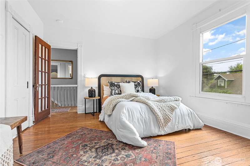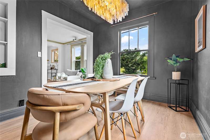Lender Credit available! Timeless character and modern comfort within this beautiful 3-bedroom, 1-bathroom home. Nestled on a large lot this three-story gem features fresh paint, updated kitchen, new flooring, and custom built-ins. Enjoy outdoor living year-round with a newly constructed covered front deck ideal for entertaining/ unwinding even during in the PNW's rainy seasons. Surrounded by mature landscaping thoughtfully placed for ultimate privacy featuring a magnificent curly willow tree, greenhouse, outdoor shower, and water feature. Located just blocks from downtown Bellingham, parks, and schools, this home offers the perfect blend of historic charm, modern upgrades, and unbeatable location. Potential to build a garage with ADU!