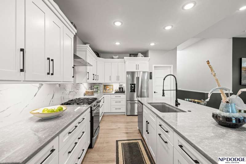 Experience the beauty of this 2 yr old custom home. As you open the door, you'll be greeted by a stunning entryway, custom wide plank flooring, designer lighting & a generous floor plan. Abundant windows fill the space with natural light, creating a captivating atmosphere. The spacious Great Room features a custom fireplace wall, complemented by a marble fireplace surround. It seamlessly opens to the gourmet kitchen, where you can channel your inner chef. The kitchen is equipped with ss appliances, including a gas stove, quartz countertops, marble backsplash & a huge walk-in pantry for all your storage needs. Completing the open floor plan is a formal dining area with access to the deck, allowing you to enjoy a country feel right in the city! A total of 4 bedrooms and 3 baths showcases remarkable designer features. Downstairs, is finished off with Rec Room, bar area & additional bedrooms. The patio is cozy, equipped with wood fireplace.