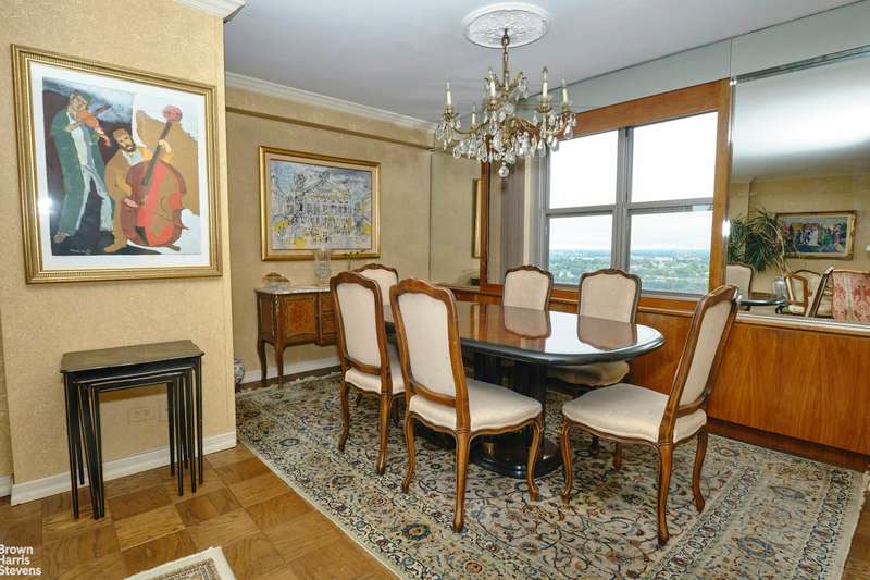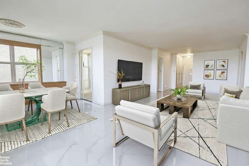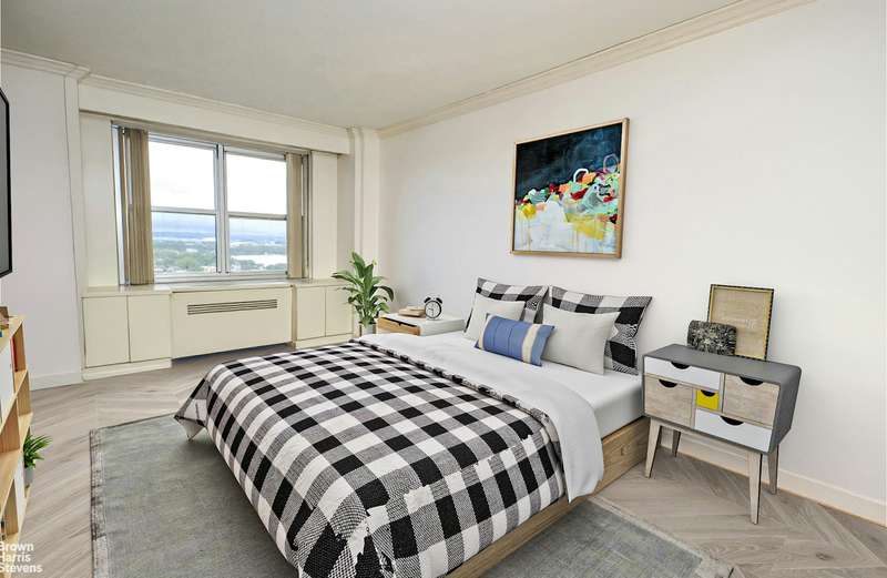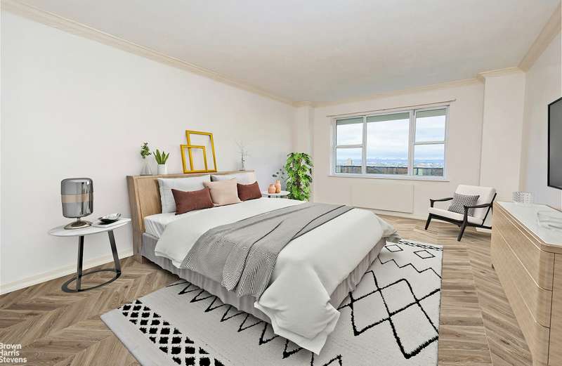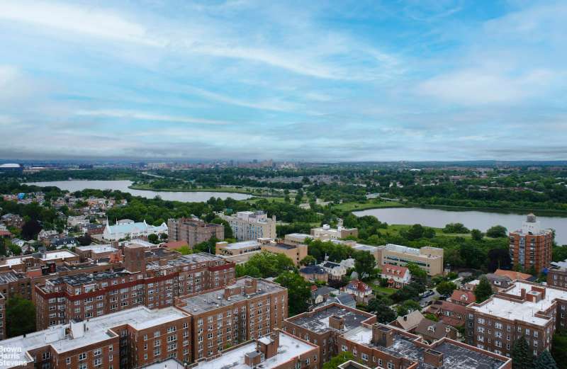 High-floor and rarely-available Kennedy House "G" line! Bring your designer to this two-bedroom, two-bath, 1300 square feet unit. Hardwood parquet floors. Glass-front living room leads to 22" terrace. Panoramic views stretch from lower Manhattan to Long Island Sound. Famous Kennedy House amenities abound--Seasonal private rooftop pool, health club, Skyroom for events and movie nights, outdoor rooftop conversation coves. 24-hr. doorman, concierge, live-in bldg. manager and 24/7 garage attendant, No wait-list parking, EV charging stations, playroom, large immaculate laundry room. Bike room and extra storage available for nominal fee. Gated outdoor walk path. Utilities, taxes, and 24-hr. rooftop gym included in monthly maintenance fee, (except cable). Emergency generator. Steps to fabulous FH dining and shopping. Minutes to Manhattan on E, F, M, & R Subways, LIRR, major highways and both NYC Airports. Zoned for PS 196--Don't wait on this one!
