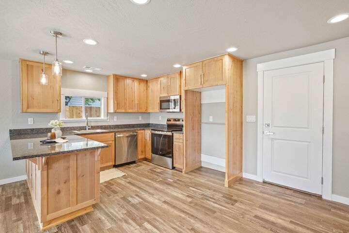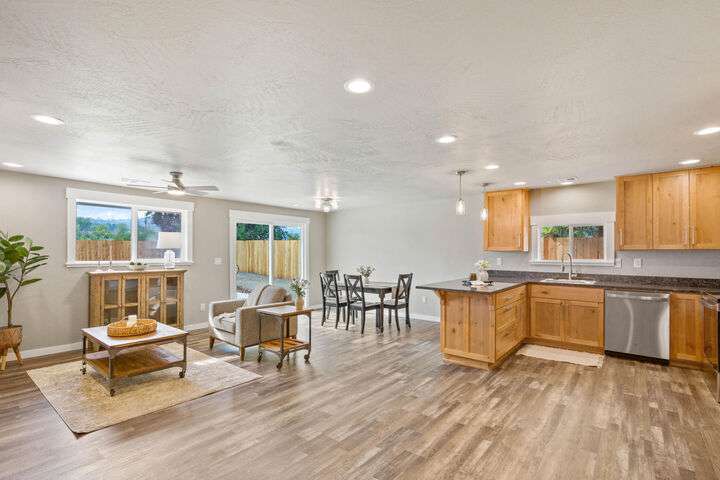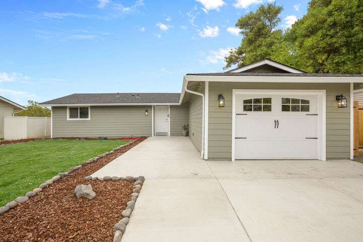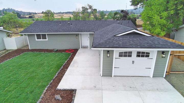 Completely remodeled from the studs up, this beautiful 3 bed, 2 bath home offers 1,144 sq ft of modern living on a generous 0.19-acre lot. Every detail has been updated—new electrical, plumbing, roof, windows, flooring, and more—creating a fresh, move-in-ready space. The open-concept layout features a bright living area, stunning kitchen with granite counters and stainless steel appliances, and stylish finishes throughout. Both bathrooms are fully updated with contemporary fixtures and tile work. Outside, enjoy a large, landscaped yard with room to entertain, garden, play and RV parking. Located in a quiet Eagle Point neighborhood close to parks, schools, and shopping. Offered at $349,000, this home is a rare find!