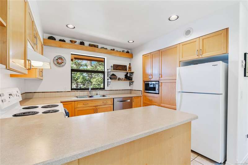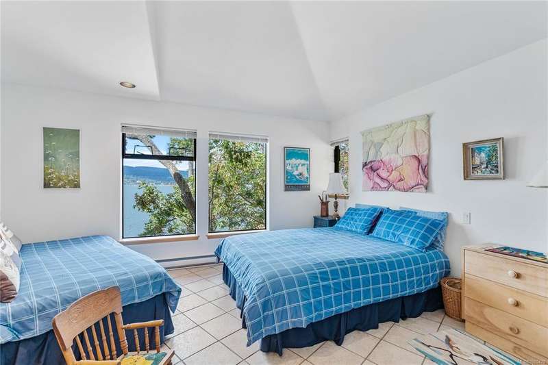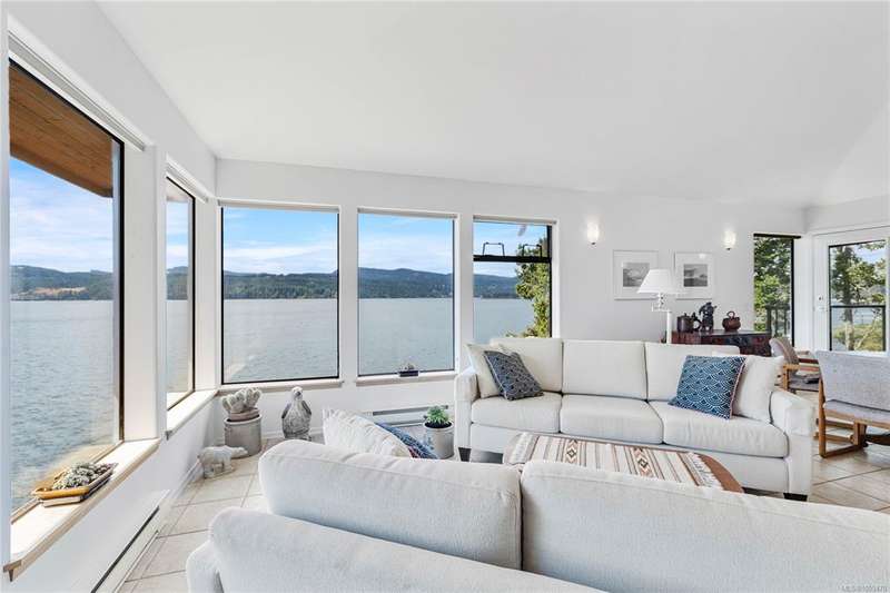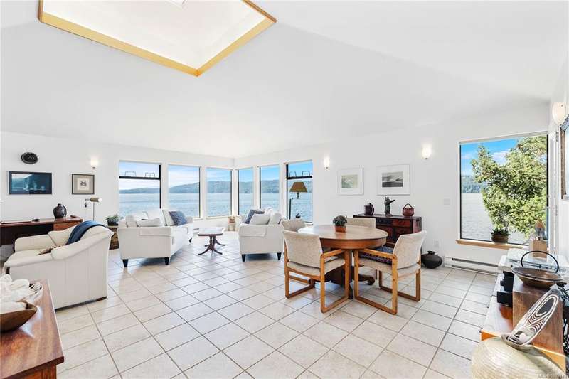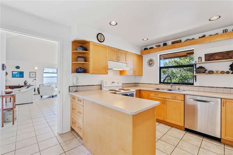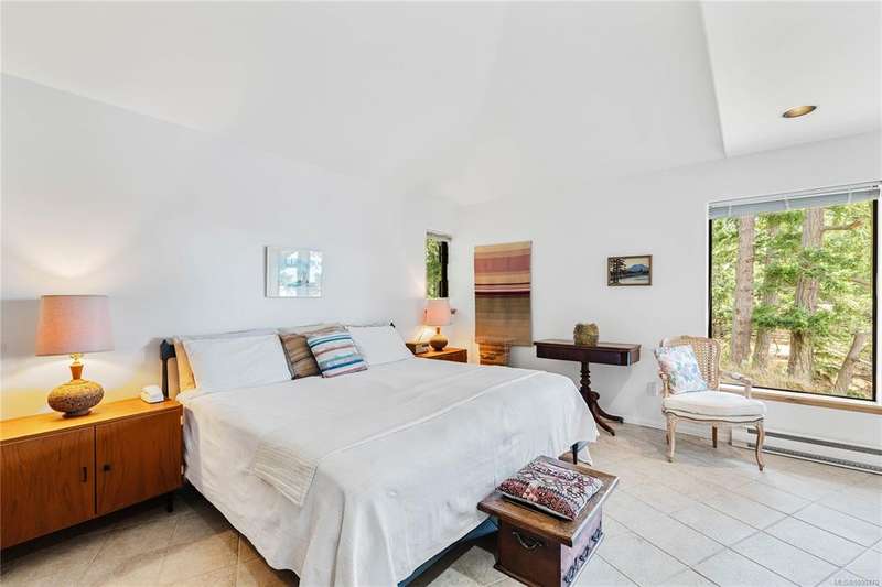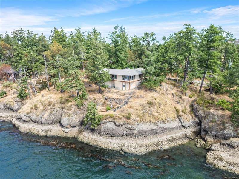 Architect-designed, custom-built oceanfront home bathed in sunlight and nestled at the coveted end of prestigious Scott Point. Perfectly positioned with south-west exposure, this exquisite residence offers breathtaking 180° ocean views from all principal rooms. Thoughtfully sited for ultimate privacy and connection to nature, this 1,650 sq ft one-level home features two spacious bedrooms, an office/den, and an airy vaulted-ceiling living room with banks of sunlit windows. Cozy wood stove, seismic engineering and passive solar design. Low-maintenance, fenced woodland garden nestled among native trees and plantings, enhanced with drought-tolerant exotics, and custom stonework. Shoreline benches for relaxing, or easily launch a kayak or paddleboard. With community water access and a substantial rainwater collection system, keeping gardens growing. Just minutes from town and the Long Harbour ferry; this property is a great opportunity to experience the best of island living.