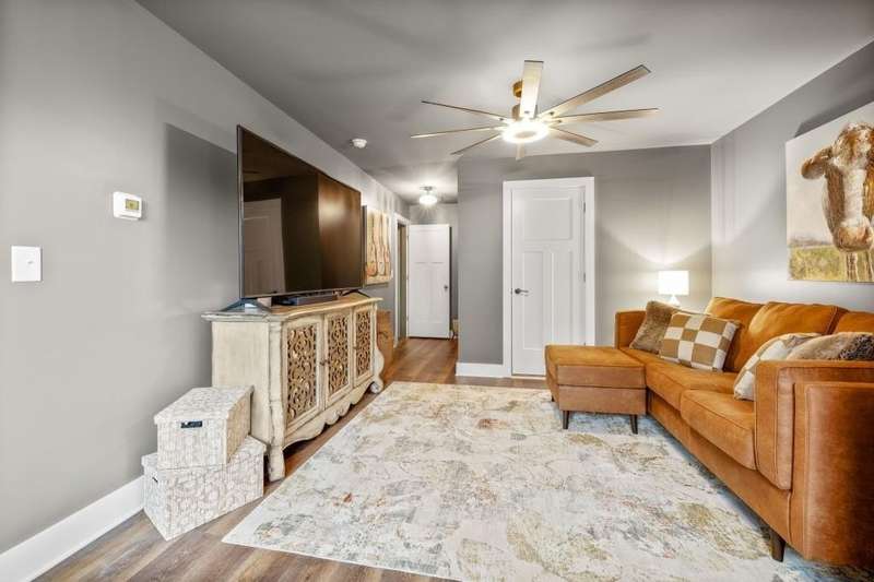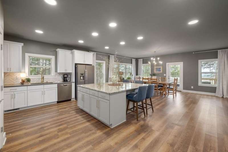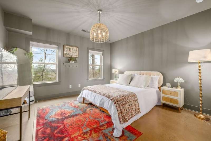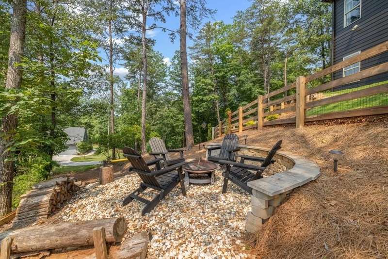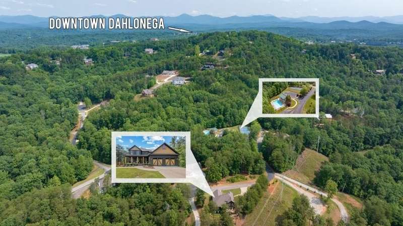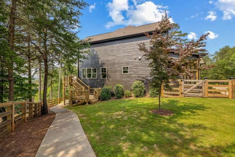 Offering a unique blend of contemporary design and gorgeous mountain views, all located in the gated community the Overlook at Crown Mountain, just minutes from the heart of Dahlonega. This newly renovated home offers an open concept main living space with mountain VIEWS from nearly every room. Upon entering, the unique monochromatic interior welcomes you inside. The kitchen crafted with function and design in mind- an oversized island offers ample workspace while still allowing guests to gather around and enjoy the setting. Exotic granite countertops line the perimeter of cabinetry while the center island offers a contrasting granite for design interest. The dining space can accommodate a long dining table overlooking the view. Just off the dining space, a seamless flow to the living room centered around a custom marble fireplace surround. Enjoy the upgraded light fixtures throughout, with dimmable lighting with nightlight feature found throughout the entire home. The primary suite on the main level is spacious with views. The en-suite showcases marble tile flooring with floor to ceiling tiled shower and separate soaking tub. Upstairs, there is a loft/flex space that serves as a second living space. The two upstairs guest bedrooms have their own private en-suites and walk in closets. On the terrace level, two additional bedrooms with private en-suites and walk in closets are inviting and ready to accommodate guests. The partially unfinished space allows for creativity or function as a workshop and storage. Newly constructed back deck additions offer the perfect space to enjoy the private setting, feeling like your nestled among the mountains and overlooking the fully fenced yard. This property offers an oversized two car garage, with additional parking pad, positioned on a quiet cul-de-sac. Just 2.5 miles from the Dahlonega Square with shopping and dining, University of North Georgia, and convenient to GA 400 access.