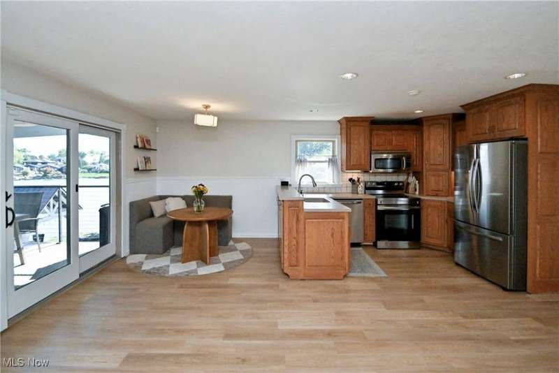 Enjoy lakefront living in this charming, updated home that blends timeless character with modern comfort. Nestled directly on the water, the property features a desirable walk-out first floor that opens to a spacious patio?perfect for relaxing or entertaining at the water's edge. The large deck offers sweeping lake views and the ideal spot for morning coffee or evening sunsets. Inside, you'll find thoughtfully updated finishes while still retaining warmth and character. The kitchen and living room provide a large open area that is great for entertaining. The first floor offers a fantastic family room with a nice bar area. With generous living areas, abundant natural light, and multiple outdoor spaces to enjoy the waterfront, this property is a perfect retreat for year-round living or a weekend escape.